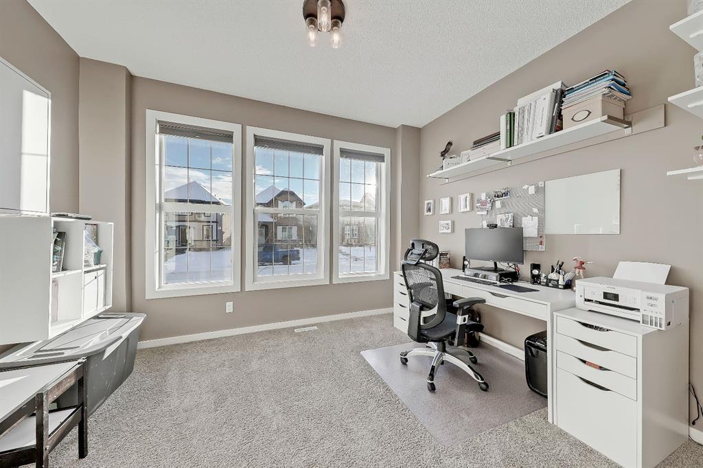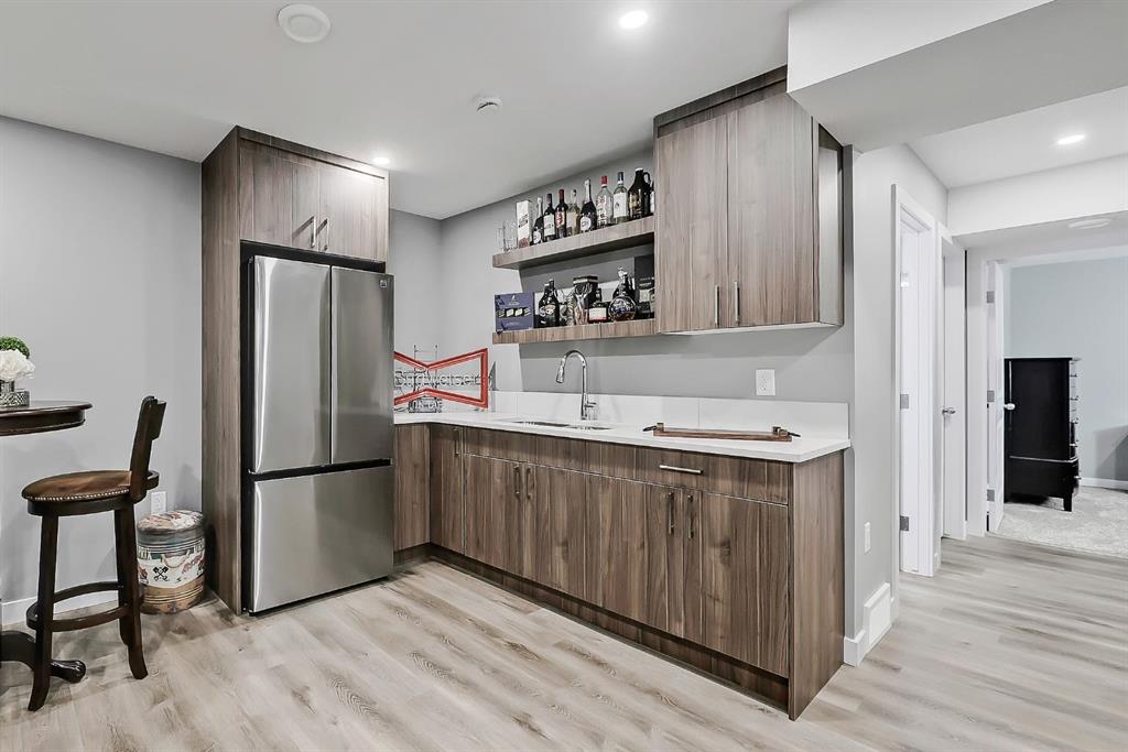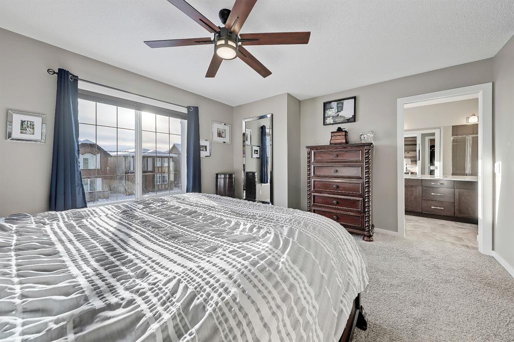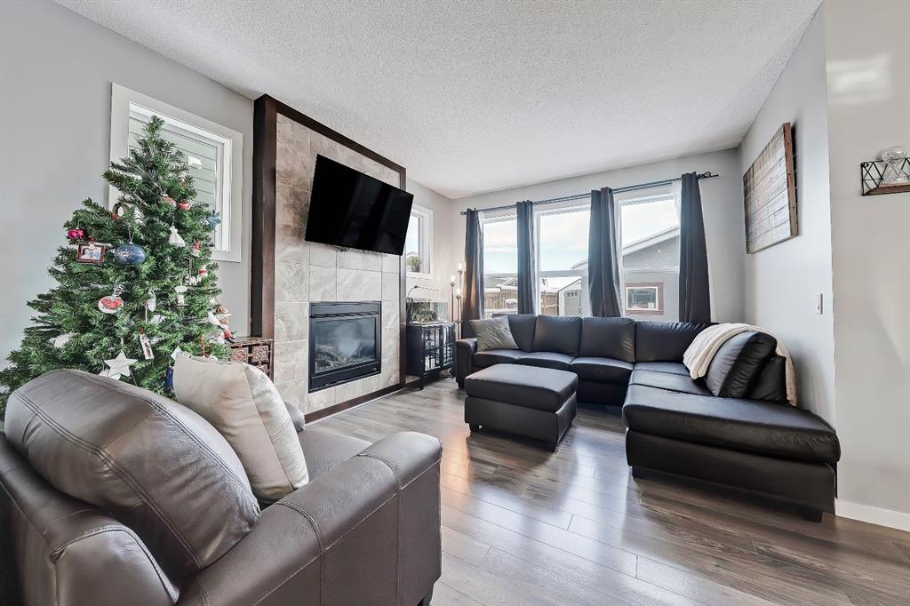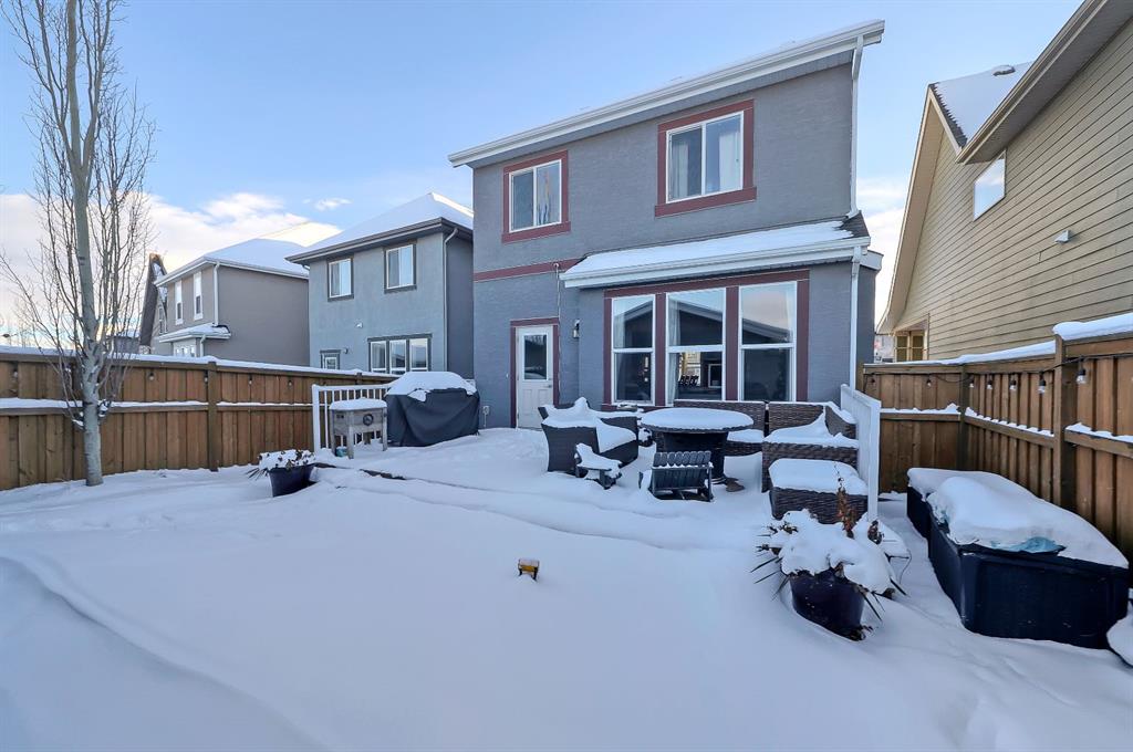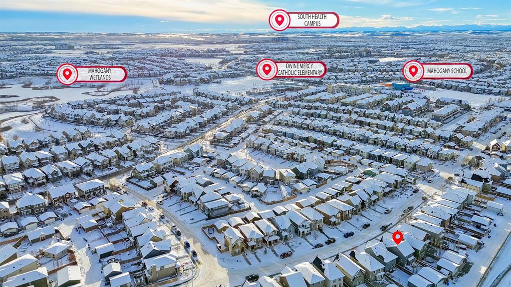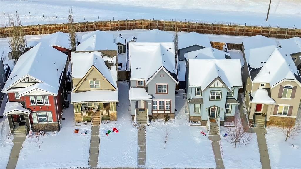 Charm meets convenience in this well-maintained two-storey detached home in Mahogany, offering nearly 1,700 sq. ft above-grade space. In this award-winning 4-Season lake community, residents enjoy exclusive access to 63 acres of water, private beaches, a kids' splash park, 22km of pathway & 74 acres of restored wetlands. Inside, a bright foyer with a convenient front closet and very discreet powder room leads into the open-concept main floor. This sought-after central kitchen design offers stainless steel appliances, a central island with bar seating, granite countertops, a tiled backsplash, ample cabinetry, and generous prep space. A cozy, carpeted den, just off the dining area, complete with large windows and built-in shelving, creates a versatile space for a home office, with enough room for both partners to work from home or use it as a playroom, study nook, or reading spot. The living area is filled with natural light thanks to the oversized windows and features a gas fireplace framed with tile and custom wood detailing. The large mud room is perfect for kids loading and unloading from the oversize deck and garage. This home also includes central A/C for year-round comfort. Upstairs, the primary suite offers a peaceful retreat with a large walk-in closet and a spa-inspired 5-piece ensuite featuring dual sinks with granite countertops, a soaker tub, and a tiled walk-in shower. Two additional bedrooms, a 4-piece bathroom, and a dedicated laundry room with storage space for cleaning supplies complete the upper level. The fully custom-designed and developed basement adds even more living space, including a spacious rec room with a cozy fireplace, an extended wet bar with quartz counters and a brand-new full-size fridge, a comfortable 4th bedroom, and a modern 3-piece bathroom. This $40,000 development also included ceiling sound bars for enhanced sound mitigation. The basement is fully insulated and features abundant storage, including large storage rooms ideal for seasonal items, gear, and household extras. Outside, enjoy an amazing backyard on the street's largest lot, with no neighbours behind you, featuring a large deck, a storage shed, plenty of space to relax, play, or garden, and a nearly 550 sq. ft. double detached garage offering insulated, heated parking and additional storage. The garage is oversized with a valued section perfect for bikes, tools, or game meat. The paved back lane keeps vehicles and garage floors cleaner year-round. The exterior also features Gemstone lights for customizable seasonal lighting. Set in Mahogany, one of Calgary’s most desirable lake communities, this home is close to parks, pathways, shops, dining, and year-round recreation. This is a perfect opportunity to own a warm, welcoming home in a vibrant neighbourhood.