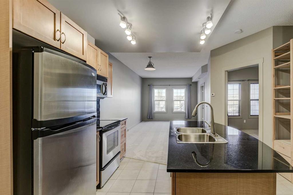 Excellent investment opportunity in the heart of Lake Bonavista. This beautifully maintained 1-bedroom condo features granite countertops, maple cabinetry, stainless steel appliances, in-suite laundry, and a bright east-facing balcony. The well-managed building offers sought-after amenities including a fitness centre, guest suites, and titled underground parking. Located steps from Southcentre Mall, transit, and Fish Creek Park pathways.