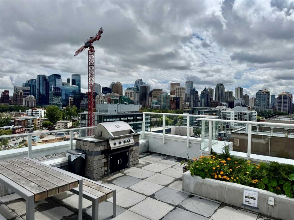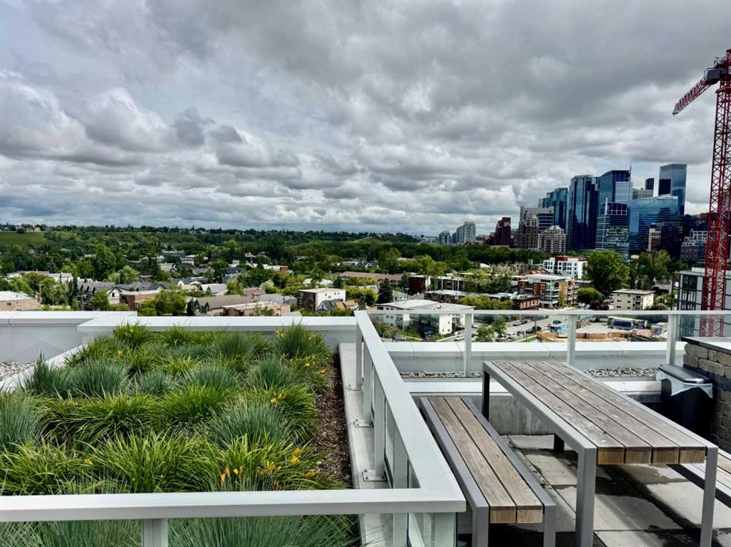 Priced to Sell… Welcome to the Pinnacle of Urban Living at The Theodore! Nestled in the heart of Kensington and at almost 600 sqft., this meticulously designed west-facing unit offers a unique blend of luxury and convenience. As you step into this thoughtfully crafted residence, you'll be greeted by an abundance of natural light flowing through expansive west-facing windows, showcasing the chinook arch to the west. The open concept space connects the living, dining, and kitchen areas, creating an inviting atmosphere for both relaxation and entertaining. The modern kitchen is a chef's delight, featuring sleek countertops, top-of-the-line Fisher & Paykel stainless steel appliances, and central island. Whether hosting a dinner party or enjoying a quiet night in, this space effortlessly combines style and functionality. The primary suite is a true sanctuary with a west-facing window, bathing the room in afternoon, natural sunlight. Adjacent to the primary suite, the main bath is a full 4-piece spa with a deep, relaxing soaker bath, perfect for unwinding after a busy day in the city. The condo can be used as a legal 2 bedroom condo or have the bedroom used as a Den. This unit comes with an assigned parking stall right across from the elevator entrance to the garage. Enjoy panoramic views of the city and surrounding landscapes from the rooftop patio, complete with 2 outdoor kitchens, Adirondack chairs and fire table. Located in Kensington, one of the most highly desired neighborhoods in all of Calgary, residents enjoy easy access to the city's best restaurants, shops, and cultural attractions, making every day an opportunity to experience the dynamic urban lifestyle.
