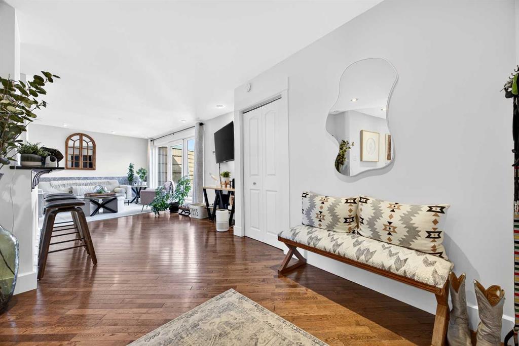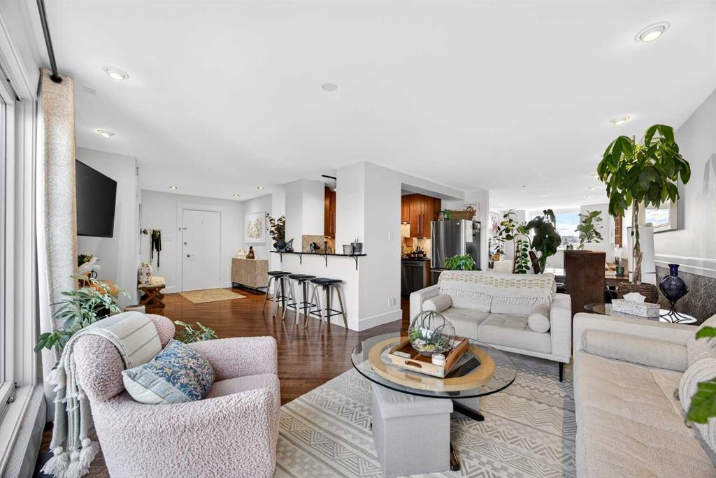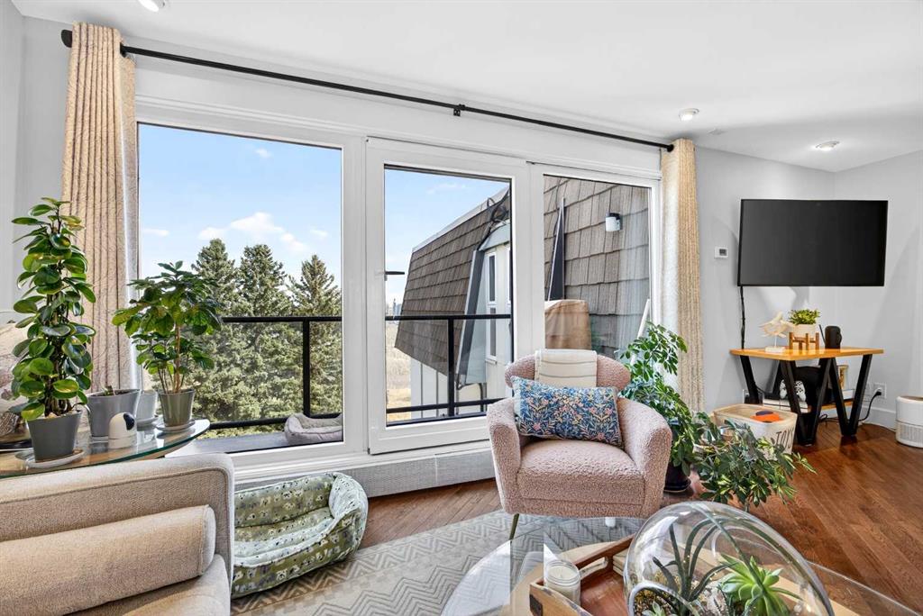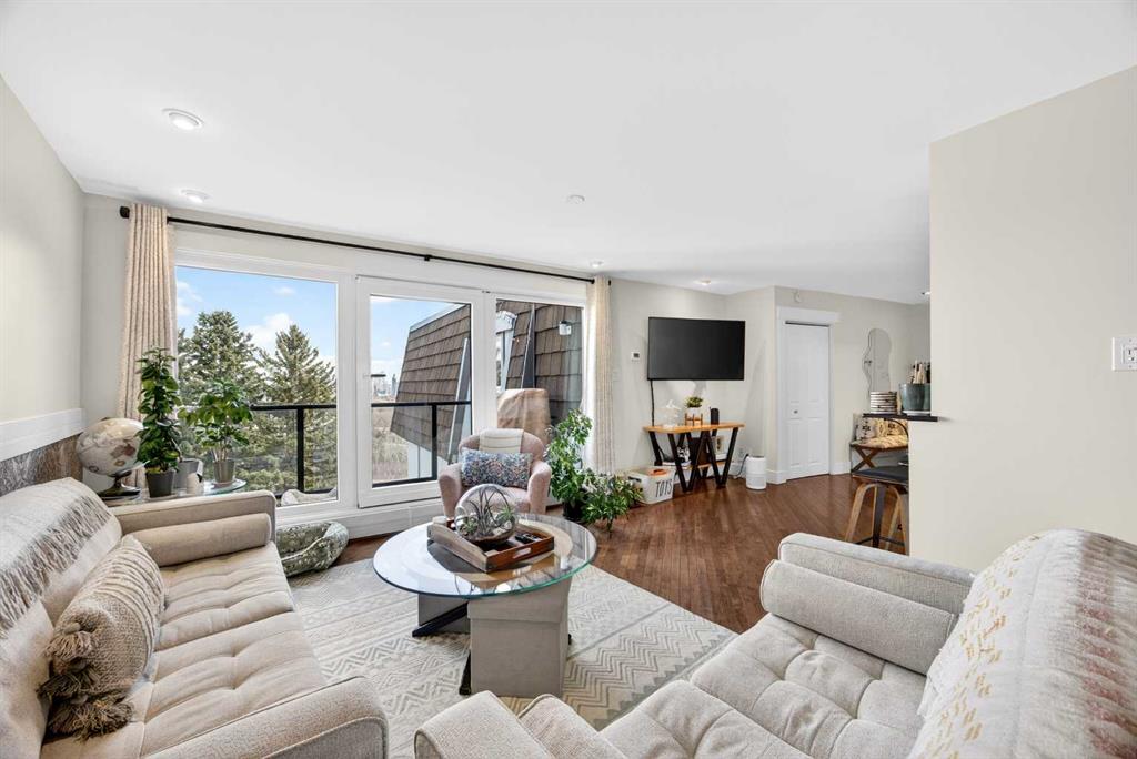 The PENTHOUSE @ RIVERVIEW l OVER 1030 SQ FT l 2 BEDROOM + FLEX + 2 FULL BATHROOMS l BALCONY w DOWNTOWN VIEW l CONCRETE BUILDING l 1 PARKING STALL + 1 RENTED STALL l ENSUITE LAUNDRY ***ATTENTION: PROFESSIONALS l FIRST-TIME BUYERS l INVESTORS l DOWNSIZERS l DISCERNING BUYERS*** A rare opportunity to own the top-floor penthouse unit in this well-maintained inner-city building — one of the largest and most impressive suites in the complex, offering over 1,030 sq ft of refined, light-filled living space. Every room benefits from generous windows, hardwood floors, flat ceilings with dimmable pot lights, and a seamless open-concept layout that feels both elegant and effortlessly livable. The kitchen shines with quartz countertops & SS appliances flowing naturally into the living and dining areas — where breathtaking downtown Calgary views take centre stage. Step onto your private balcony and let the skyline speak for itself. The spacious primary bedroom features its own ensuite, while a second bedroom and flex room offer versatility for any lifestyle. A brand new washer and dryer complete this truly move-in-ready home. The building is equally impressive — a solid, well-maintained concrete structure managed by an exceptionally proactive condo board. Recent capital upgrades include new balconies, patio windows & doors, exterior walls, and a new boiler, with no major projects anticipated ahead. The reserve fund is on track to be fully funded within a couple of years, with condo fee reductions planned to follow. Backing onto Edworthy Park & Douglas Fir Trail systems, Direct Bike Path to downtown YYC, Walking Distance from Train Station, Steps from the Elbow River pathways, 17th Avenue, and the best of inner-city Calgary living. Penthouse views - Turnkey condition. & a building you can trust.