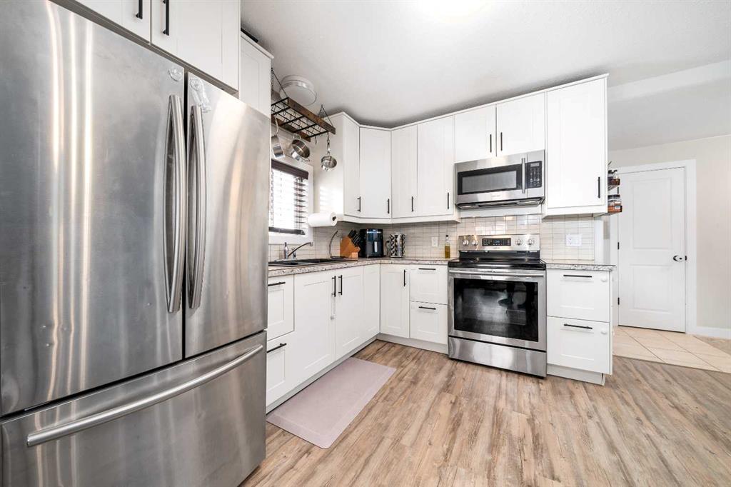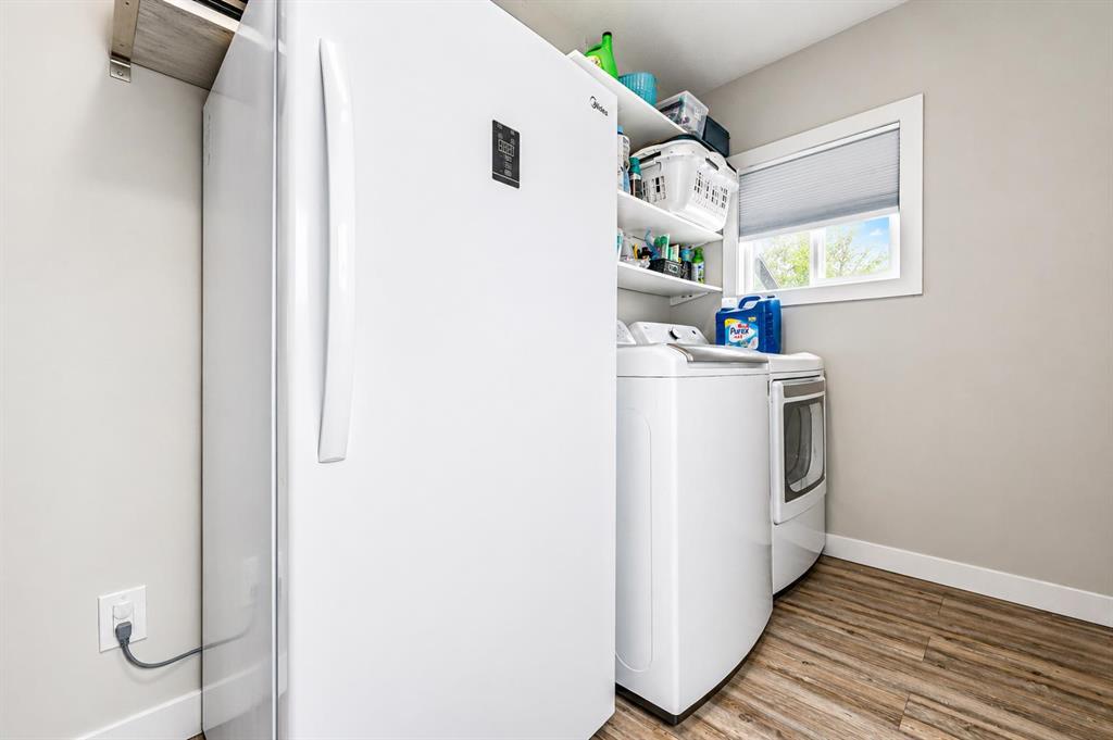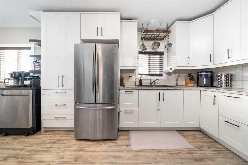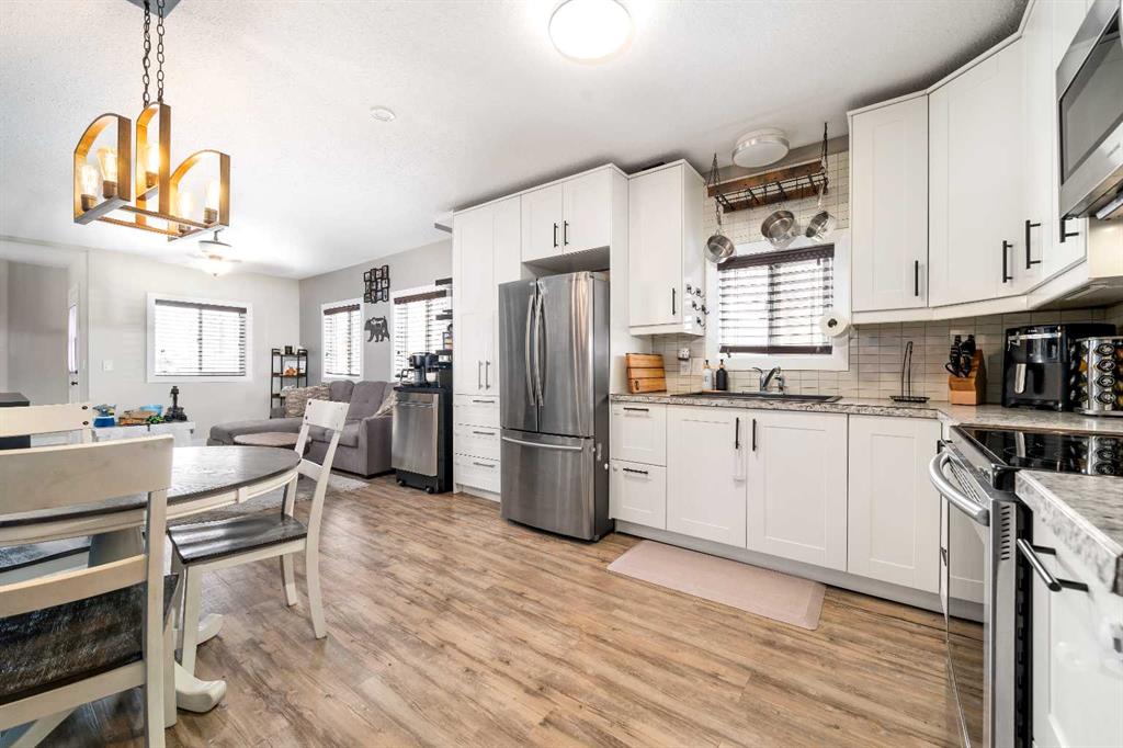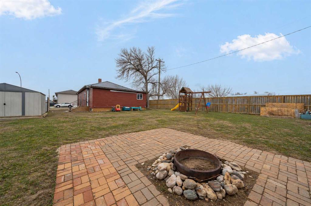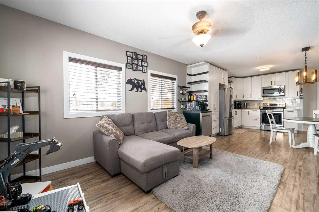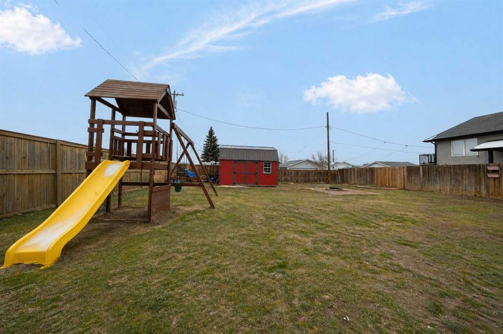 Welcome to this charming, move-in ready home—perfect for first-time buyers, those looking to downsize without compromise, or savvy investors seeking solid rental potential. Thoughtfully updated just a few years ago, this property offers the ease of single-level living with a bright, open-concept layout designed for modern comfort. The main floor features durable vinyl plank flooring, a stylish kitchen with ample cabinetry and dining space, and a spacious living room ideal for everyday living and entertaining. You’ll also find three comfortable bedrooms, a full 4-piece bathroom, and the convenience of main floor laundry. Downstairs, the basement provides additional flexibility with a generous storage area/bonus space that could easily serve as a playroom, hobby area, or home office. Step outside to enjoy the large lot, offering plenty of room for future development—including space to build a garage. There’s ample parking, including RV parking, plus two storage sheds for all your tools and toys. The yard is set up for enjoyment with a playground, fire pit area, and a cozy wood patio—perfect for relaxing or hosting gatherings. This is an excellent opportunity to own an affordable, well-maintained home with room to grow.