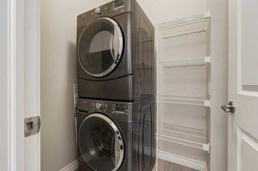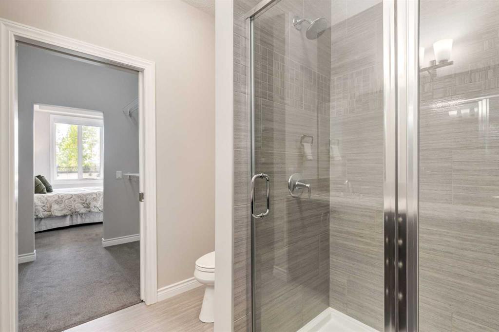 Welcome to 39 Quarry Gate SE! This stunning top-floor, former show suite is filled with natural light and showcases 10-ft ceilings throughout with a bright, open layout. The kitchen features classic shaker-style cabinetry with soft-close doors and drawers, a spacious pantry cupboard, polished Caesarstone countertops with a breakfast bar, stainless steel appliances, an upgraded garburator, and a Kohler polished nickel faucet. The dining area is highlighted by a beautiful Hudson Valley light fixture and flows into the spacious living room with oversized, wall-to-wall windows. Step out onto the private, south-facing patio complete with a gas BBQ line and lovely views of the central fountain and surrounding greenspace that leads directly to the river park and pathways. The primary bedroom includes a walk-through closet and a stylish ensuite with a double vanity and an oversized glass-enclosed shower. The second bedroom is ideal for guests and features its own walk-in closet, with a second full bathroom conveniently located across the hall. Additional highlights include a laundry room with built-in shelving and a niche area off the kitchen that’s perfect for a desk or workstation. This unit also comes with a titled underground parking stall and the largest titled storage room in the entire complex. The building also features a bike storage room for added convenience. Ideally located across from the river and pathways — and just steps from the amenities of Quarry Park and the YMCA — this home is perfect for the active buyer looking to enjoy a maintenance-free lifestyle in a great complex.