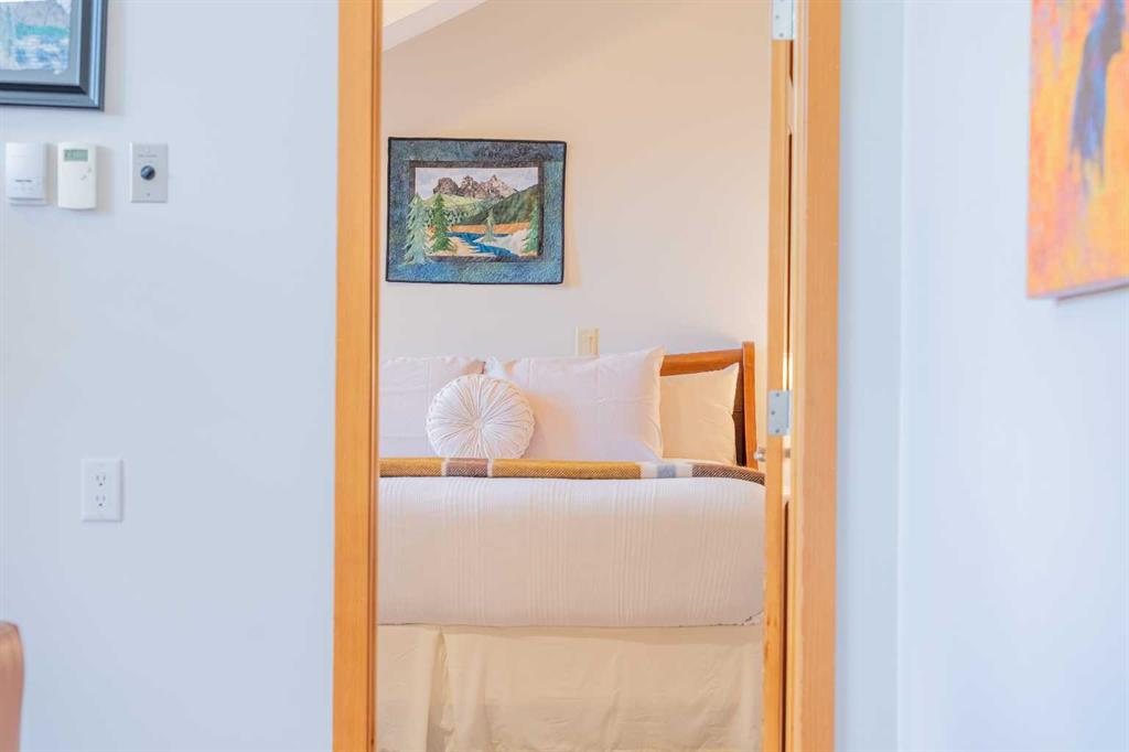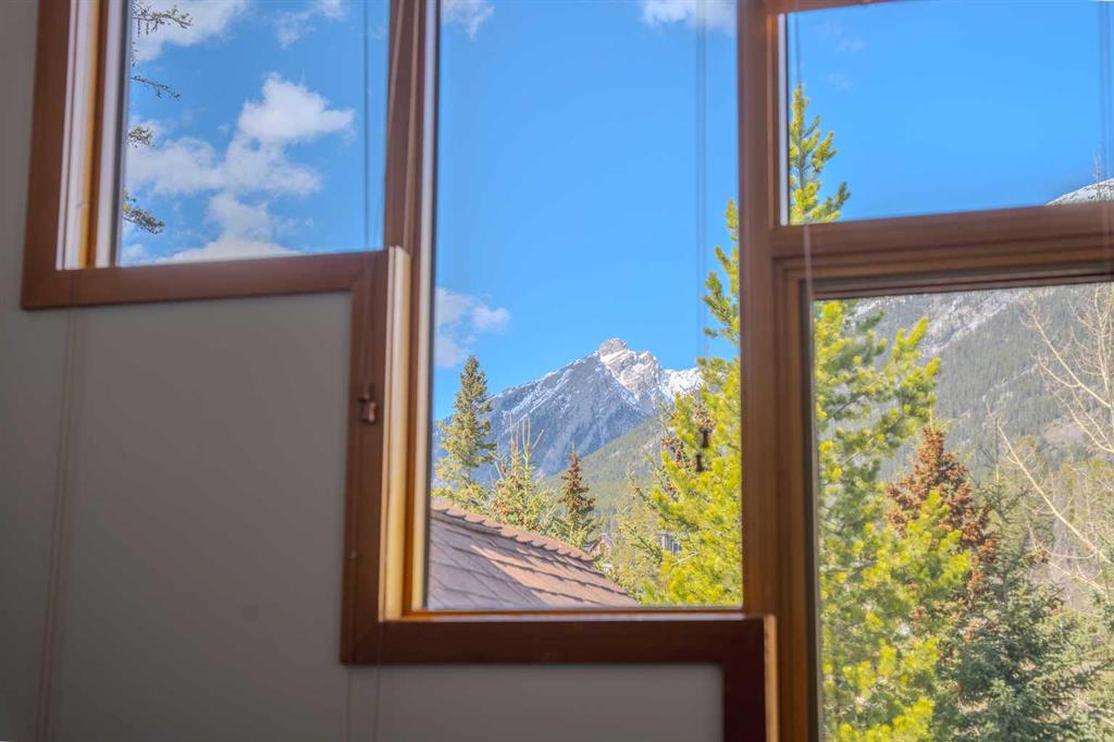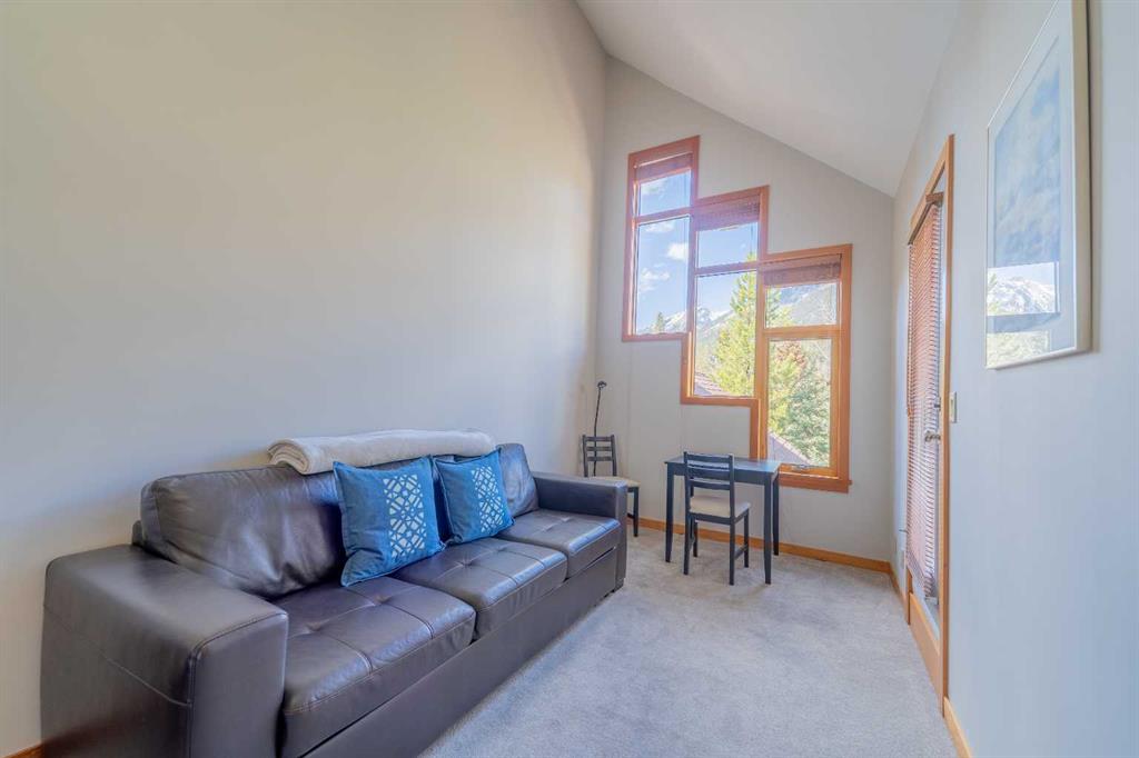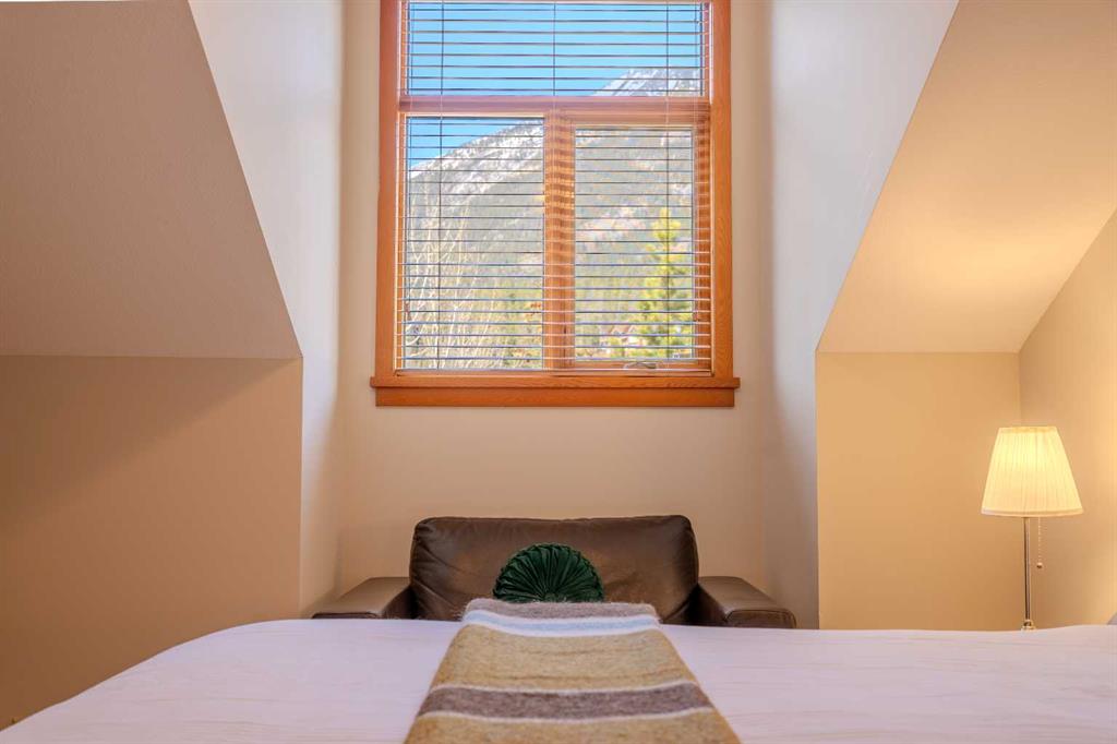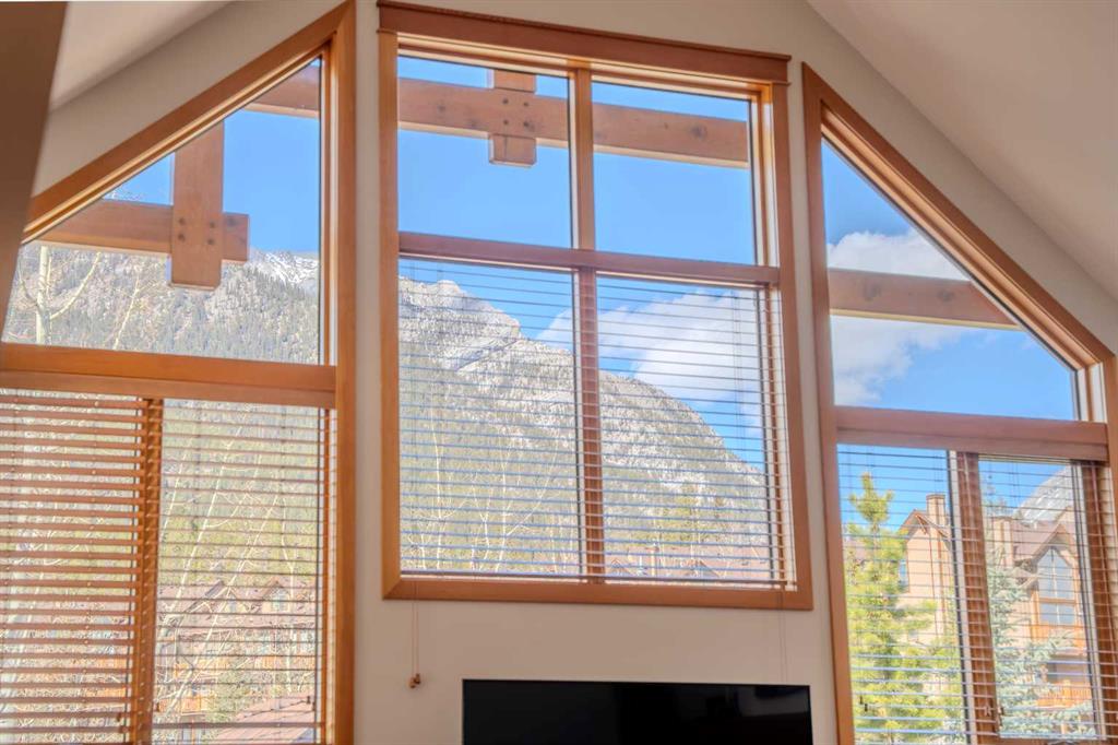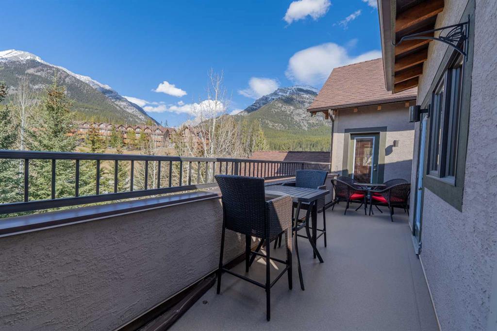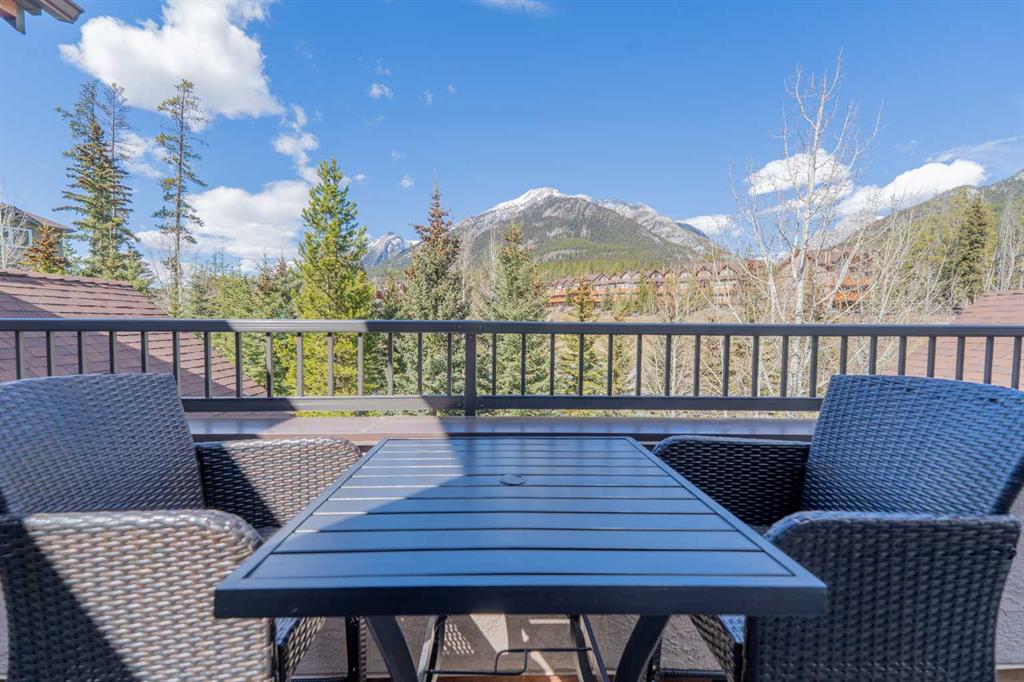 Penthouse living in Eagle Terrace, one of Canmore's most stunning neighbourhoods on Canmore's highly sought-after "sunny side." This expansive top-floor 2-bedroom plus den residence offers 1,595 square feet of single-level mountain living with sweeping, unobstructed northwest views of the Rockies. Filled with natural light throughout the day, the open-concept living and dining areas flow seamlessly to a spacious deck with three access points from the living room, kitchen, and primary bedroom, creating an effortless indoor-outdoor lifestyle rare at this level. An ideal place for your morning coffee or sunset viewing, with the Rockies as your backdrop from every angle. The thoughtfully designed layout features a spacious primary suite with mountain views, a well-appointed second bedroom, and a versatile den ideal for a home office or guest space. The kitchen is functional and well-positioned within the open-plan layout, which lends itself well to hosting and to those who love to cook. Where this property truly stands apart is in the details that matter most to mountain living. You'll find two oversized storage rooms, one conveniently located on the top floor and a second in the underground parkade. These provide exceptional space for gear, bikes, skis, and everything the Rockies lifestyle demands. Two titled underground parking stalls round out a package that is hard to find at this price point in Canmore. Eagle Terrace is one of those neighbourhoods that residents rarely leave. Steps from the Iron Goat, the Eagle Terrace field and playground, and Cougar Creek, with direct access to Canmore's infinite trail network right from your doorstep. Downtown Canmore is minutes away, yet the setting feels private, elevated, and immersed in the natural surroundings that make this valley so special. The building is well managed. Parkade is wired for EV chargers. This is a lock-and-leave mountain home done right, a rare top-floor opportunity in one of Canmore's most enduring and desirable communities.