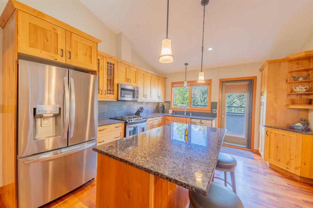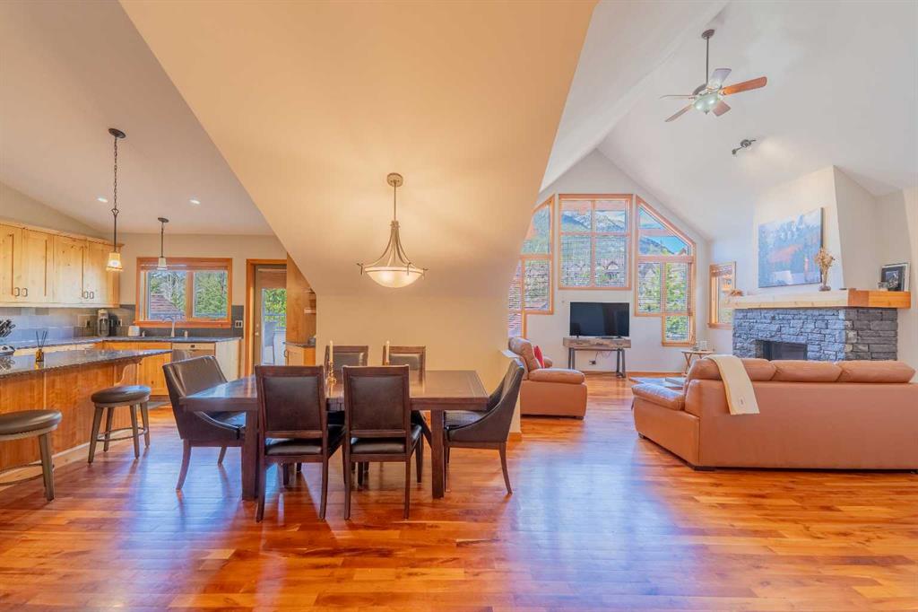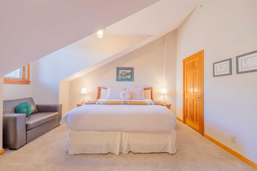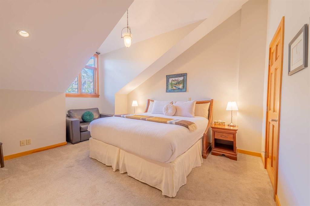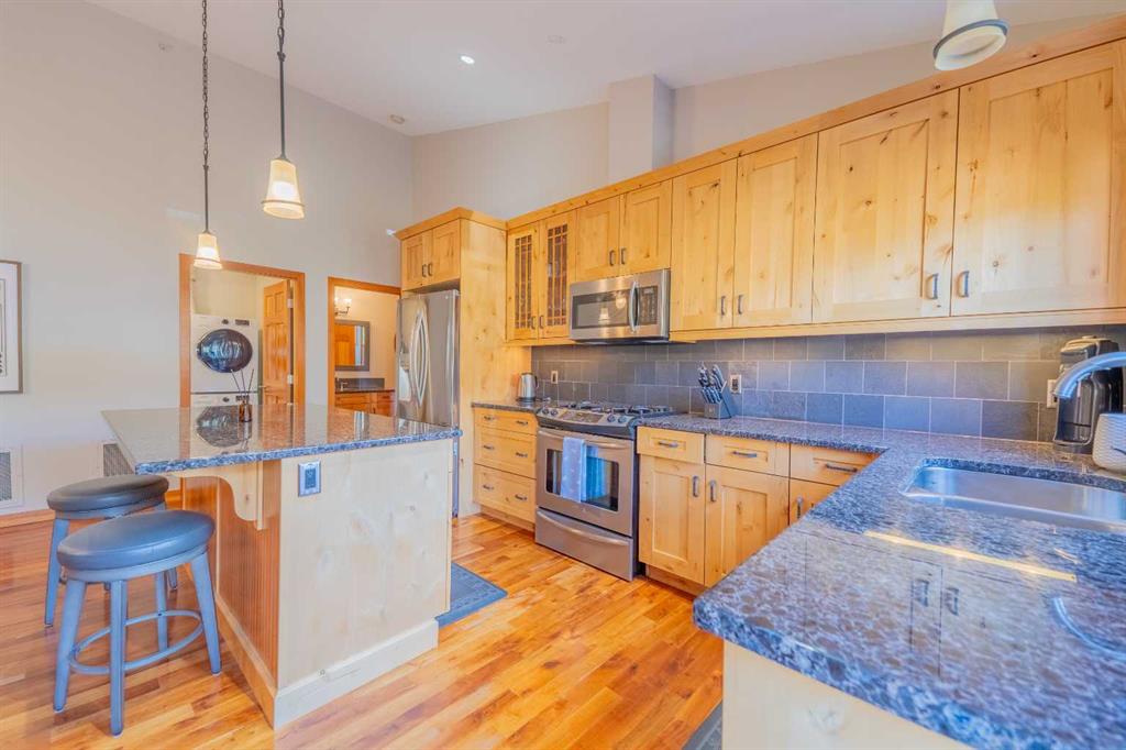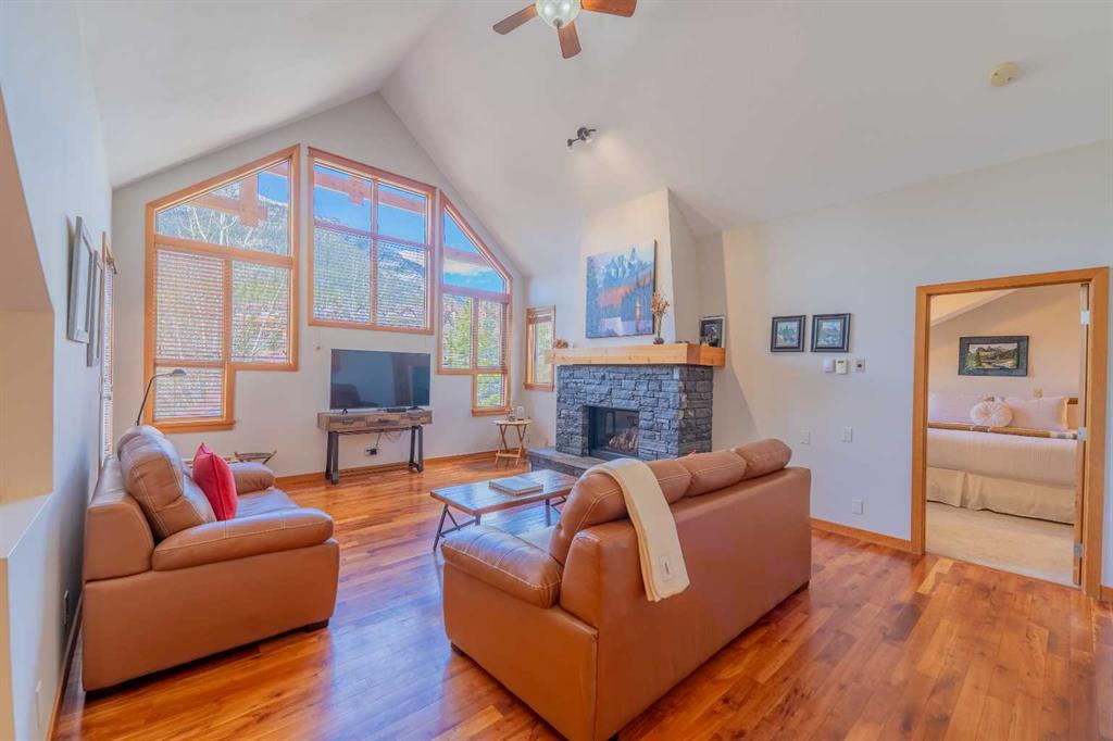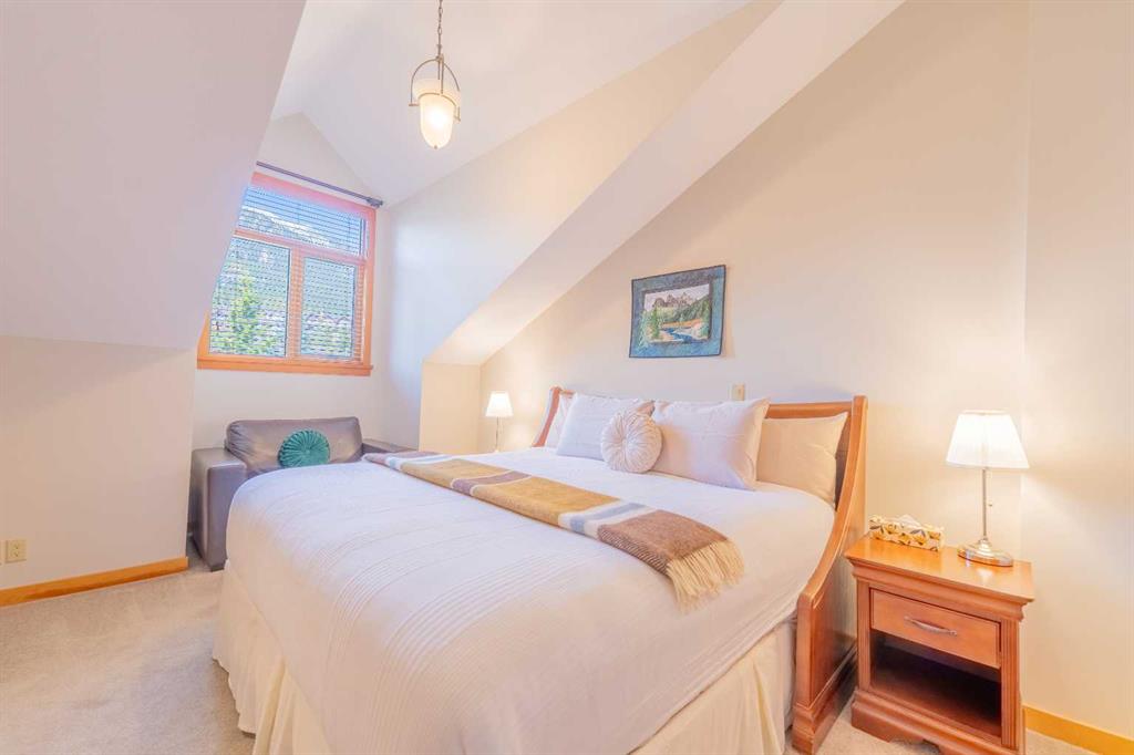 Penthouse living in Eagle Terrace, one of Canmore's most stunning neighbourhoods on Canmore's highly sought-after "sunny side." This expansive top-floor 2-bedroom plus den residence offers 1,595 square feet of single-level mountain living with sweeping, unobstructed northwest views of the Rockies. Filled with natural light throughout the day, the open-concept living and dining areas flow seamlessly to a spacious deck with three access points from the living room, kitchen, and primary bedroom, creating an effortless indoor-outdoor lifestyle rare at this level. An ideal place for your morning coffee or sunset viewing, with the Rockies as your backdrop from every angle. The thoughtfully designed layout features a spacious primary suite with mountain views, a well-appointed second bedroom, and a versatile den ideal for a home office or guest space. The kitchen is functional and well-positioned within the open-plan layout, which lends itself well to hosting and to those who love to cook. Where this property truly stands apart is in the details that matter most to mountain living. You'll find two oversized storage rooms, one conveniently located on the top floor and a second in the underground parkade. These provide exceptional space for gear, bikes, skis, and everything the Rockies lifestyle demands. Two titled underground parking stalls round out a package that is hard to find at this price point in Canmore. Eagle Terrace is one of those neighbourhoods that residents rarely leave. Steps from the Iron Goat, the Eagle Terrace field and playground, and Cougar Creek, with direct access to Canmore's infinite trail network right from your doorstep. Downtown Canmore is minutes away, yet the setting feels private, elevated, and immersed in the natural surroundings that make this valley so special. The building is well managed. Parkade is wired for EV chargers. This is a lock-and-leave mountain home done right, a rare top-floor opportunity in one of Canmore's most enduring and desirable communities.
