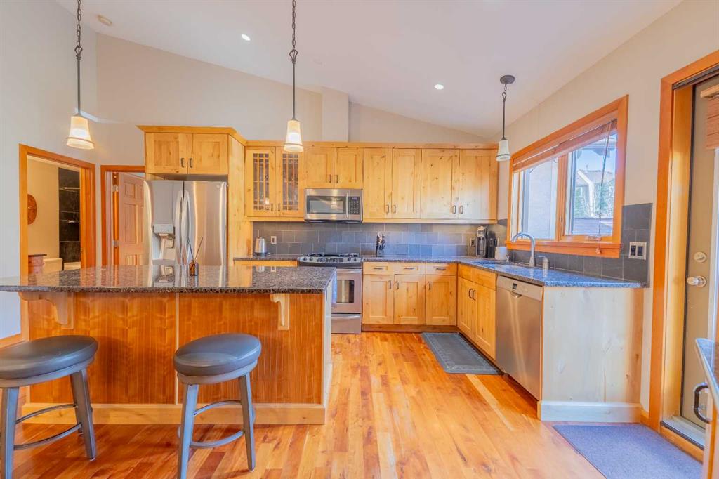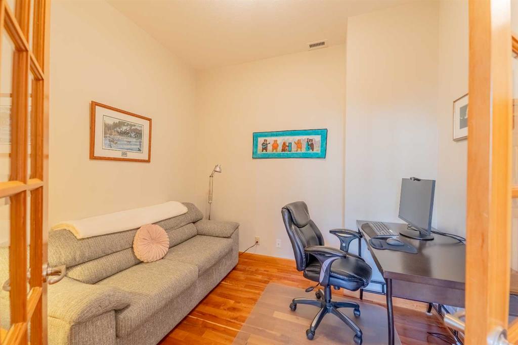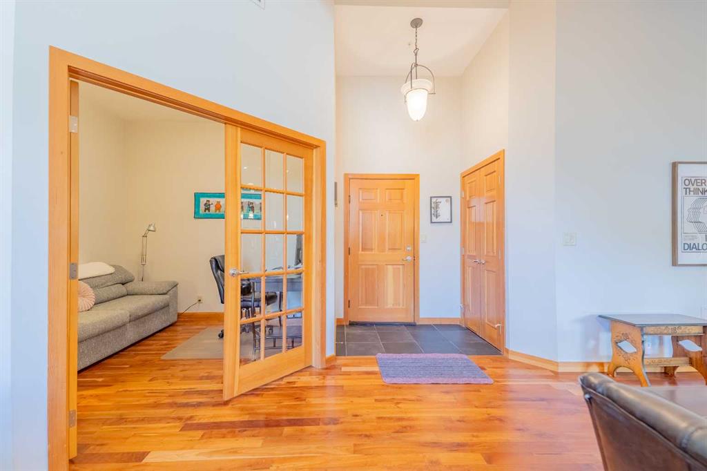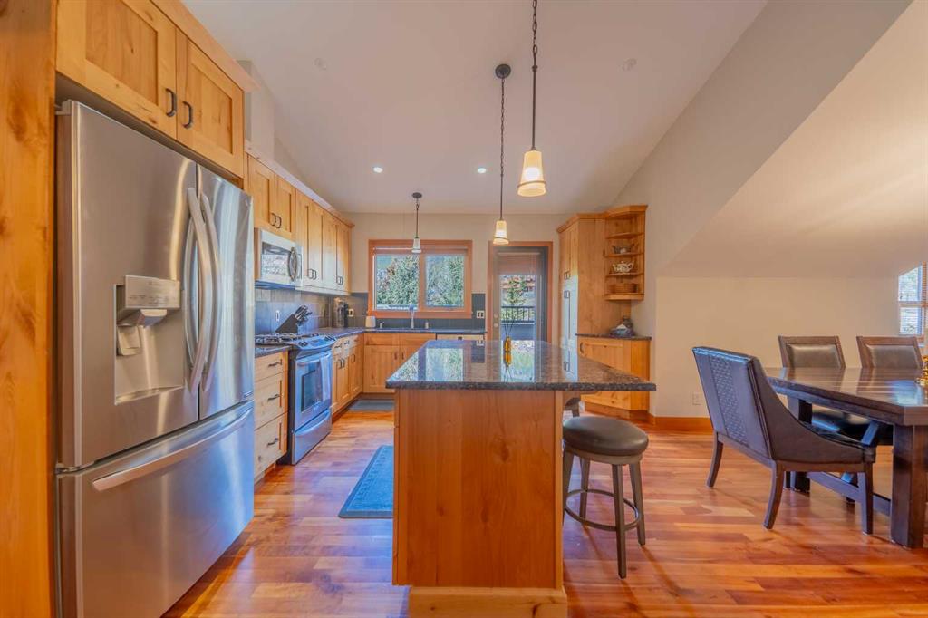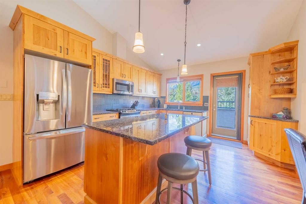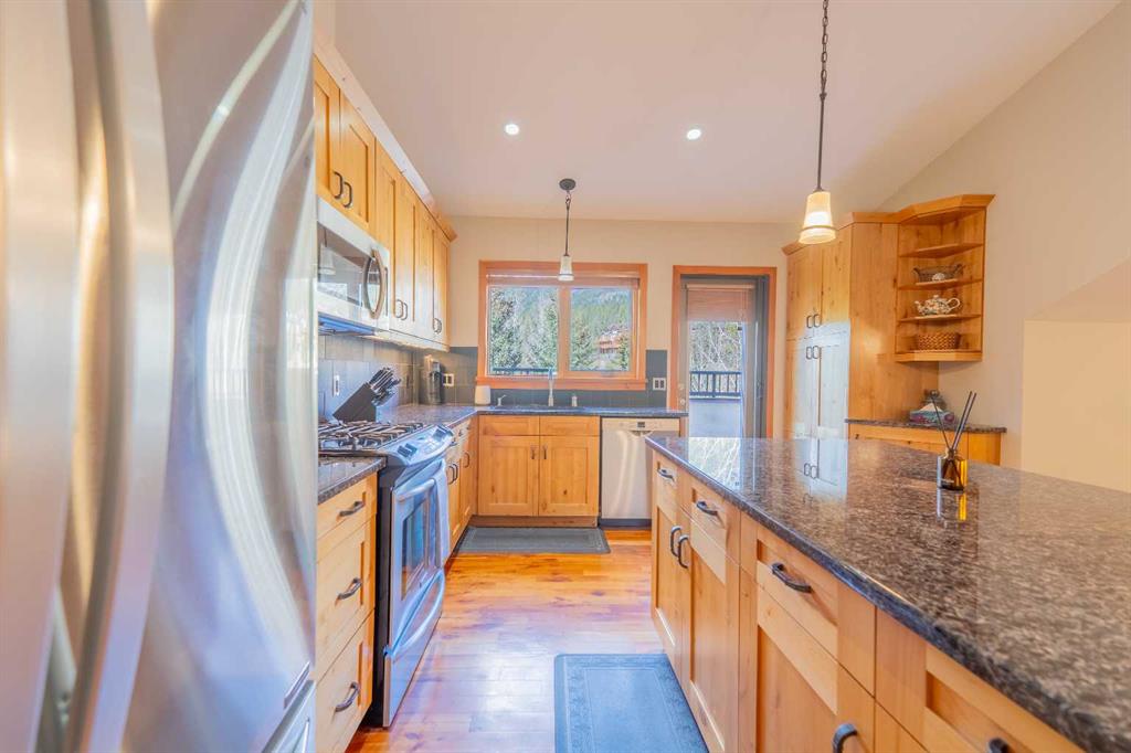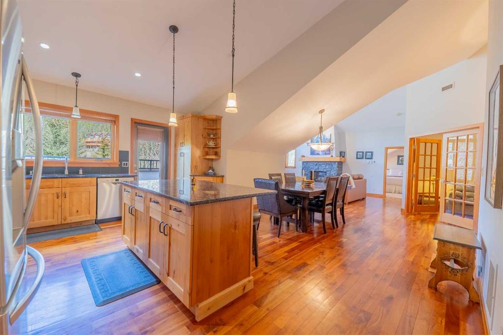 Penthouse living in Eagle Terrace, one of Canmore's most stunning neighbourhoods on Canmore's highly sought-after "sunny side." This expansive top-floor 2-bedroom plus den residence offers 1,595 square feet of single-level mountain living with sweeping, unobstructed northwest views of the Rockies. Filled with natural light throughout the day, the open-concept living and dining areas flow seamlessly to a spacious deck with three access points from the living room, kitchen, and primary bedroom, creating an effortless indoor-outdoor lifestyle rare at this level. An ideal place for your morning coffee or sunset viewing, with the Rockies as your backdrop from every angle. The thoughtfully designed layout features a spacious primary suite with mountain views, a well-appointed second bedroom, and a versatile den ideal for a home office or guest space. The kitchen is functional and well-positioned within the open-plan layout, which lends itself well to hosting and to those who love to cook. Where this property truly stands apart is in the details that matter most to mountain living. You'll find two oversized storage rooms, one conveniently located on the top floor and a second in the underground parkade. These provide exceptional space for gear, bikes, skis, and everything the Rockies lifestyle demands. Two titled underground parking stalls round out a package that is hard to find at this price point in Canmore. Eagle Terrace is one of those neighbourhoods that residents rarely leave. Steps from the Iron Goat, the Eagle Terrace field and playground, and Cougar Creek, with direct access to Canmore's infinite trail network right from your doorstep. Downtown Canmore is minutes away, yet the setting feels private, elevated, and immersed in the natural surroundings that make this valley so special. The building is well managed. Parkade is wired for EV chargers. This is a lock-and-leave mountain home done right, a rare top-floor opportunity in one of Canmore's most enduring and desirable communities.