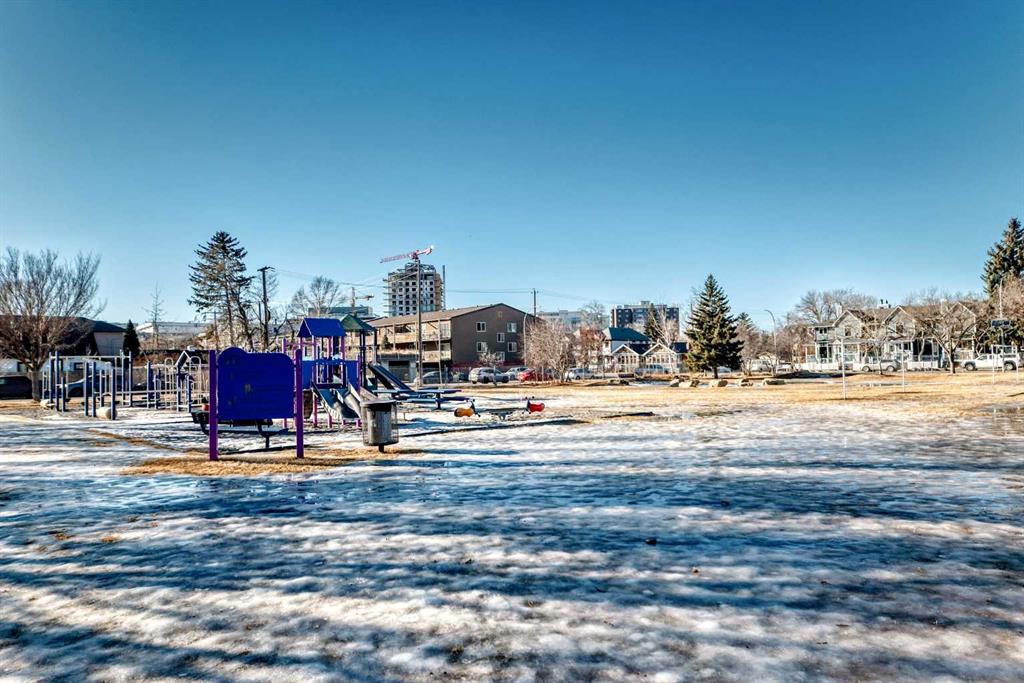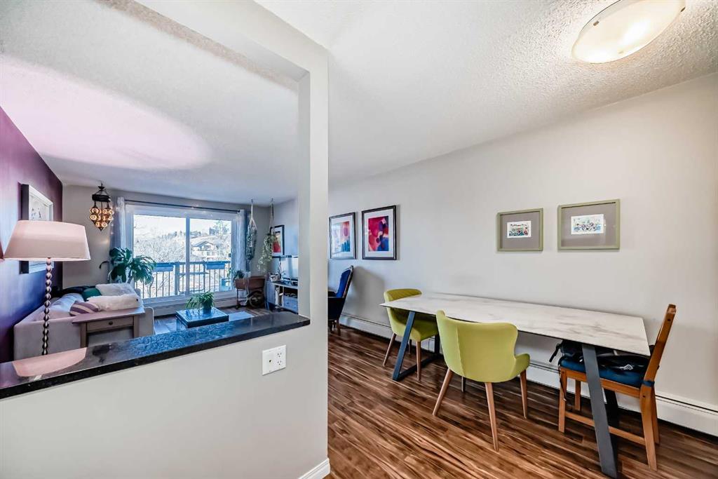 Welcome to this beautifully updated 2-bedroom condo located in the highly sought-after community of Sunnyside, where urban convenience meets neighbourhood charm. Situated in the heart of the city, you’re just steps from everything Calgary has to offer—C-Train access, shopping, restaurants, schools, parks, playgrounds, and the entire downtown core are all within walking distance. This bright and inviting 2-bedroom, 1-bath home has been extensively renovated throughout. The kitchen features warm maple cabinetry, granite countertops, and a stylish glass tile backsplash, flowing seamlessly into the dining area accented by a striking feature wall. From there, the space opens into a spacious, bright living room with access to a private balcony overlooking the park across the street—an ideal and rare inner-city retreat to relax and unwind. The generously sized primary bedroom includes custom built-in closet storage, while the second bedroom also offers ample space and its own built-in closet. The fully renovated 4-piece bathroom showcases bright white tile, a deep soaker tub, and dual shower heads. A large linen closet is conveniently located in the hallway, and the unit also offers a dedicated in-suite storage room with laundry. Additional amenities include a coin-operated laundry room with utility sink on the lower level and secure bike storage. A convenient parking stall with plug-in is included, along with permit street parking and ample visitor parking. Excellent transit access connects you seamlessly to downtown, SAIT, the University of Calgary, and Foothills Medical Centre via nearby LRT and bus routes. Don’t miss this incredible opportunity to own a stylish, move-in-ready condo in one of Calgary’s most vibrant inner-city communities.