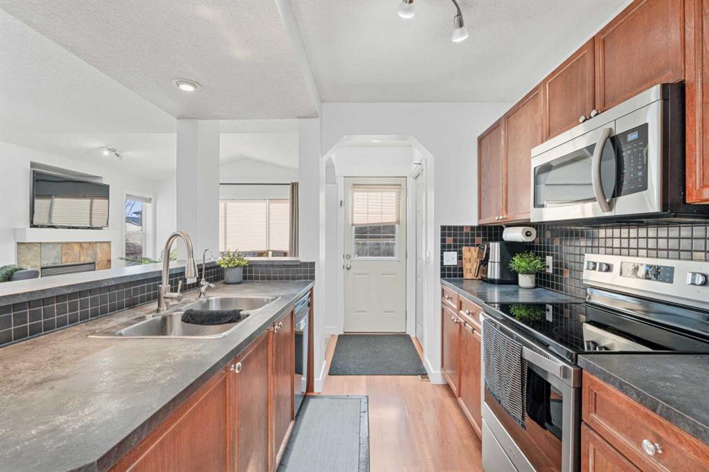 ***OPEN HOUSE Saturday (November 22nd) and Sunday (November 23rd) from 1-3pm*** Welcome to this beautifully maintained home in the highly sought-after community of Drake Landing. This property offers exceptional versatility with a well-designed main living area and an illegal suite on the lower level, providing plenty of options for families, guests, or future rental potential. The upper level features 3 bedrooms and 2.5 bathrooms, all arranged to support comfortable everyday living. As you enter, you are greeted by a warm and inviting living room with vaulted ceilings that create a bright and spacious atmosphere. This area flows smoothly into the open-concept kitchen and dining space, which includes stainless steel appliances, ample cabinetry, and a layout that makes both cooking and hosting enjoyable. The main level also includes a dedicated office, perfect for working from home or managing household schedules. A convenient half bath is located on this floor for added practicality. The large primary bedroom serves as a peaceful retreat at the end of the day. It includes a 4 piece ensuite along with a generous walk in closet. Two additional bedrooms on this level share access to another full bathroom, offering plenty of space for family or guests. The lower level offers a 1 bedroom, 1 bathroom illegal suite with a separate entrance. This space is ideal for extended family, guests, or as a private area for older children. It provides functional living and adds valuable flexibility to the home. Outside, the property continues to impress with an oversized double detached garage and two additional parking spaces, making it easy to accommodate multiple vehicles or recreational equipment. The yard is designed to be low maintenance while still offering room for outdoor enjoyment. The community of Drake Landing provides walking paths, parks, and a welcoming neighbourhood environment. This home combines comfort, practicality, and character, creating an excellent opportunity for both families and investors. If you are looking for a property that offers space, flexibility, and an inviting atmosphere, this Drake Landing gem is ready to welcome you.