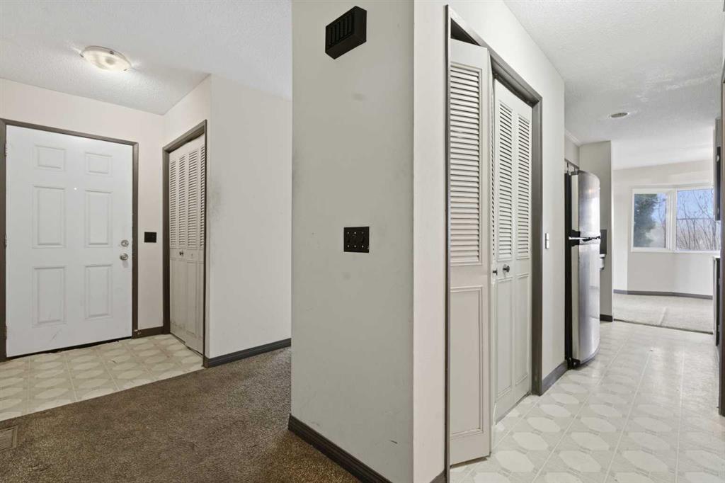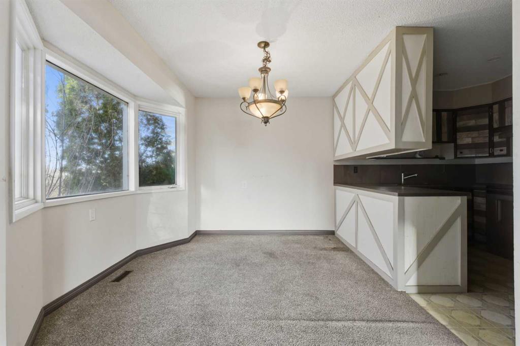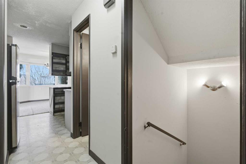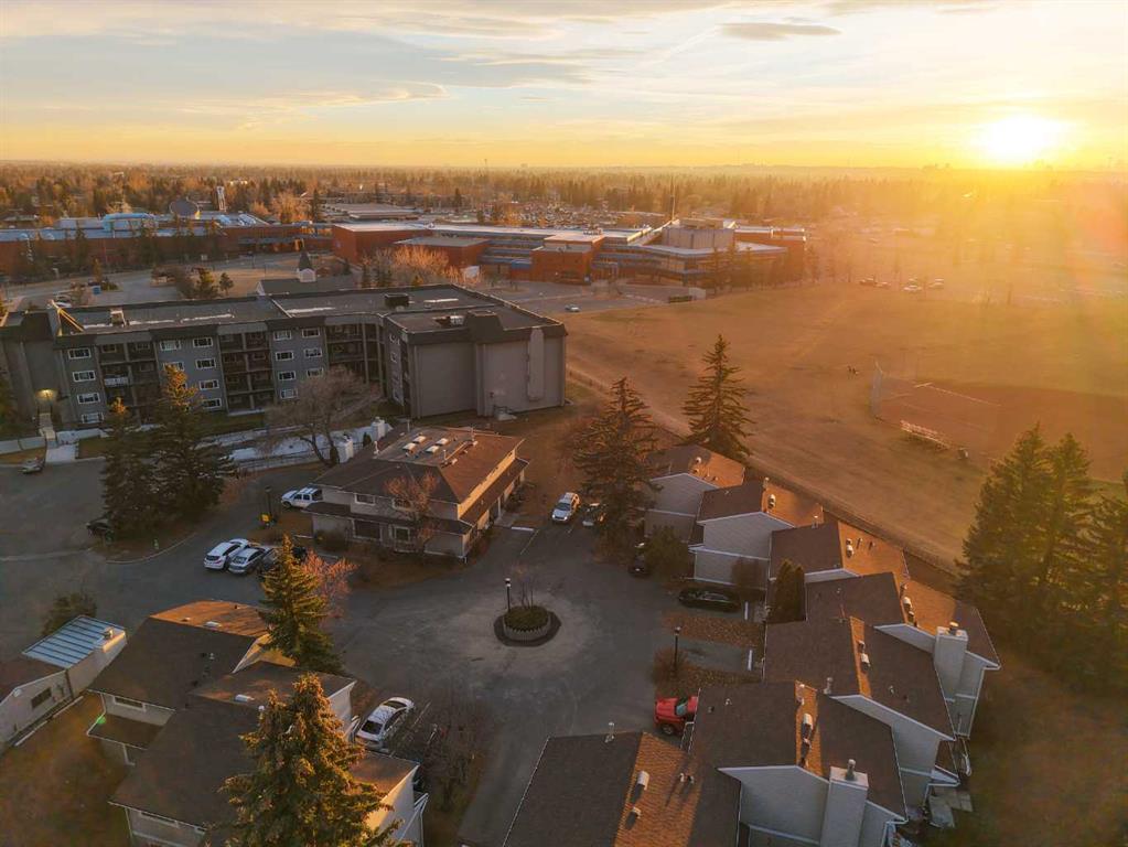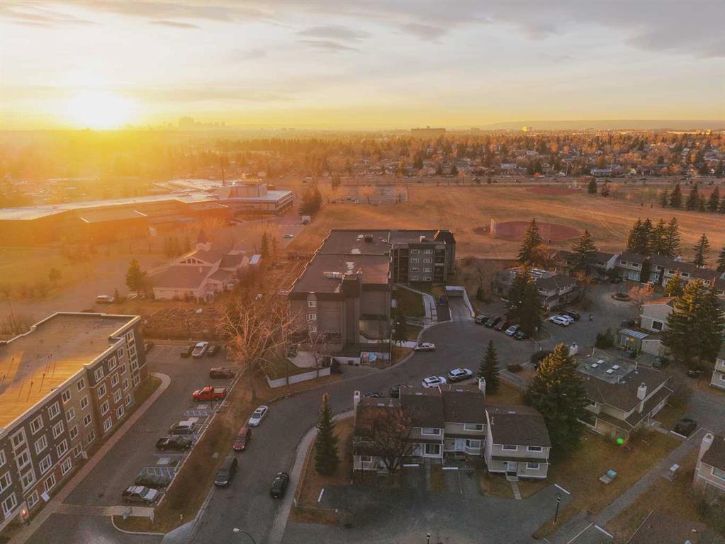 END UNIT | BACKING GREEN SPACE | 5 BEDROOMS | SPACIOUS 1280 SQ FT LAYOUT + FINISHED BASEMENT | VERY DESIRABLE COMPLEX | STEPS TO SCHOOLS, TRANSIT & AMENITIES | AMAZING VALUE FOR FAMILIES, INVESTORS & RENOVATORS | This bright end-unit townhome sits in a sought-after complex and offers an incredibly functional layout designed for families and anyone looking to personalize a home with their own updates. Oversized windows bring in natural light throughout the main level, while an inviting living room creates a warm gathering space anchored by an updated woodburning fireplace that adds both character and comfort. A bayed dining area supports easy flow for family meals and celebrations and the adjoining kitchen features generous cabinet storage, stainless steel appliances and a handy built-in desk for homework or work-from-home needs. A convenient powder room completes the main floor. Upstairs, 3 bedrooms ensure comfortable separation for family living, supported by a 4-piece bathroom with room to refresh and modernize. Even more flexibility awaits in the finished basement where a spacious rec room sets the stage for movie nights, gaming or a dedicated play area. 2 additional bedrooms and a 4-piece bathroom create valuable added living space for teens, guests or extended family. This level is ideal for buyers seeking versatility or investors exploring multi-generational accommodation options. Outdoor living is enhanced by direct access to a large green space, adding extra room for kids to play and for relaxed evening walks. A parking stall directly in front of the home adds everyday practicality. A truly unbeatable location elevates the value of this property, with Pineridge School, Saint Patrick School and Clarence Sansom School all within walking distance, along with transit, Village Square Leisure Centre, restaurants and shops. Quick access to Sunridge Mall and the C-Train strengthens convenience for commuting and errands. This is a fantastic opportunity for families, investors or handy homeowners to secure a spacious end-unit townhome in a well-managed community and update it to match their vision!