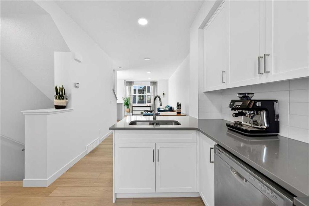 *OPEN HOUSE: SUNDAY NOVEMBER 23rd from 11AM-1PM* • ALPINE PARK HAS BEEN TURNING HEADS SINCE DAY ONE — a walkable west-side community built around bold architecture, gathering spaces, and an everyday rhythm that feels fresh, modern, and connected. This THREE-STOREY TOWNHOME fits right in. BARELY LIVED IN AND STILL FEELING BRAND NEW, it pairs a smart layout with bright exposures and that rare, easy, lock-and-leave lifestyle that works for both homeowners and investors. Think of it as the “skip-the-build-time, keep-the-warranty” option in a fast-growing neighbourhood. The main floor opens with a generous foyer and a surprisingly SPACIOUS DEN that’s bright enough to actually work in — no cave vibes here. It’s currently styled as a guest room, but the proportions make it a great office, studio, or play space, especially with the LARGE STORAGE ROOM around the corner and direct access to your SINGLE ATTACHED GARAGE. There’s even extra utility storage tucked away — the kind you forget about until you’re glad it’s there. Up one level, the kitchen, dining, and living spaces run together in one long, uninterrupted flow — the kind of layout that makes weeknight life feel easy and weekend hosting feel intentional. White cabinetry and charcoal quartz keep things clean and modern, while wood-tone LVP adds warmth. THE PENINSULA DOUBLES AS A BREAKFAST BAR, which means coffee, laptops, kid snacks, and last-minute dinner prep all have a place to land. And the FULL-WIDTH BALCONY stretches the living space outward. With its northwest outlook, it’s a built-in golden hour machine — perfect for grilling, unwinding, or pretending you’re “just going to step outside for one minute” and staying there for twenty. The top floor keeps things simple and functional: TWO BRIGHT BEDROOMS, EACH WITH ITS OWN FULL BATHROOM AND A FULL-WIDTH DOUBLE-DOOR CLOSET. One ensuite has a tile-and-glass shower; the other brings a tub/shower combo — ideal for guests, roommates, kids, or future resale flexibility. Laundry is exactly where you want it: upstairs. And because the home has only been lived in briefly, EVERYTHING from the appliances to the flooring to the mechanical systems feels FRESH AND NEW, with the BALANCE OF THE BUILDER WARRANTY TRANSFERRING TO THE NEW OWNER (ask for details). If you’re looking for a LOW-MAINTENANCE home in a vibrant, design-forward community — whether to live in or add to a portfolio — this one delivers a clean slate, a smart layout, and a location with long-term momentum. Book your showing and experience Alpine Park’s energy for yourself.
