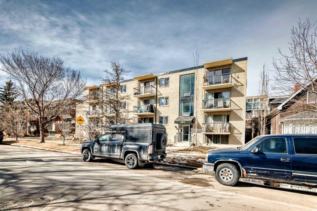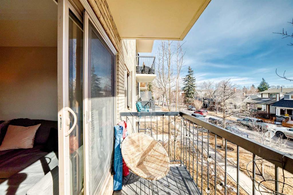 Freshly painted and thoughtfully updated, this bright condo sits in a well-maintained building with fantastic downtown views from a sunny south-facing balcony. The open floor plan, modern kitchen with granite countertops, white cabinetry, and stainless appliances (including a one-year-old Bosch dishwasher) makes entertaining and daily living a pleasure. The living area is bright with laminate flooring running throughout. Large patio doors lead to the balcony for easy indoor- outdoor living. The spacious primary bedroom features a large closet and downtown view. The 4 piece bathroom boasts a granite vanity and a touch of personality with funky wallpaper. The Bosch washer is a year old and there’s the option to install a dryer. There is also a common laundry room in the building. The unit includes secure bike storage and an assigned parking stall. Roof replacement is scheduled for summer 2026. Amazing location steps from the LRT, Safeway, Kensington pubs and restaurants, SAIT, University of the Arts, and Jubilee, with easy access to downtown, U of C, Foothills and Children’s Hospital campuses. Bike lanes, walking paths, plus off-leash dog parks, are nearby for an active urban lifestyle.