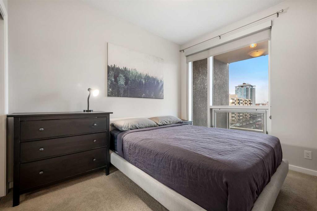 Welcome to this stylish, clean and quiet 1-bedroom, 1-bathroom condo located in the heart of Calgary’s vibrant Beltline community. Offering the perfect blend of comfort, convenience, and urban lifestyle, this modern condo places you right in the heartbeat of the city. Step inside to discover a bright, open-concept layout featuring 9-foot ceilings and large windows that fill the space with natural light. The thoughtfully designed west-facing unit offers beautiful views of the downtown skyline, and enjoy your west-facing balcony, a perfect place to relax and take in Calgary’s stunning sunsets and vast blue skies. The stylish kitchen offers plenty counter and cabinet space, including large storage drawers, complete with a convenient breakfast bar that flows seamlessly into the bright and cozy living room. The generous bedroom provides a comfortable retreat, while in-suite laundry and air conditioning add to the home’s everyday convenience. Residents enjoy outstanding building amenities including concierge service, plus access to second-floor amenities featuring a massive fitness centre and a beautifully designed garden terrace- perfect for relaxing or socializing. This unit also includes underground parking with one of the best parking spots in the building, adding incredible value and ease to downtown living. Located just steps from Calgary’s new Culture and Entertainment District, you’ll be surrounded by the city’s best restaurants, shopping, nightlife, and entertainment. With LRT access, transit, downtown offices, and countless amenities all steps away, this location truly offers the ultimate urban lifestyle. Live where Calgary comes alive.