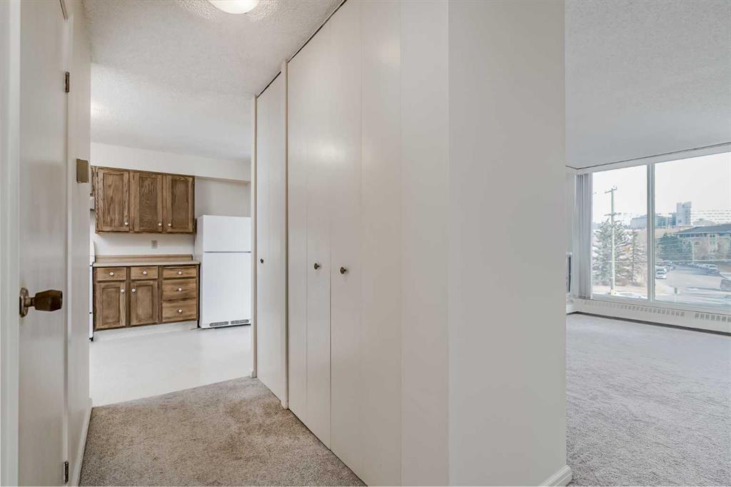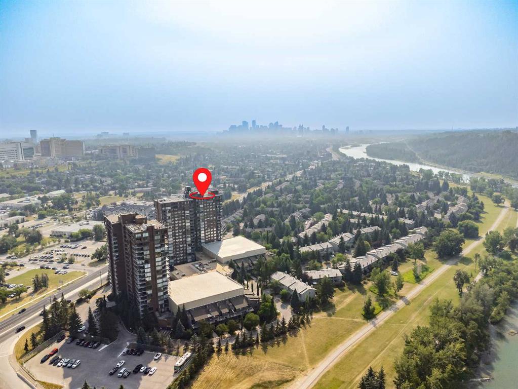 Welcome to this fabulous 1 bedroom, 1 bathroom home in one of Calgary's most desired complexes, Riverside Towers. This home truly has it all. With only steps to the Bow River, parks and pathways, walkability is the best of the best for inner city condo's. An immaculate and spacious floor plan includes over 768 square feet of living space with north east views. Your kitchen is well finished with ample counter space, tons of cabinetry for storage and great appliances. The living room and dining room adjoin your kitchen and make for the perfect space for entertaining guests or quiet nights at home with the family. A north east facing balcony give you a gorgeous outdoor space for morning coffee or a glass of wine at night while you listen to the birds. The primary bedroom is very large to accommodate for a king size bed, all of your additional bedroom furniture and is just across from your full 4 piece bathroom. In-suite laundry and storage space complete the unit but it doesn't stop there. The Riverside Towers complex has great amenities and is attached to the Riverside Club offering all owners of units in the complex 2-for-1 membership costs for double occupancy units including a fitness centre, pool, hot tub, tennis and options for personal training and fitness classes. This is your opportunity to own a great home in a remarkable location with accessibility to great amenities, do not miss out, this could be your next home!!