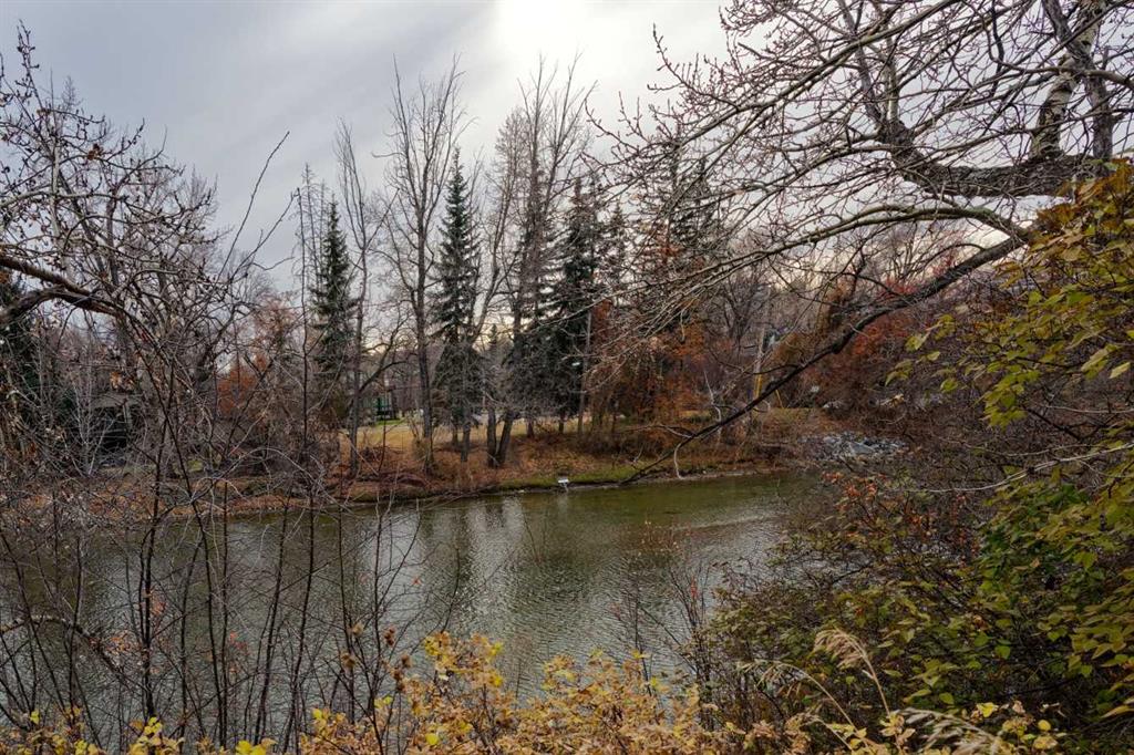 Check the 3D TOUR! One of Calgary’s most vibrant communities is home to this generously sized, sought-after CORNER UNIT in the fabulously refreshed CLASSIC Riverscape Condominiums. This 2-bedroom, 2-bath abode offers just under 1,100 sq. ft. of stylish, feel-good living space. Redesigned in 2023, it features a designated modern kitchen with white cabinetry, quartz countertops, and sleek stainless steel appliances—a dream setup for anyone who loves to cook. Overlooking the dining area, the layout flows nicely into a spacious living room that opens onto an immense wrap-around balcony tucked among the trees—perfect for morning coffee, evening liqueur, or those quiet, special moments in between. Wide-plank vinyl flooring runs throughout. The primary suite feels wonderfully spacious, with a walk-through closet leading to a 4-pc ensuite featuring a striking Travertine marble countertop. Down the hall, a second 4-pc bath with matching finishes complements the additional bedroom. A surprisingly large laundry/storage area adds welcomed convenience. This unit includes one assigned underground parking stall and separate storage. Residents enjoy a fitness room adjacent to a shared outdoor patio, while landscaped grounds lead to the Elbow River pathways and the lively 4th Street corridor—home to cozy cafés, brunch spots, restaurants, and boutique shops. With nearby transit, river pathways, and quick access to 4th Street, 17th Avenue and Downtown, this location truly has it all ( get yer steps in!). Experience living in one of Calgary’s most iconic and walkable communities. Don’t miss this—the VIBE is real. :)