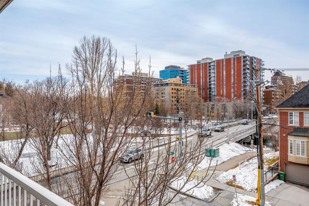 Experience an exceptional inner city lifestyle mere steps from the Elbow River. This stunning corner unit at The Waterford of Erlton encompasses over 1,100 sq. ft. of well-appointed living space on the third floor, complete with two titled underground parking stalls and stunning views. The modern, open concept design features 9-foot ceilings, updated hardwood flooring, and a bright, inviting living area highlighted by a gas fireplace. The kitchen is thoughtfully curated with upgraded stainless steel appliances and ample cabinetry that marry function and style. Each of the two generously sized bedrooms include private and semi-private ensuite bathrooms and spacious walk-in closets, ensuring comfort, privacy, and versatility of living arrangements. Additional features include a large covered South and West facing balcony overlooking the scenic river pathways, as well as a dedicated in-suite laundry room equipped with a washer and dryer. Residents of the building enjoy access to a range of amenities, including bicycle storage, a car wash bay, visitor parking, and a reservable courtyard pavilion with a party room for larger gatherings. Ideally situated within walking distance to the MNP Community & Sport Centre, the Calgary Stampede Grounds, shops along 4th Street, fine dining in Mission, 17th Avenue Entertainment & Retail District, and the Downtown Core, this home offers unrivalled urban convenience amongst some of the city's most beautiful natural landscapes. A pedestrian-oriented haven with reduced commute time when needed, with proximity to Erlton LRT Station and major thoroughfares like Macleod Trail.