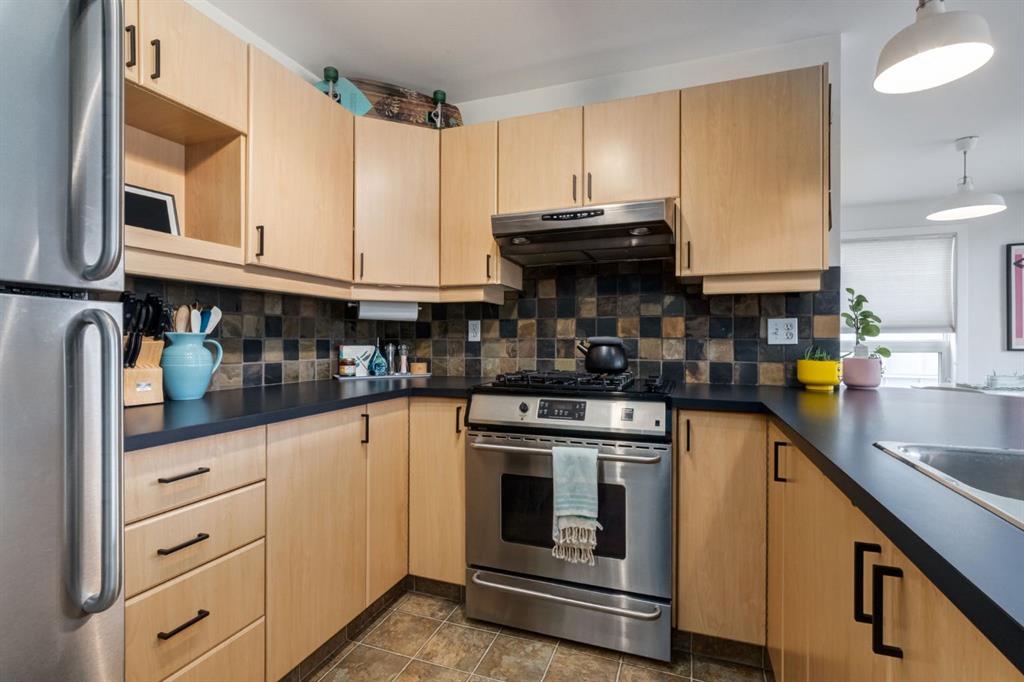 Welcome to The Ellington, a beautiful 2 bedroom, 2 bathroom condo on the 3 floor, perfectly located in the heart of the city. Enjoy the best of urban living with parks, restaurants, shops and scenic bike paths just steps away- all while overlooking a peaceful green space. Step inside to an open-concept living and dining area with large windows that fill the space with natural light. Patio doors lead out to your private balcony from the dining area - the perfect spot for morning coffee or evening relaxation. The kitchen features laminate countertops, stainless steel appliances and kitchen bar. The spacious primary bedroom includes a walk-in closet and full ensuite for your comfort. Additional features include In-suite laundry, heated titled underground parking and extra storage locker. This well maintained condo offers the ideal mix of comfort, style and convenience in a vibrant inner-city location.