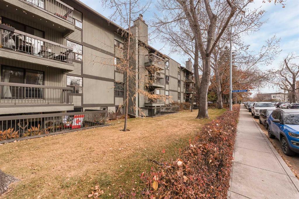 HISTORIC CLIFF BUNGALOW - INVITING CONDO - 2 BEDROOMS - 1 BATH – 982 SQ. FT. OF LIVING SPACE – OFF STREET PARKING – WOOD BURNING FIREPLACE - NUMEROUS UPDATES. Welcome home. Awesome home for a working professional, a newly wed couple or young family. The complex is well maintained, has a modern elevator and a park like feel that is right next to an expansive ridge that has hundreds of mature trees. The condo has a exceptional floorplan that features the following: Quiet end unit / Lots of natural light flowing in / A walk-through master bedroom closet / Plenty of in-suite storage / In-suite laundry / An open concept dining area-living room-kitchen / Granite counters / A relaxing balcony overlooking a park across the street / 8 feet ceilings / Laminate flooring / And much more! Location, Location and Location: 15 minutes to The Children's- Foothills-Rockyview Hospitals. 9 minutes to Downtown. 6 minutes to Stampede Grounds (Cowboys, The Casino, The Saddledome and more). 7 minutes to Lindsay Park and The MNP Sports/Recreation Centre (swimming, running, weights, yoga, racquet sports and more). 4 minutes to 17 Ave SW/ The Red Mile’s awesome nightlife and appetizing eateries. 3 minutes to the heart of 4th St SW’s many trendy shops and flavorful restaurants. Close to public transportation, walking paths, schools, libraires, supermarkets, Elbow River rafting-many beaches and more. Several minutes away from major roads and highways. Don’t miss this great condo!
