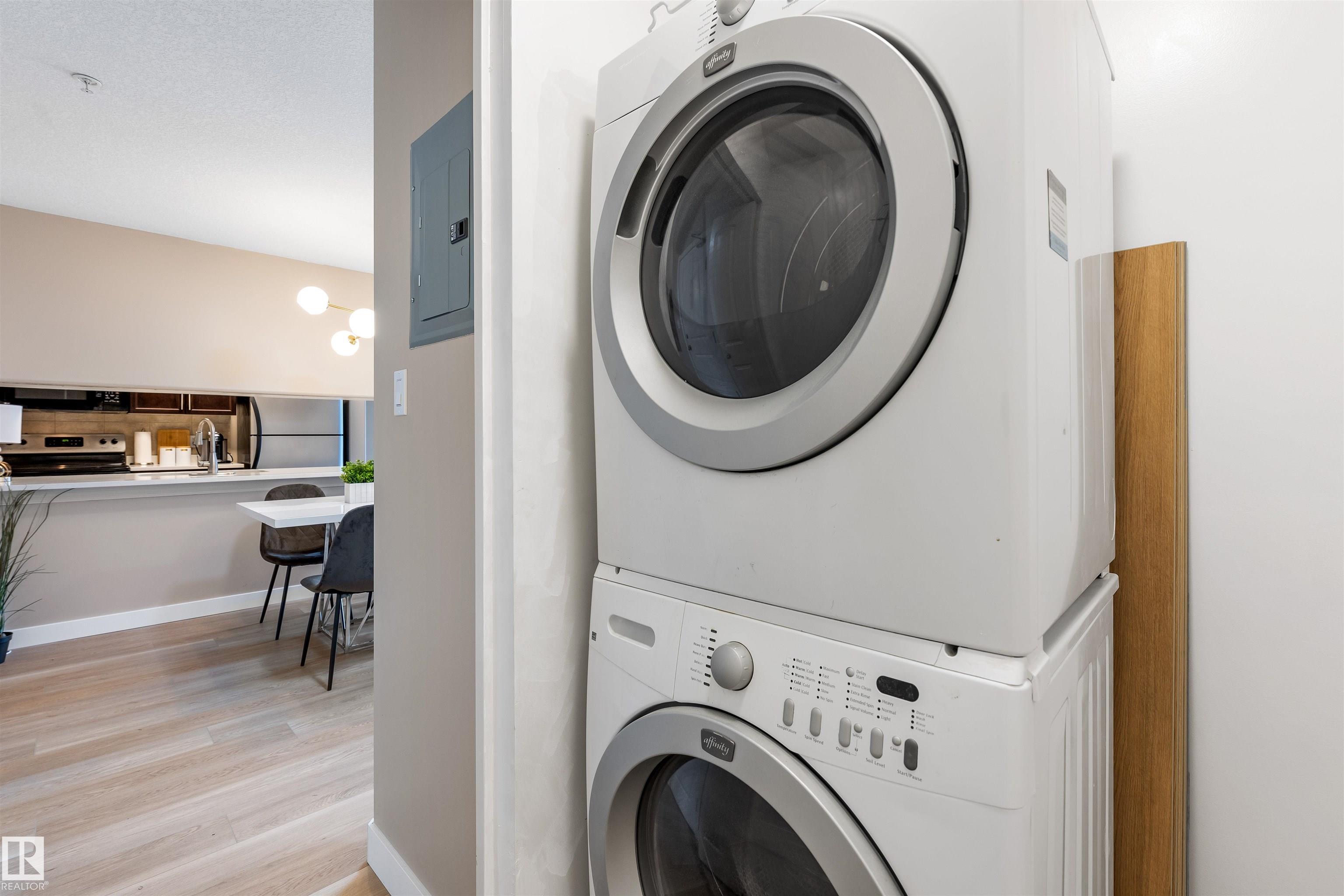 Welcome to this RENOVATED condo in the highly sought after community of South Terwillegar. This delightful 2 bedroom/2 bathroom unit offers 854sqft in an incredible location close to all amenities. The kitchen features a pass through to the dining space, full height cabinetry with ample storage space and gleaming new QUARTZ counters/undermount sink. The living space features new VINYL PLANK FLOORING that flows throughout. There is a large balcony complete with gas hook up for a bbq! The primary bedroom has a three piece ENSUITE, built in linen closet and a walk through closet. The spacious second bedroom offers a good amount of closet space as well. This home has an assigned UNDERGROUND PARKING STALL and a titled storage unit for your convenience! Freshly painted, new flooring, lighting, quartz and so much more. Quick possession!