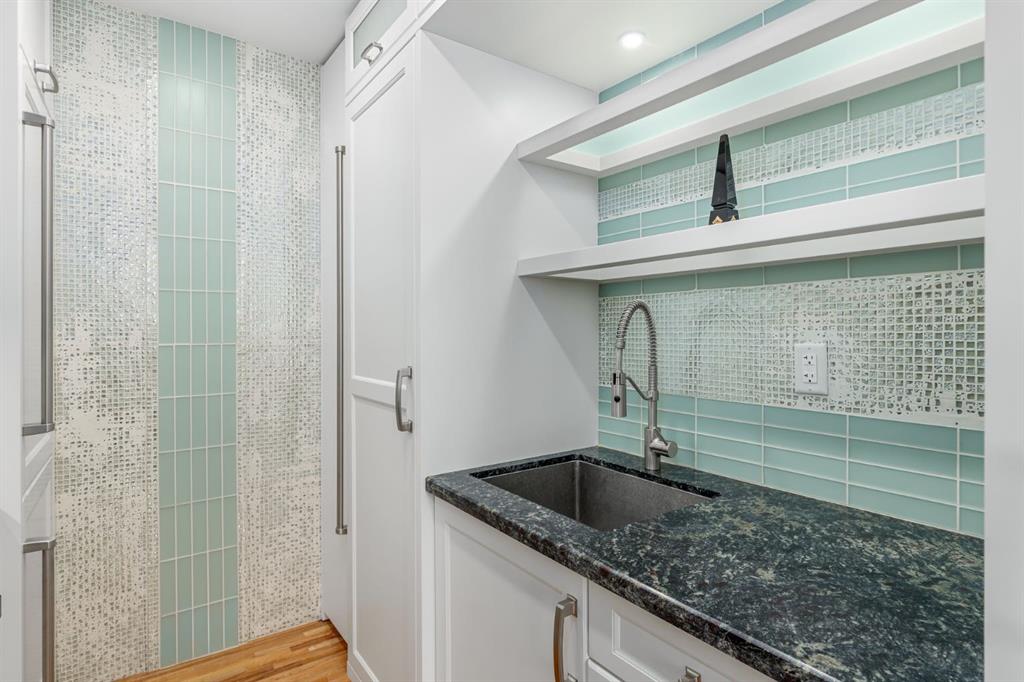 Stunning upgraded condo in the heart of Mission with views of the Elbow River! This one bedroom condo has been completely renovated and interior designed with luxury finishes and features refinished oak hardwood flooring, gorgeous marble tiled walls in the entry, beautiful new custom galley kitchen with leathered granite counter tops, built-in appliance package and tiled backsplash, absolutely incredible bathroom with floor to ceiling marble tile, new washing machine, an open bedroom and an amazing view of the Elbow River from the balcony. Assigned outdoor parking stall and just steps to the river paths and all the great amenities Mission has to offer! Truly a one of a kind unit in a fantastic location. Call today for your private showing!