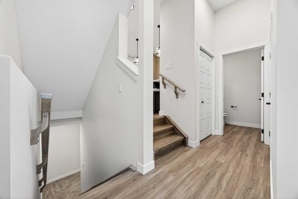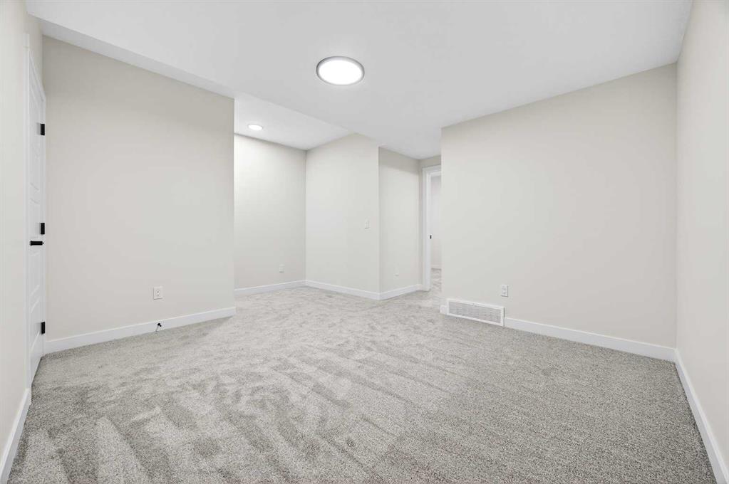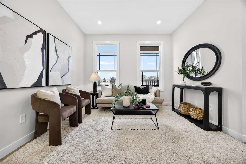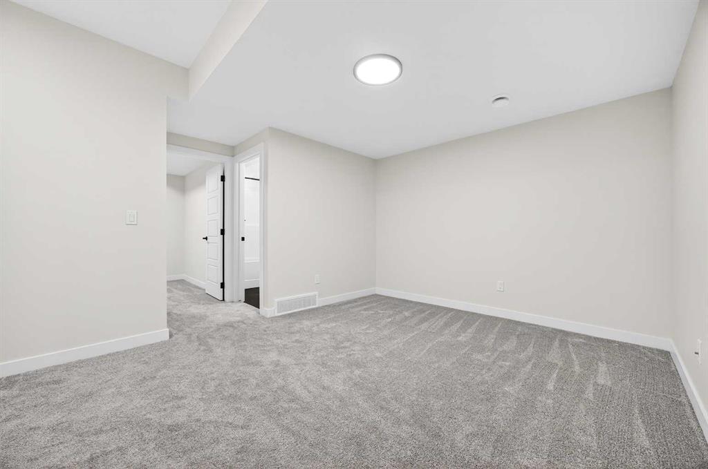 Welcome to this stunning FULLY FINISHED no-condo-fee END-UNIT townhome, scheduled for completion in Summer 2026. Thoughtfully designed, this home offers an attached single garage, 4 bedrooms, 3.5 bathrooms, and a bonus room. This property is perfect for those seeking low-maintenance and stylish living. Stepping inside, you are greeted by a chic, designer-inspired colour palette with a mix of warm and cool tones, where durable vinyl plank flooring and soaring 9’ ceilings enhance the bright, open ambiance. A sunlit front living room flows seamlessly into the dining area and contemporary kitchen, creating the ideal setting for both everyday living and effortless entertaining. The kitchen is a chef’s delight, featuring sleek quartz countertops, a stainless steel appliance package, and beautiful cabinetry in Chantelle lace and maple Crestmont, styled with boardwalk white tile. A convenient powder room and additional storage complete the main floor. Upstairs, the spacious primary suite includes a generous walk-in closet and a spa-like ensuite equipped with dual sinks. Step out onto your private bedroom balcony—the perfect spot for morning coffee or evening relaxation. With laundry located nearby, household chores are a breeze. Two additional bedrooms are thoughtfully separated by the bonus room, providing flexibility for a play area, office, or secondary lounge. A full bathroom serves the secondary bedrooms, making the upper floor both functional and family-friendly. The finished basement offers 9-foot ceilings, a recreational room, full bathroom and spacious mechanical room with storage space. bedroom. Alpine Park is one of the city’s newest and most carefully planned urban communities. Designed around tree-lined streets, walkable pathways, and vibrant gathering spaces, Alpine Park brings together the charm of classic neighbourhood living with modern conveniences. Area size was calculated by applying the RMS to the blueprints provided by the builder. Taxes to be assessed. Kitchen photo is representative of builder finishings.
