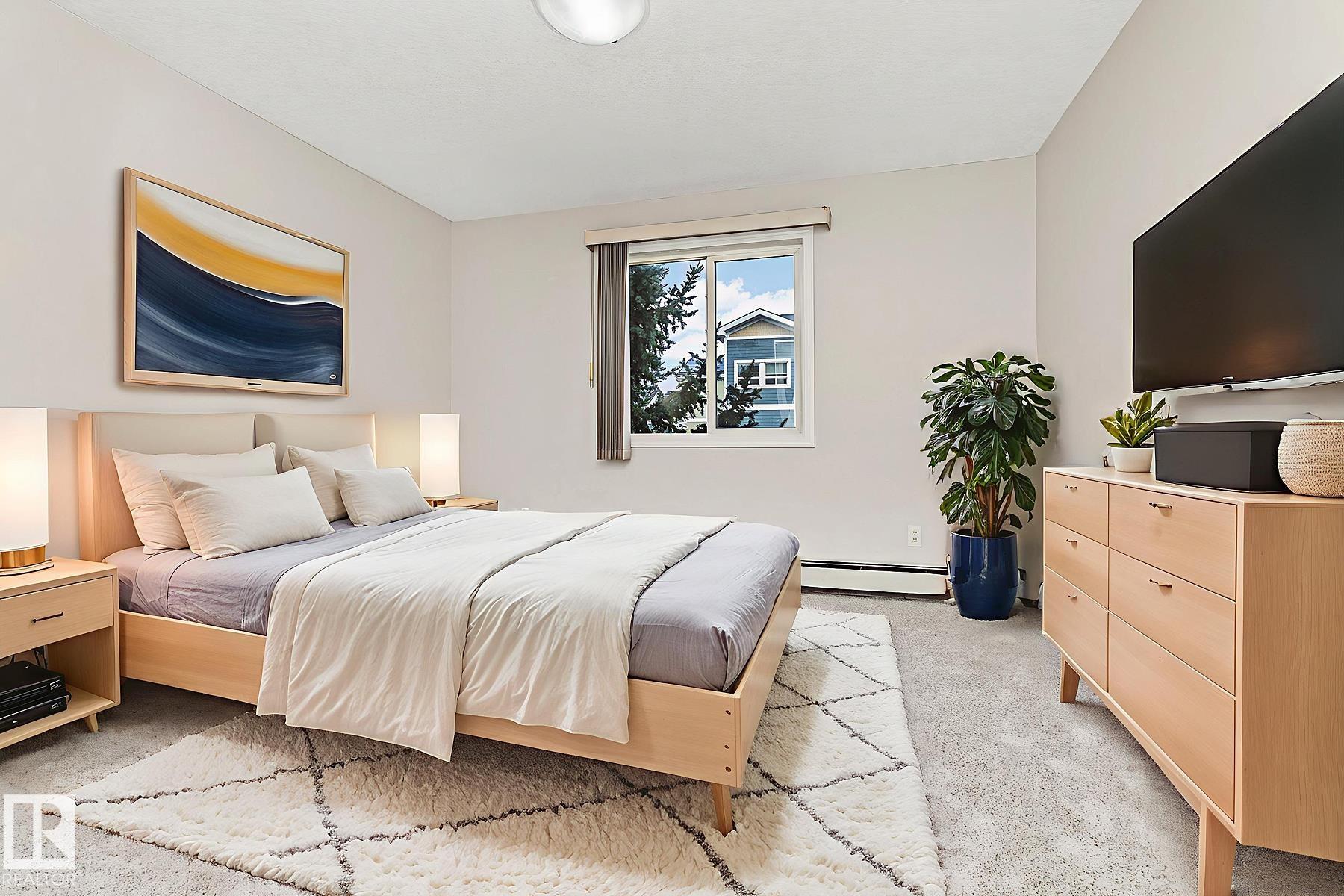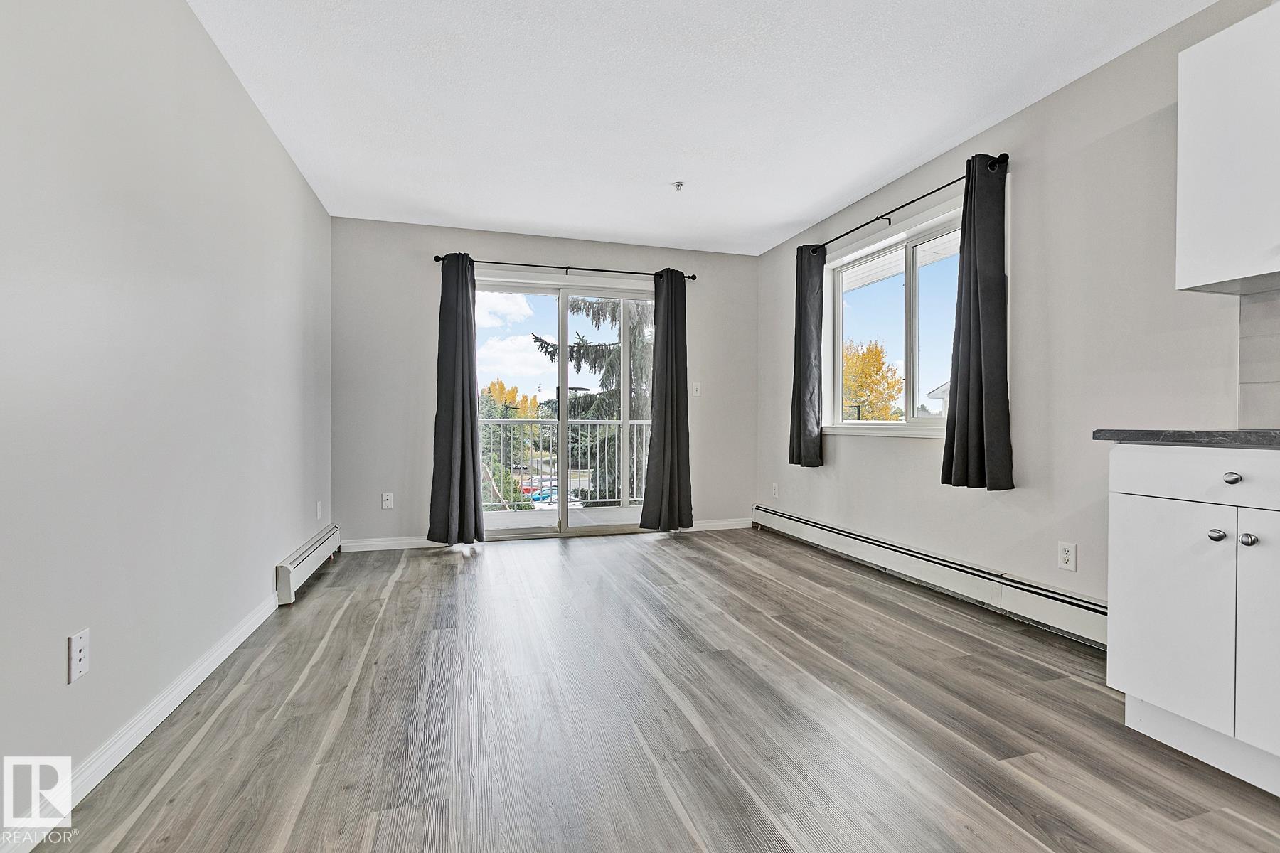REFRESHED 2 bedroom, 2 bath, CORNER UNIT with 2 PARKING STALLS in North West Edmonton! 3rd floor condo in Stoneridge. FRESH paint, LUXURY vinyl plank floors, NEW broadloom in the bedrooms, MODERN back splash tile and more! The floor plan is so FUNCTIONAL, with PRIVACY built-in; it has the bedrooms separated by the living area, perfect for a home office or room mate. Do your LAUNDRY, "in suite," so convenient and found in the large 4 piece bathroom. Entertain in the BRIGHT living room, it gives access to the large, COVERED, rare, WRAP AROUND BALCONY, an amazing place to enjoy morning coffee or to have an evening chat; the placement of this unit is ideal for the view and is one of the QUIETEST in the complex. Cook in the REFURBISHED kitchen, it has CONTRASTING black appliances, new counter tops, and modern back splash tile to enhance your culinary experience. Two out door stalls included, TURN KEY condition, see it you'll LOVE this place!