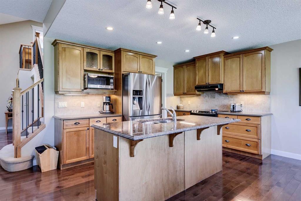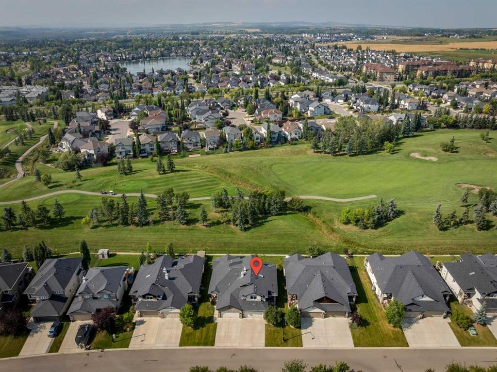 Phenomenal villa backing onto Crystal Ridge Golf Course with stunning west views. Immaculately maintained and thoughtfully designed, this home offers a rare combination of privacy, natural light, and function. Its unique position is set well back from the fairway, meaning you’ll enjoy tranquil golf course views without worrying about golf balls in your yard. Step outside to a covered west-facing deck, where you can relax in the shade while soaking in beautiful evening skies and sweeping vistas. Inside, the main level features hardwood floors, expansive windows, and an open layout oriented toward the golf course. The dining room could easily double as a home office, while the spacious living area connects seamlessly to the well-appointed kitchen, finished with warm maple cabinetry, granite counters, stainless steel appliances, and a walk-through pantry. A large mudroom provides everyday convenience, and the double attached garage easily accommodates two vehicles. Upstairs, the primary retreat offers comfort and style with a private ensuite. A versatile second bedroom/bonus room showcases breathtaking mountain views, ideal as a guest space, office, or additional lounge. The fully finished basement feels bright and airy with high ceilings, big windows, and in-floor heating. Here you’ll find a third bedroom, a full bathroom, and a generous family/rec room that can adapt to any lifestyle. This villa truly blends comfort, function, and location. With exceptional views, a low-maintenance lifestyle (snow removal and lawn care done for you), access to Crystal shores lake (swimming in the summer or skating in the winter), and proximity to both the golf course and Okotoks amenities, it’s a one-of-a-kind opportunity.