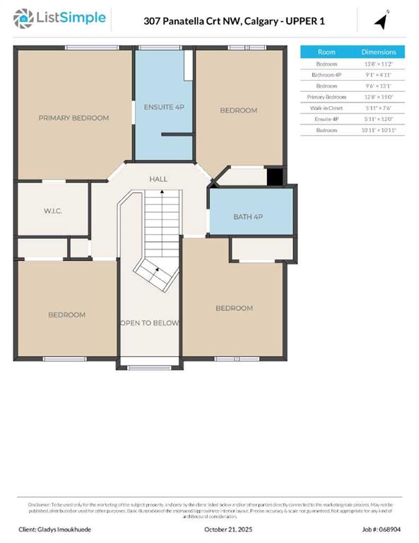 | Bedroom - Primary | 12`8" x 15`0" | Upper |