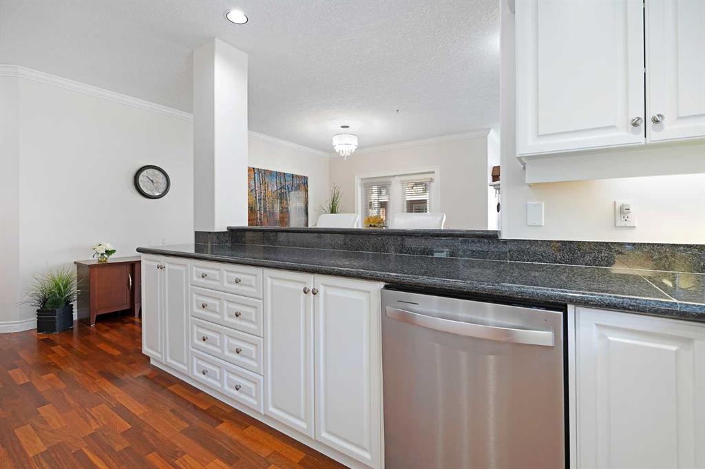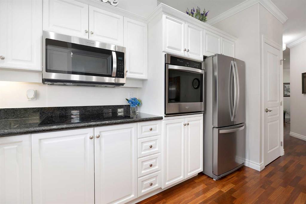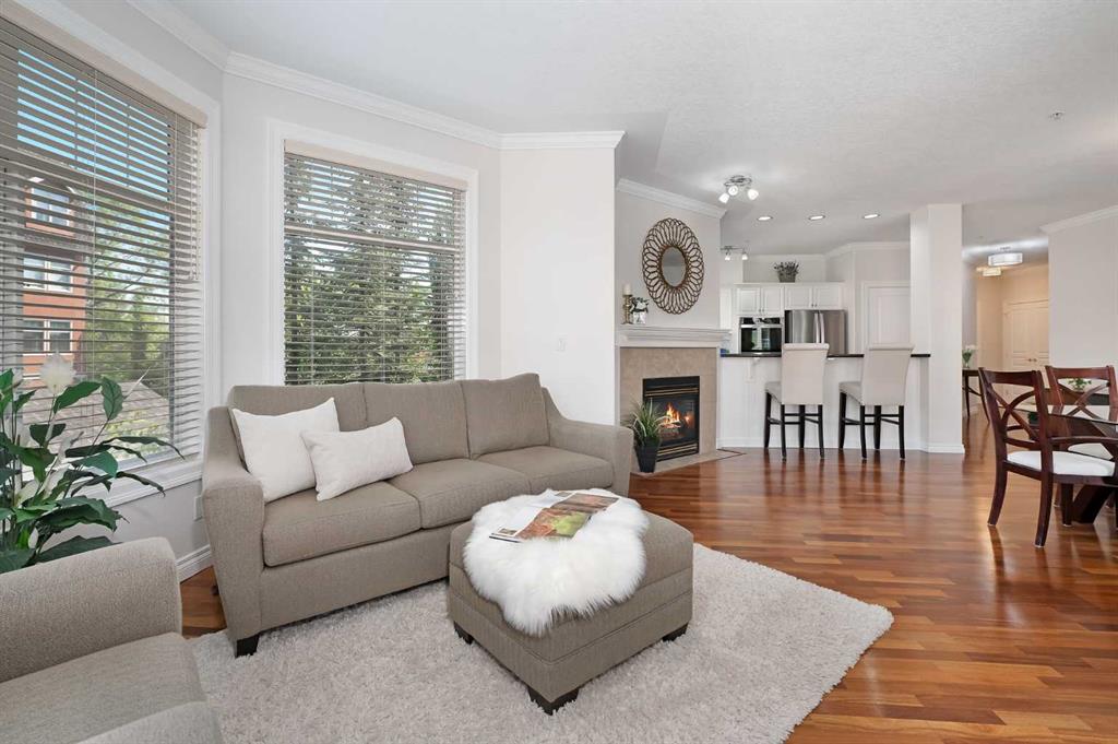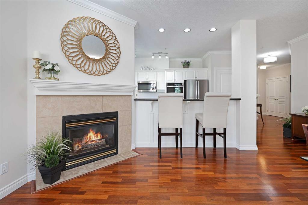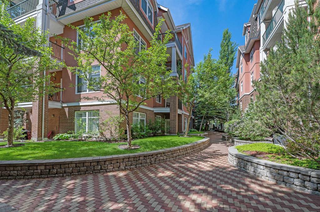 Immaculate residence offering comfort, and modern updates throughout. Nine foot internal ceilings, hardwood floors, new bedroom carpet and abundant natural light from twelve windows, including one above the kitchen sink. The gourmet kitchen features granite counters, stainless steel appliances, a large walk-in pantry, ample kitchen cupboard storage. Patio doors leading out to deck from dining room overlooking the internal courtyard with gas BBQ connection. The bright living room is surrounded by windows, and a gas fireplace is open to both the dining and living spaces. The floor plan incorporates a large space suitable for an office or TV room. There is a very large in-suite storage room off the main entrance room which doubles up as a boot room. The large primary retreat comfortably fits a king bed and offers a private balcony overlooking the courtyard, a spacious California built-in walk-through closet, and a five-piece ensuite. The second bedroom comfortably fits a queen bed and also features a California built-in walk-through closet and has direct access to the main bath, which serves both the bedroom and guests. A very large entry with a double closet, a separate laundry room, and central vacuum with attachments complete the layout. Pets are welcome (dogs must not exceed 30 lbs at full adult size) and air conditioning can be installed, both with board approval. Underground heated parking, an underground secure storage locker, bike storage for just $10 per year (subject to availability), and 35 underground visitor stalls. Additional building amenities include a billiards room, library, and meeting rooms. West-facing orientation, abundant natural light, and exceptional amenities. This residence is ideally situated in Erlton, one of Calgary’s most walkable inner-city communities. Enjoy easy access to 4th Street’s shops and restaurants, the Erlton Stampede C-Train station and the BMO center and all its activities, and the MNP (Repsol) Recreation Centre with pools and fitness facilities.