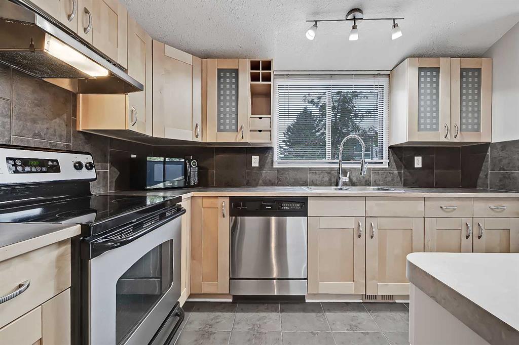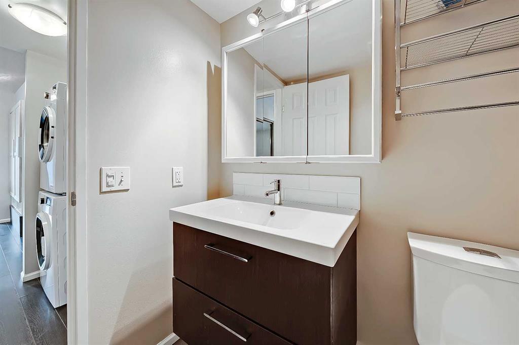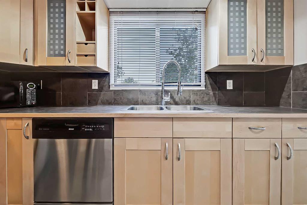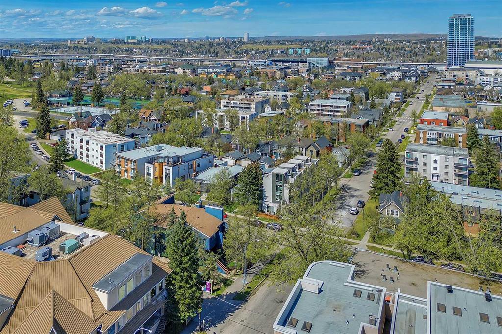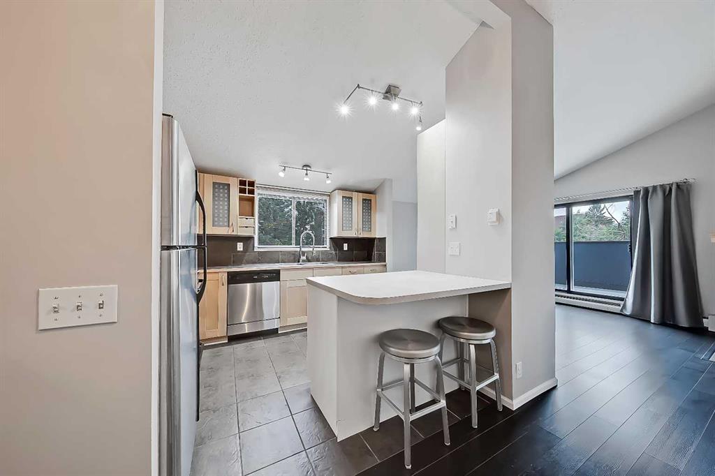 RENOVATED TOP FLOOR SUNALTA CONDO | VAULTED CEILING | HUGE BALCONY | WALK TO AMENITIES & LRT! Set in a quaint pocket of Sunalta, this updated top floor, end unit condo delivers the kind of character, comfort and convenience that make inner-city living so appealing. The vaulted ceiling and unique floor plan give the home a sense of openness that feels larger than expected, while thoughtful improvements, a huge private balcony and excellent in-suite storage add to the everyday livability. With the Sunalta LRT station just a short walk away, and downtown, 17th Avenue, local parks and neighbourhood services all easily accessible, this home offers a connected lifestyle in a setting that still feels calm, comfortable and easy to enjoy. The unit itself is bright, functional and thoughtfully designed, with a layout that makes excellent use of the square footage. The kitchen is a real highlight, offering a larger footprint than many comparable condos, along with generous cabinet storage, smart organization, ample prep space and a raised eating bar that adds flexibility for quick meals or conversation while cooking. The living room is spacious and inviting, with large patio doors bringing in natural light and opening directly onto the oversized balcony with downtown skyline views, creating a wonderful place to enjoy morning coffee or warm summer nights. The generously sized bedroom includes a large closet and is adjacent to the tastefully renovated 4-piece bathroom, while the full-size in-suite washer and dryer add practical function and day-to-day ease. One of the most unique features of this property is the loft-style in-suite storage area, which is not included in the registered square footage and provides valuable extra room for seasonal items, luggage, outdoor gear or anything you want tucked away but still close at hand. Energized parking is another welcome feature, especially through the winter months. The combination of modern finishes, in-suite laundry, impressive outdoor space and smart storage makes this home especially functional for inner-city condo living. The neighbourhood is loved for its central location, established character and easy access to some of Calgary’s best urban amenities. From here, you can walk to the Sunalta LRT station, connect quickly to downtown or head toward 17th Avenue for dining, coffee, shopping, fitness studios and everyday conveniences. Royal Sunalta Park and the Calgary Tennis Club are just a block away, and numerous off-leash parks are also within easy walking distance. Whether you are a first-time buyer, downsizer or investor looking for a beautifully maintained and easy-to-enjoy property, this home offers a low-maintenance lifestyle in one of Calgary’s premier inner-city communities. Welcome Home.