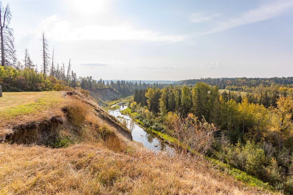 Sitting on 5.54 acres overlooking the Blindman River, this log-style 1.5 storey home offers character, charm, and panoramic valley views. The main floor features a bright living room with a wood stove, large south-facing windows, and access to the full wrap-around deck. The kitchen provides oak cabinets, laminate counters, a walk-in pantry, and a cozy dining space. Two spacious bedrooms, a 3-piece bathroom with a full tub, and main floor laundry complete this level. Upstairs you’ll find a loft-style bedroom with brand new carpet, dual closets, a 3-piece ensuite, and incredible views through the oversized windows. The partly developed basement is framed and comes with materials on hand to continue the work. The foundation is ICF block, and the home is equipped with underfloor heat, a high-efficient furnace, and hot water tank. Outside, the property offers flat, usable land with treed areas, a pathway to a separate flat site that could be ideal for RV Storage, a camping area or future shop, and a large shop with mezzanine and radiant heat (ready for some attention). Recent upgrades include a new septic field and a newer pressure tank. Located in the friendly Burbank community of Lacombe County, this acreage is just minutes to Blackfalds and 10 minutes to Red Deer—an opportunity for quiet country living with town convenience close by.