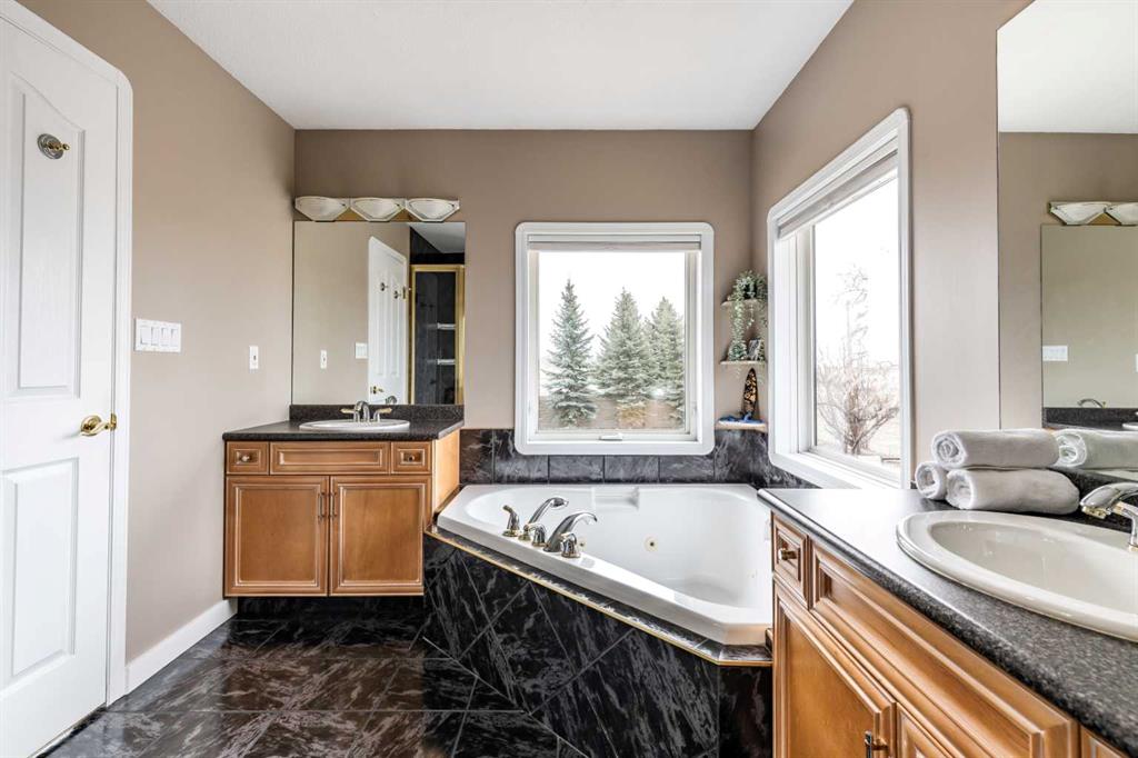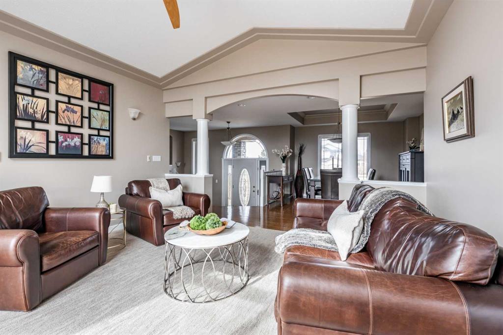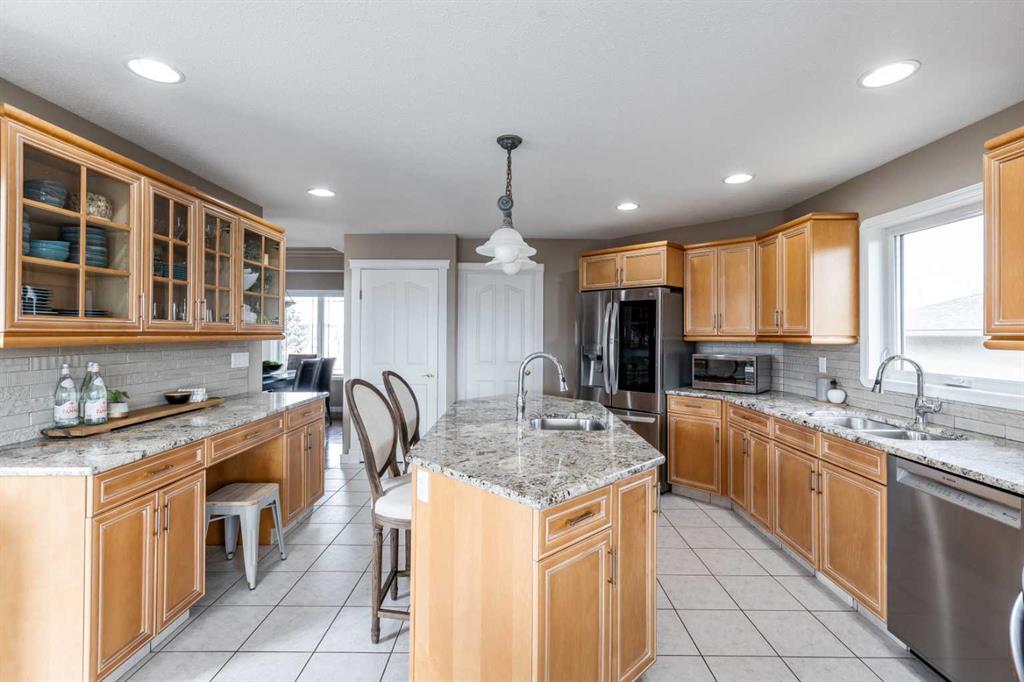 Discover everything Cottonwood has to offer in this beautifully designed home, perfectly suited for family living and entertaining alike. From the spacious entry and bright, welcoming living room filled with natural light, to the well-appointed kitchen featuring solid wood cabinetry, a large island with prep sink, gorgeous granite countertops with neutral and beautiful backsplash, every space feels both functional and inviting. The main floor enjoys 2 spacious bedrooms including a beautiful primary suite with everything you need. The lower level enjoys an exceptionally large family room, complete with additional natural gas fireplace, creates a warm and comfortable place to gather, roughed in for a wet bar to really make your entertaining dreams come true, storage, lovely full bath and two large bedrooms, perfect for kids or guests. Step outside into the large and very private yard; enjoy the covered deck, patio, hot tub, or tend to your garden, this yard is ideal for hosting friends and family or simply unwinding at the end of the day. Set on nearly half an acre, this 20,291 sq. ft. lot offers backyard street access leading toward the nearby Cottonwood Golf Course, along with a sturdy privacy fence and mature landscaping that includes lawn, shrubs and gorgeous blue spruce trees which attract birds and provide privacy year round. With two driveways, a oversized dbl attached heated garage, there is parking for more than eight vehicles plus an RV, there is no shortage of space here. There is plenty of room in the back yard to build that shop you've always wanted! All of this, just minutes from walking, biking trails, and golf all in one of the area’s most desirable neighbourhoods. This is a property that truly offers space, comfort, and lifestyle all in one!!