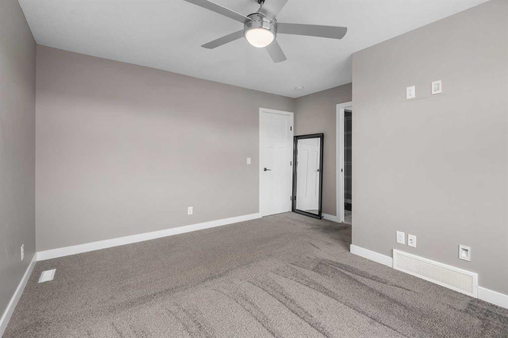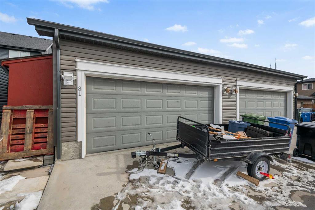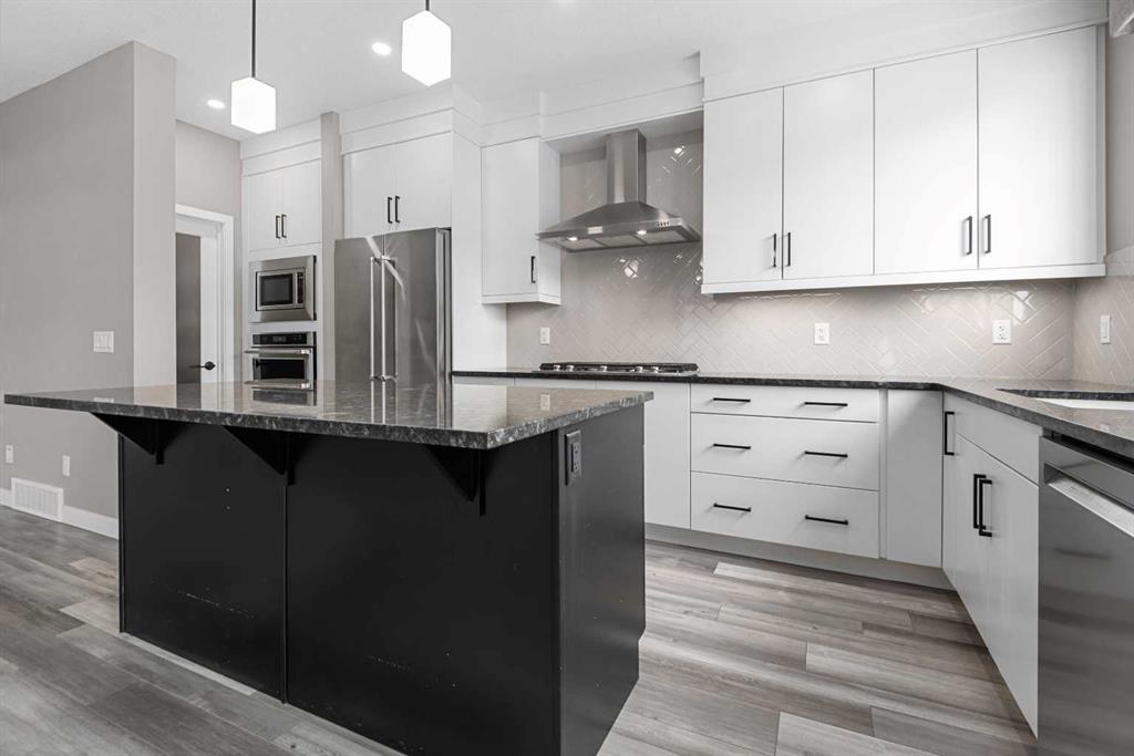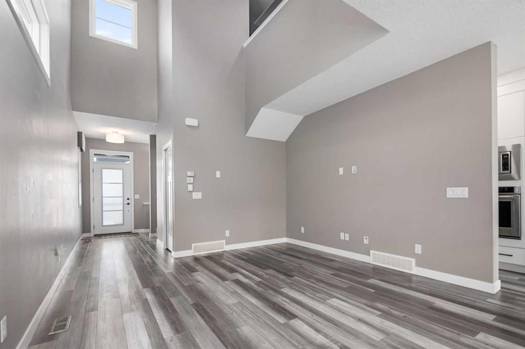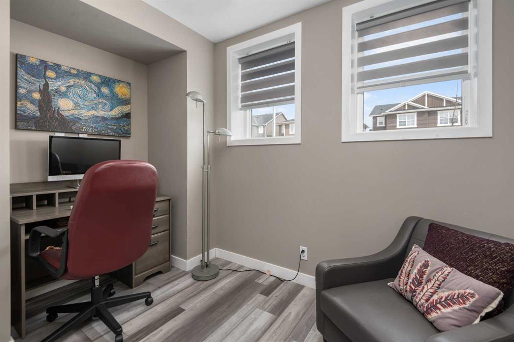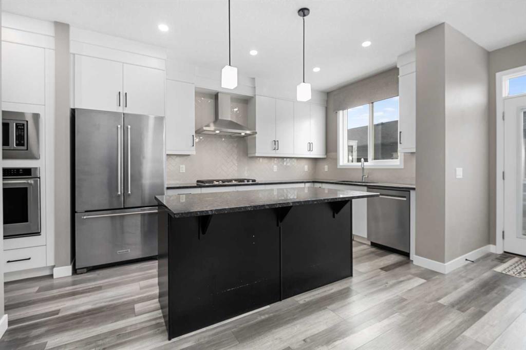 Welcome to this beautifully upgraded home in the desirable community of Evanston, offering the perfect blend of style, functionality, and low-maintenance living. Ideal for young professionals or those working from home, this property features two spacious bedrooms, a dedicated office, and a fully finished basement designed for both productivity and entertaining. The bright main level is filled with natural light thanks to large windows and a lofted ceiling, and includes a built-in HEOS sound system with ceiling speakers. The modern kitchen is designed for everyday living and entertaining, showcasing granite countertops, an impressive 8’ x 4’ island, ceiling height cabinetry, gas stove, and a stylish herringbone tile backsplash. Upstairs you’ll find the primary bedroom, convenient upper level laundry, and a dedicated office with large windows, creating a comfortable work from home space. Bathrooms feature quartz countertops and tiled flooring for a clean, modern finish. The fully finished basement with partially lofted ceiling provides spacious effect and adds excellent additional living space. Generous with extra large windows (can accommodate adding another bedroom or in-law suite), ceiling speakers, and an impressive 9 ft bar with sink, bar fridge, and cabinetry. It's perfect for hosting or relaxing. Energy efficient upgrades include 12 new solar panels (Oct 2025) with a new ECU and rodent guard, along with a new EV charger in the insulated and drywalled garage. A beautiful curb appeal front yard with an established low maintenance showy garden including ornamental bushes and Swedish Aspen Columnar trees. The backyard equipped with a deck, greenhouse, berry bushes, resin shed, wood shed, and rain barrels to enjoy. Located close to parks, pathways, schools, and everyday amenities, this home offers modern comfort and an easy lifestyle in one of NW Calgary’s most popular communities.