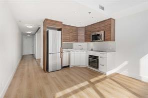 ***Welcome to "LIDO" By BATTISTELLA*** Experience urban living at its finest in this beautiful designed one -bedroom condo, ideally located within walking distance to Kensington's boutique shops, trendy restaurants, coffee spots, and grocery stores. This thoughtfully laid-out unit features a spacious bedroom with an interior window and sliding frosted glass doors, offering both light and privacy. The kitchen showcases modern cabinetry, sleek quartz countertops and high-end Electrolux stainless steel appliances, complemented by imported European vinyl plank flooring and 9-ft ceiling flood the space with natural light, while central A/C(building unit)ensures year-round comfort. Enjoy added convenience with an in-suite laundry room, a deep entry-way closet with built-in shelving, and an assigned secure storage locker with bike storage. Step out onto your private balcony-perfect for relaxing or entertaining-with a BBQ gas line already in place. Plus, take full advantage of the incredible rooftop deck with a centre gas fireplace ,offering sweeping downtown views. An exceptional opportunity for first time buyers, professionals or investors looking to enjoy the vibrancy of inner city living!