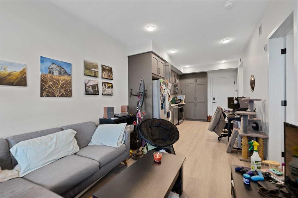 Discover a fantastic opportunity to own or invest in this 1-bedroom, 1-bathroom condo located at Argyle in the heart of the University District. Just an 8-minute walk to the University of Calgary, this home offers unbeatable convenience and lifestyle appeal. The unit features 9’ ceilings, luxury vinyl plank flooring, quartz countertops, and contemporary shaker-style cabinetry with soft-close drawers. Additional highlights include a generous laundry room, roller window shades, modern LED lighting, and air-conditioning rough-in. Step onto the large balcony equipped with a gas line for BBQs, ideal for entertaining, along with a separate storage locker. Residents enjoy premium building amenities such as a fitness center, owners’ lounge, meeting room, outdoor terrace, and community garden. Located steps from Retail Main Street, Central Commons Park, and over 30 shops and restaurants, including Village Ice Cream, Shoppers Drug Mart, OEB, Cineplex, and Save-On-Foods. With close proximity to Foothills Hospital, Alberta Children’s Hospital, Market Mall, Downtown, and the University, this is a rare opportunity in a vibrant and growing community.