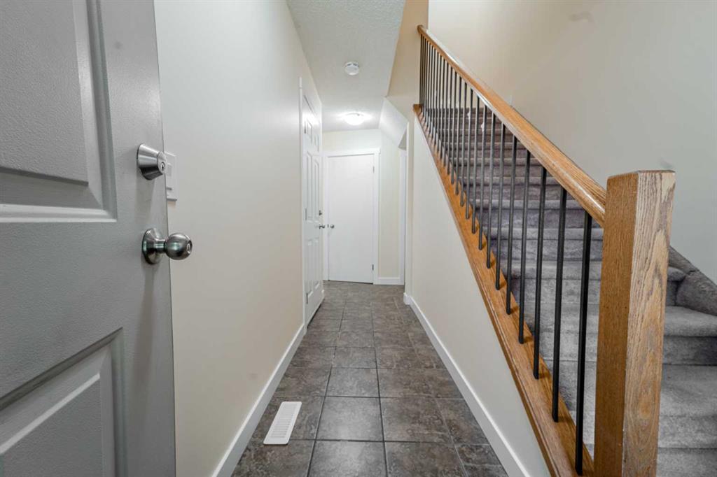 Discover Newport Landing – a vibrant, well-maintained community with LOW CONDO FEES and an UNBEATABLE LOCATION. This freshly painted townhouse showcases a BRAND-NEW STAINLESS STEEL FRIDGE, SMOOTH-TOP STOVE, ELEGANT DARK HARDWOOD FLOORS, CERAMIC TILE ENTRY, and ABUNDANT NATURAL LIGHT from large windows on both levels. The OPEN-CONCEPT MAIN FLOOR offers a welcoming living room with GAS FIREPLACE, patio doors to a PRIVATE OUTDOOR SPACE, a functional kitchen with BREAKFAST BAR, and a handy HALF BATH. Upstairs, the PRIMARY SUITE is located on the opposite side from the other two bedrooms for ENHANCED PRIVACY—perfect for guests, a growing family, or a home office. A WALK-IN CLOSET and a FULL 4-PIECE BATH complete the upper level. The UNFINISHED BASEMENT offers great potential for future development, while PRIVATE PARKING and a LOW-MAINTENANCE LIFESTYLE make day-to-day living easy. Conveniently close to: COUNTRY HILLS VILLAGE LAKE, CARDEL PLACE, VIVO RECREATION CENTRE, LANDMARK CINEMAS, Parks, playgrounds, golf, walking paths, SOBEYS, CANADIAN TIRE, HOME DEPOT, REAL CANADIAN SUPERSTORE, medical clinics, YYC AIRPORT, and a variety of restaurants offering GLOBAL CUISINES.
