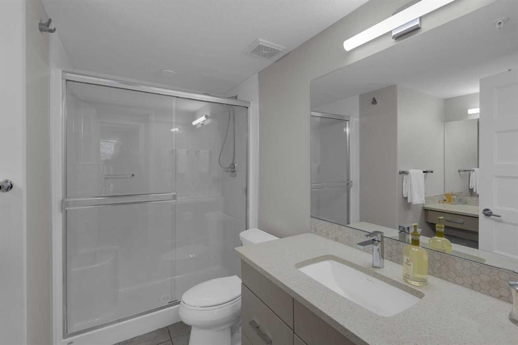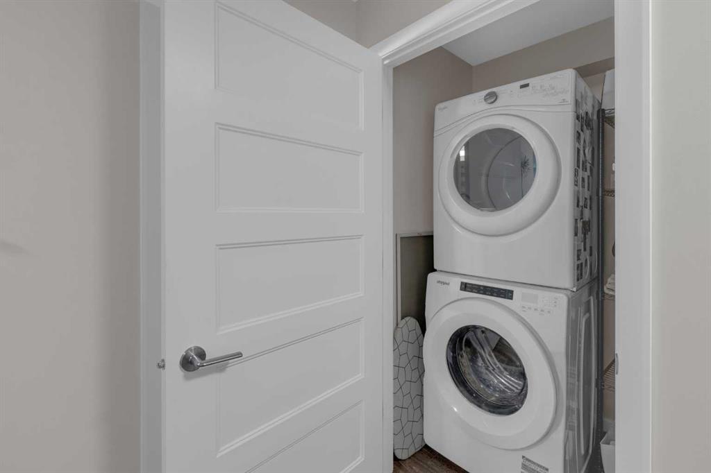 Welcome to The Pinnacle at Kincora — a boutique, meticulously crafted condo complex by Cove Properties, one of Calgary’s most trusted and award-winning multifamily developers celebrated for their commitment to quality and design excellence. Tucked away in one of Kincora’s most peaceful pockets, this elegant 2-bedroom plus den (or office), 2-bath residence offers the perfect blend of comfort, style, and functionality — all within walking distance to scenic parks, pathways, and convenient shopping. Boasting 1,156 sq. ft. of single-level living, this spacious and beautifully upgraded home features quartz countertops, designer tile, LVP flooring, and elegant fixtures and finishes throughout. The high-end KitchenAid stainless-steel appliances remain under extended warranty and are complemented by a chef-style hood fan and a bright, modern aesthetic highlighted by brand-new upgraded lighting from Cartwright ($2500). Enjoy year-round comfort with a portable A/C unit, and unwind in style with new custom shutters and drapes ($10,000) framing every window for added privacy and sophistication. Unlike many condos, this home includes two titled underground heated parking stalls ($25,000 each) plus bike storage, offering convenience and flexibility for owners. Step outside to your private covered patio with a gate to walk outside ($800)— the perfect spot to relax after a long day and enjoy your own quiet outdoor retreat with a gas line for your bar-b-q. Unit 3109, a former show suite until just three years ago, has been meticulously maintained and lightly lived in. It showcases painted warm beige cabinetry and a bright, inviting atmosphere throughout. Situated in a secure, maintenance-free, 18+ building, The Pinnacle at Kincora delivers a rare combination of luxury, peace of mind, and effortless living. Pets are allowed upon board approval. Don’t miss your opportunity to make this remarkable home yours — contact your Realtor today to book a private viewing!