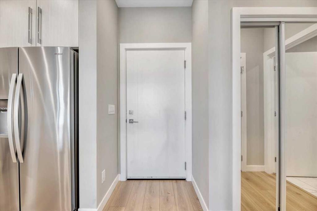 Experience life at The Maple nestled in the heart of amenity-rich University District offering independent living in a vibrant 55+ community where pets are welcome. This two-bedroom, two-bathroom residence showcases thoughtful design and elegant finishes throughout. Enjoy bright natural light streaming through windows and 9-foot ceilings, highlighting the open-concept layout and beautiful vinyl plank flooring. The kitchen is a chef’s delight, featuring quartz countertops, full-height custom cabinetry, and a stainless steel appliance package. Step out onto your sunny courtyard-view balcony — the ideal place to relax. The primary suite offers a walk-through closet & a luxurious ensuite, while the second true bedroom sits next to a stylish three-piece bath. Thoughtfully designed for aging in place, this home features wider doorways, barrier-free bathrooms, a built-in sprinkler system, smoke and heat detectors, and smart in-suite technology for convenience and peace of mind. Enjoy underground titled parking, visitor parking, bike storage, and recycling facilities, along with exclusive access to the adjoining Brenda Strafford Centre. Amenities include a fitness centre, hair salon, bistro, and a range of social activities, plus the unique benefit of fast-tracked access to the Brenda Strafford senior living facility should future needs arise. Designed for walkability and community connection, University District combines residential comfort, urban convenience, and park-side living in one inspiring neighbourhood.