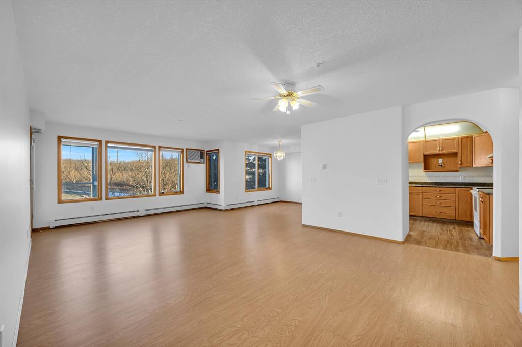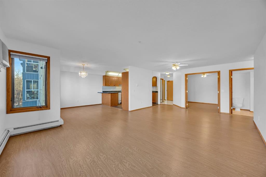 Welcome to Unit 311 at the Sierras of Richmond Hill, a well-maintained 55+ adult living community in Calgary’s southwest. This spacious 2 bedroom, 2 bathroom condo offers 1,183.73 sq ft of thoughtfully designed living space with hardwood flooring throughout the main living areas. The open living and dining areas are bright and inviting, offering plenty of room for everyday living or entertaining, with access to a private balcony with additional storage. The kitchen connects seamlessly to the main living space, while bedroom one provides excellent flexibility as a bedroom, office, or den. The main bathroom is a 3-piece, and the primary bedroom features a walk-in closet and a 4-piece ensuite. Additional highlights include in-suite laundry, wall-mounted air conditioning, ample in-unit storage, one titled underground parking stall, and a separate storage locker. Condo fees include electricity, heat, water, sewer, recycling, trash removal, and all common area maintenance, offering excellent value and predictable monthly costs. Residents of the Sierras of Richmond Hill enjoy a vibrant, community-focused lifestyle with outstanding amenities, including a fitness centre, large social/party room with kitchen, games room, craft room, workshop, coffee room, library, post office, car wash bay, and four guest suites available for visiting family and friends. Ideally located close to shopping, dining, and services at Westhills Shopping Centre and Signal Hill Centre, with easy access to Stoney Trail and transit. A fantastic opportunity for comfortable, low-maintenance living in a welcoming and well-established adult community. Call to book your private showing today!