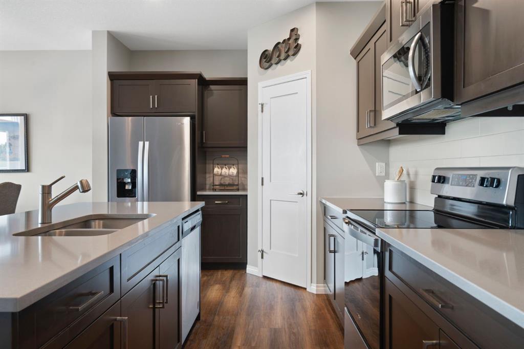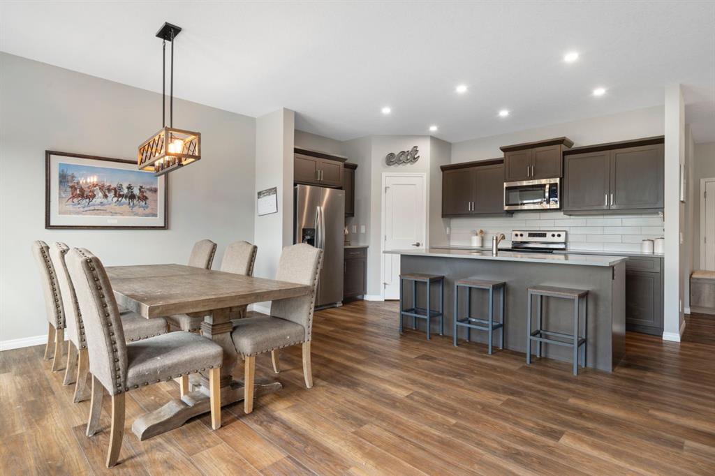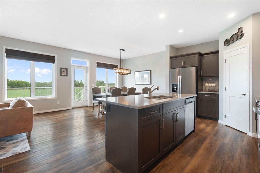Welcome to 311 Monterey Place SE in beautiful High River, Alberta, where the pace is slower, the skies are wider, and the backyard views are downright dreamy. This warm and welcoming 2-storey home offers nearly 3,000 square feet of thoughtfully developed living space. Step inside and you’re greeted by a spacious, open-concept main floor featuring a modern kitchen with quartz counters, loads of counter space, and a walk-in pantry to keep everything tucked away. The dining area flows beautifully into the living room, where a cozy gas fireplace sets the tone for family nights or lazy Sundays. Just around the corner, but cleverly tucked away for privacy, is a main floor office, perfect for those who work from home or need a quiet retreat. Upstairs, you'll find three generously sized bedrooms, a bright bonus room, and a thoughtfully designed full bathroom with a double vanity (so yes, no more morning sink battles). The primary suite is your peaceful getaway, complete with beautiful ensuite with a soaker tub and walk-in closet. A dedicated laundry room upstairs, which if you've got a family, you know how important a full room for laundry is! The sunshine basement is fully finished and fabulously functional with a fourth bedroom, full bathroom, rec room, and a stylish wet bar area. Large basement windows bring in tons of light, making it feel like anything but a basement. This basement could be turned into a walkout by installing a door where the windows are near the wet bar! Outside, the west-facing pie-shaped backyard backs onto open farmland leased by a local farmer, giving you peaceful prairie views and the kind of backyard most people only dream of. The home also features A/C to keep you cool in the summer and warm in the winter, plus gorgeous trim lighting that adds a little sparkle year-round. And for those who like their winters toasty, the double attached garage is already equipped with a heater, because stepping into a warm car on a cold Alberta morning? That’s living the dream. This is the kind of home that just feels good, inside and out. Come take a look and see why life is better in High River.