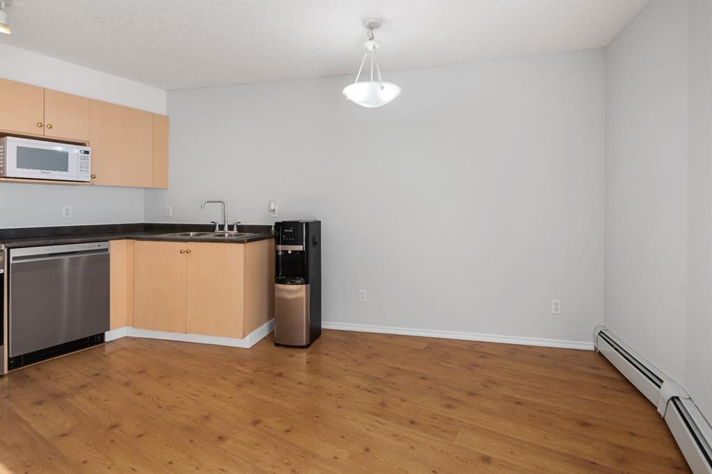 Perfect for First-Time Buyers, Retirees, and Investors! This well-laid-out apartment is conveniently located near the entry door and features an open, functional floor plan. Laminate flooring throughout gives the space a warm and inviting feel. The kitchen offers natural maple-style cabinetry, black countertops, and stainless steel appliances, including a brand-new refrigerator and newer dishwasher. The unit has also been freshly painted, making it truly move-in ready.A versatile flex room provides the ideal space for a home office and can easily be converted into a second bedroom if desired. Enjoy a bright, sunny interior thanks to the desirable south exposure, along with the added convenience of in-suite laundry.Step outside to your private patio with pleasant rear views and enjoy the morning sun.Great location: Only 15 minutes to downtown, Close to East Hills Shopping Centre (Costco, Walmart, Cineplex, major banks, and restaurants) , Minutes from beautiful Elliston Park (home of GlobalFest fireworks), Easy north/south access via Stoney Trail; Additional highlights:Small pets allowed with board approval, All utilities included in condo fee, Move-in ready condition. Don’t miss out—book your showing today!