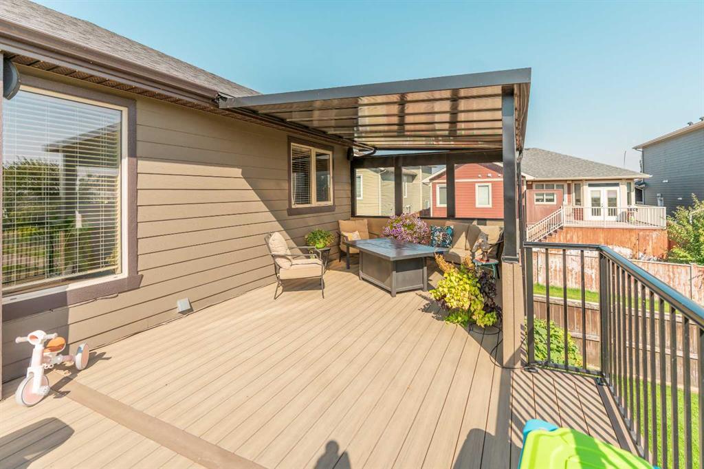 This beautifully designed 1,665 sq. ft. bi-level offers 5 bedrooms, 3 bathrooms, and a layout that is perfectly suited for family living. Step inside and you’ll be greeted by soaring vaulted ceilings and an open-concept main floor filled with natural light, thanks to large windows that frame the space. The inviting gas fireplace adds warmth and character, making it the heart of the home where everyone can gather. The main floor is thoughtfully designed with a modern kitchen featuring granite countertops, a bright dining space, and a comfortable living room—all flowing seamlessly together for easy family living and entertaining. You’ll also find two bedrooms, a full bathroom, and convenient main floor laundry on this level. The primary retreat is privately tucked away on the upper level, offering a spacious bedroom, a walk-in closet, and a spa-inspired 5-piece en-suite with dual sinks, a soaker tub, and a separate shower. The fully finished basement expands the living space with tall ceilings, large windows, and a generous rec room that’s ideal for movie nights, watching the game, or a kids’ play area. Two additional bedrooms, another full bathroom, and plenty of storage complete the lower level. Step outside to your private backyard oasis, featuring a large deck recently resurfaced with vinyl and upgraded with a weather enclosure, overlooking a landscaped, fenced yard with underground sprinklers that backs directly onto a green space—perfect for family BBQs, playtime, and relaxing outdoors. For added convenience, this home includes a double attached garage, a large driveway with plenty of room to park an RV, and durable Hardi siding for low-maintenance curb appeal. Extra features like permanent 360° exterior lighting, central A/C, and hot water on demand make this home as functional as it is beautiful. Set in the family-friendly community of Cottonwood Estates, this home combines thoughtful design with a welcoming location close to schools, parks, and amenities—everything a growing family needs.