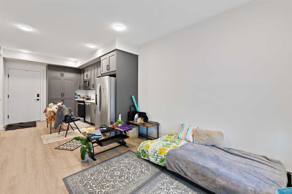 Discover a fantastic opportunity to own or invest in this 1-bedroom, 1-bathroom condo located at Argyle in the heart of the University District. Just an 8-minute walk to the University of Calgary, this home offers unbeatable convenience and lifestyle appeal. The unit features 9’ ceilings, luxury vinyl plank flooring, quartz countertops, and contemporary shaker-style cabinetry with soft-close drawers. Additional highlights include a generous laundry room, roller window shades, modern LED lighting, and air-conditioning rough-in. Step onto the large balcony equipped with a gas line for BBQs, ideal for entertaining, along with a separate storage locker. Residents enjoy premium building amenities such as a fitness center, owners’ lounge, meeting room, outdoor terrace, and community garden. Located steps from Retail Main Street, Central Commons Park, and over 30 shops and restaurants, including Village Ice Cream, Shoppers Drug Mart, OEB, Cineplex, and Save-On-Foods. With close proximity to Foothills Hospital, Alberta Children’s Hospital, Market Mall, Downtown, and the University, this is a rare opportunity in a vibrant and growing community.