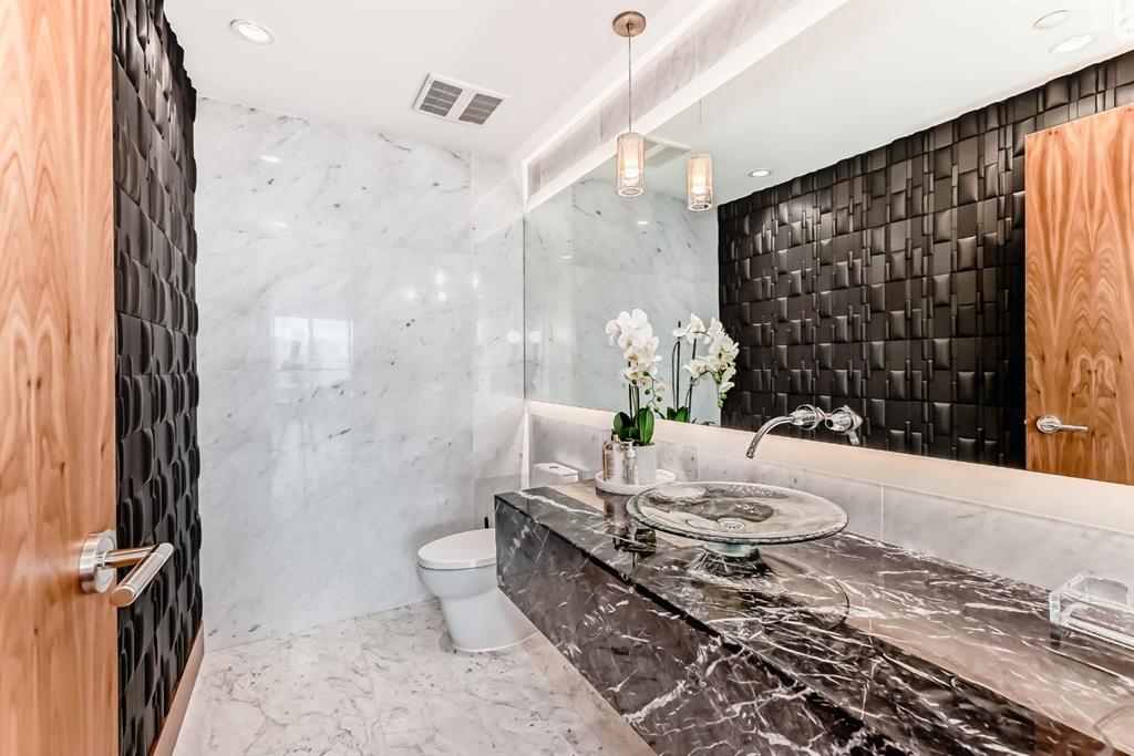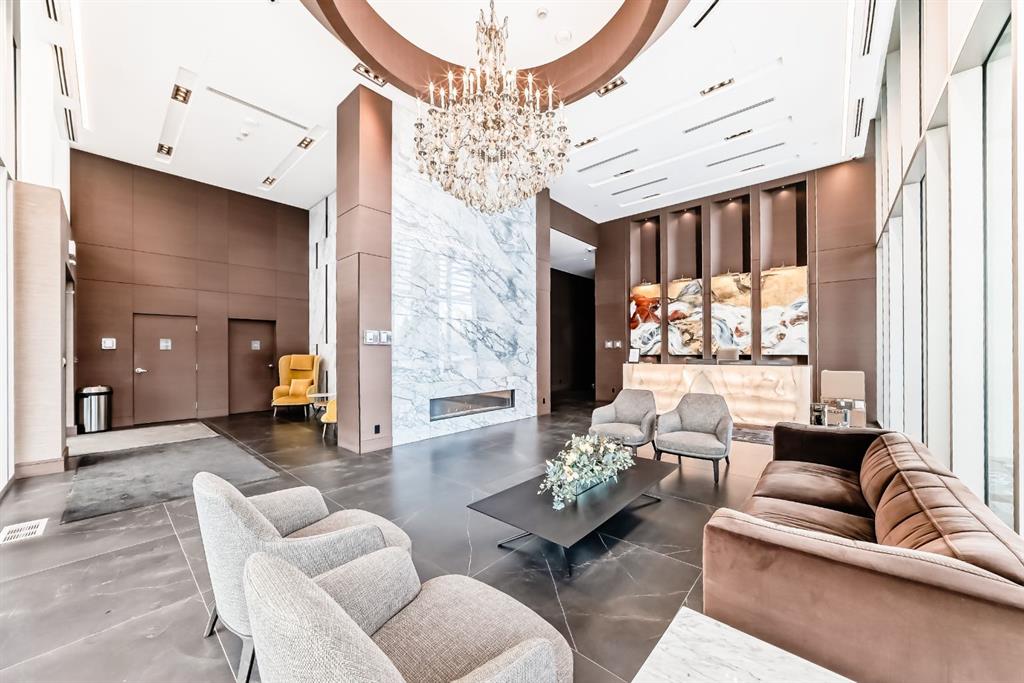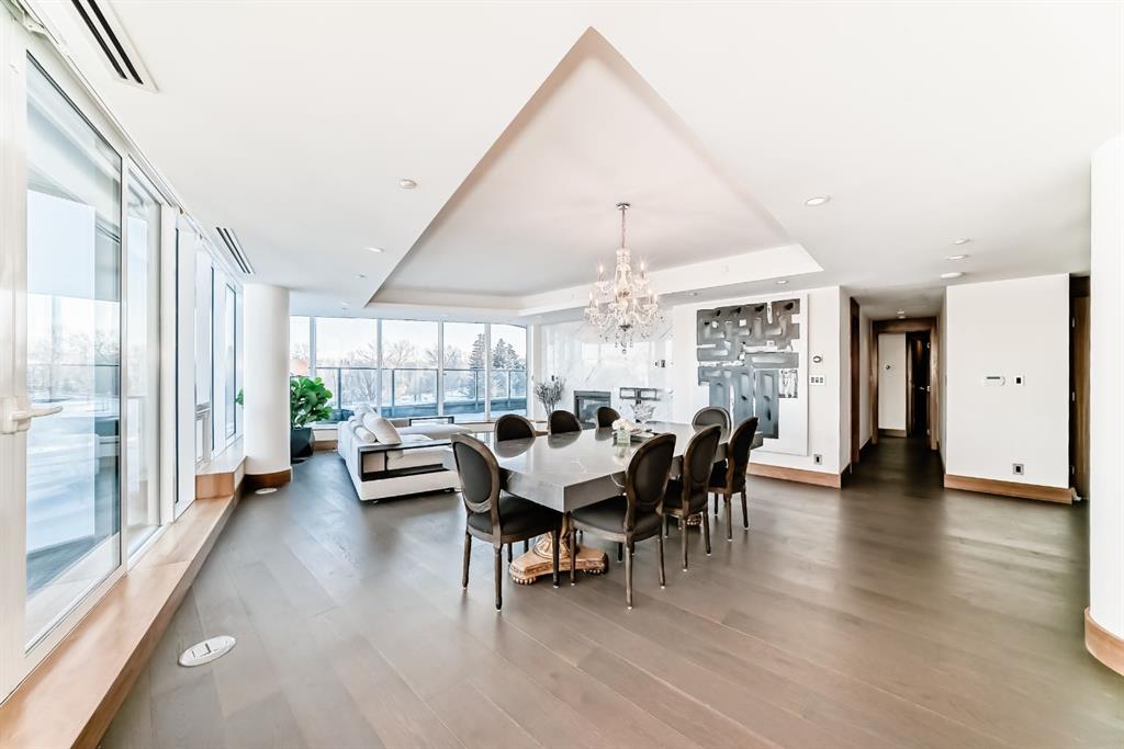 Experience elevated riverfront living in this exceptional original-owner residence at The Concord, ideally situated across from Calgary’s iconic Peace Bridge in prestigious Eau Claire. Offering nearly 2,000 sq. ft. of refined interior space with unobstructed NW and E river views through floor-to-ceiling windows, this luxurious suite features private elevator access to your exclusive foyer, an expansive open-concept layout, hardwood flooring, marble finishes, walnut accents, LED lighting, built-in speakers, heated bathroom floors, and full Control4 automation. The designer Poggenpohl kitchen is equipped with white stone countertops, a large island with seating for four, and premium Miele appliances including a gas cooktop, built-in refrigerator, and wine fridge, seamlessly connecting to the formal dining area and spacious living room with gas fireplace and access to two private balconies. The primary retreat offers balcony access, a custom walk-in closet, and a spa-inspired 5-piece ensuite with dual vanities, marble and glass shower, heated floors, and jetted soaker tub, while the second bedroom also features balcony access and a private 4-piece ensuite with heated flooring. Additional highlights include a separate laundry room, Level 2 EV charging, an oversized private garage, and one of the largest storage units in the building. Residents enjoy 24-hour concierge service, heated underground guest parking, car wash bay with undercarriage wash, fitness centre, elegant party room, and a beautifully landscaped patio with BBQ area overlooking a serene pond that transforms into a winter skating rink—an extraordinary opportunity to own in one of Calgary’s most prestigious addresses.