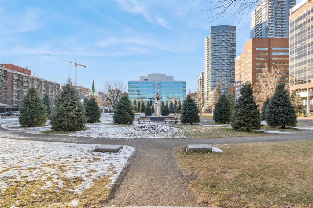 Welcome to Park 300 Palisades, an iconic concrete building perfectly positioned where urban convenience meets a postcard-worthy setting overlooking Haultain Park. This thoughtfully designed 1-bed, 1-bath suite lives larger than expected, featuring an open-concept living and dining area with space for a work-from-home setup, a functional galley kitchen, and a comfortably sized bedroom. ALL UTILITIES INCLUDED : water, electricity, heat, and more, are conveniently included in the low condo fee. The building is well-managed and impressively equipped: • Secure gated parking (assigned stall plus plentiful visitor parking) • Indoor saltwater pool, dry sauna, and newly renovated fitness centre with updated equipment • Modern laundry lounge, secure bike storage, and on-site property management. Step outside and you're 30 seconds to the park and tennis courts, 3 minutes to the CTrain, and less than 5 minutes to 17th Ave and Stephen Ave, home to Calgary’s best cafés, dining, boutiques, entertainment, and shopping. Walk or cycle to work, catch a Flames game at the future Event Centre, or simply unwind and enjoy the sparkling city skyline from your private perch. Whether you're a first-time buyer, down-sizer, or investor, this home offers turn-key Beltline living, and front-row access to every downtown destination.