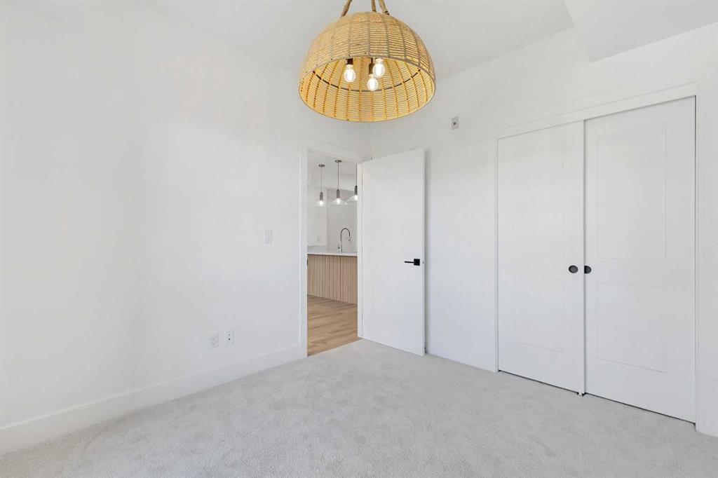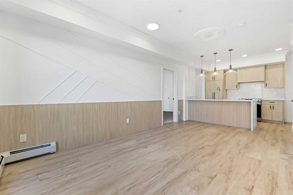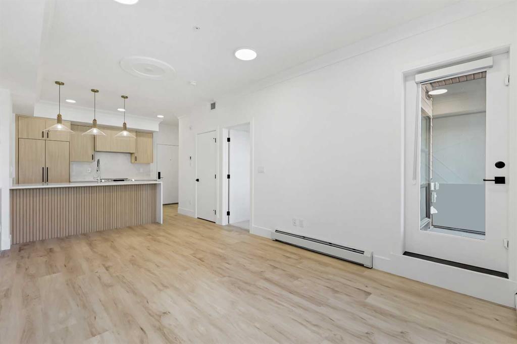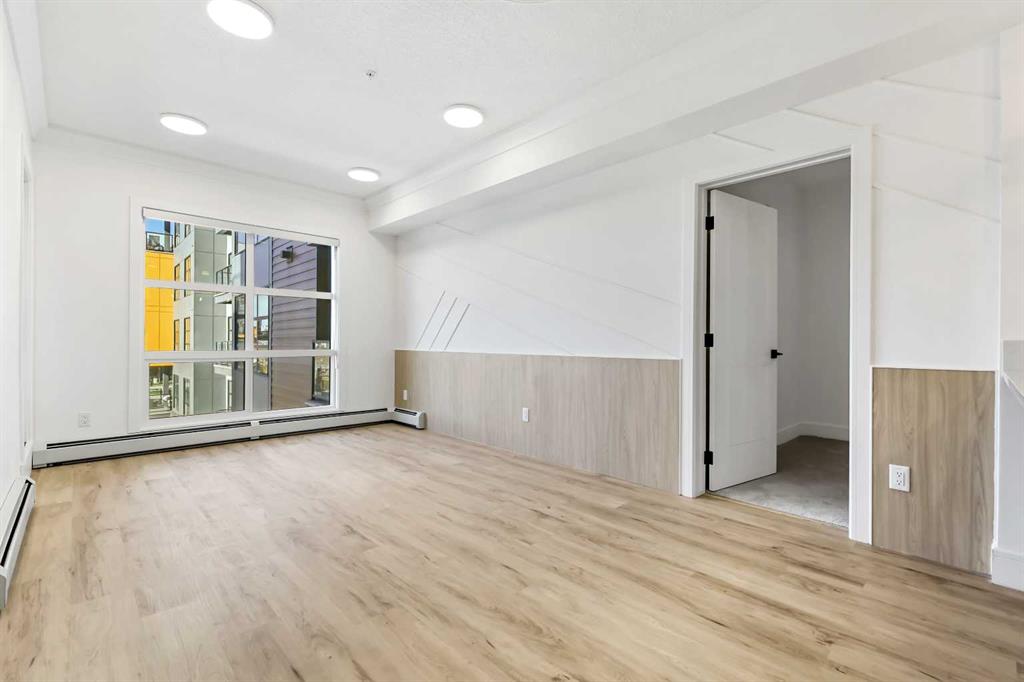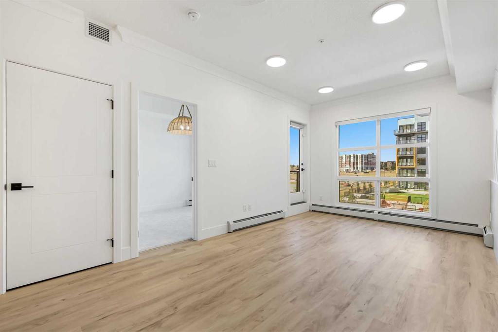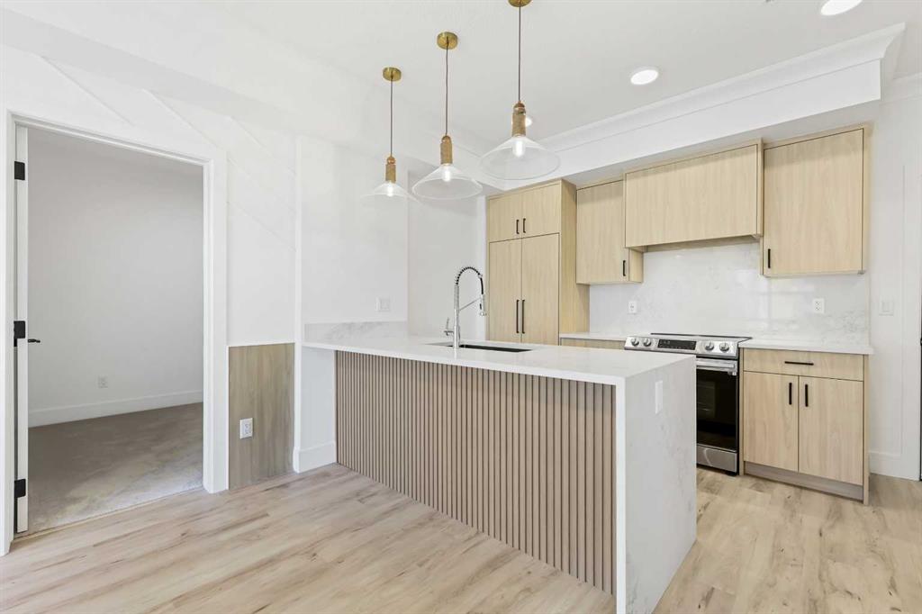 Experience elevated urban living in this brand-new, never-occupied 2-bedroom, 1-bathroom residence located in the highly desirable Currie Barracks community—one of Calgary’s most sought-after neighborhoods. Perfectly situated near Mount Royal University, this modern condo is ideal for professionals, students, or investors looking for exceptional rental potential in a prime location. From the moment you step through the grand front entrance, you’ll be greeted by an atmosphere of modern sophistication. The open-concept layout features designer wall paneling in the living area, upgraded lighting, and an abundance of natural light streaming through large west-facing windows that lead to a spacious balcony overlooking the peaceful courtyard—the perfect place to unwind after a long day. The gourmet kitchen showcases custom cabinetry with matching panel-front fridge and dishwasher, sleek quartz countertops, stainless steel appliances, a gas cooktop, and a convenient breakfast bar ideal for casual dining. Every detail has been thoughtfully considered to blend functionality with style, offering ample cupboard and counter space to enhance everyday living. Both bedrooms are generously sized, providing flexibility for a guest room, home office, or roommate setup. The spa-inspired bathroom boasts modern fixtures and a quartz-topped vanity, while the stacked in-suite laundry offers everyday convenience. Additional highlights include luxury vinyl plank flooring, A/C rough-in for future cooling, and secure building access for peace of mind. Residents of Currie Barracks enjoy a vibrant, walkable lifestyle surrounded by boutique shops, cafés, parks, and pathways. Commuting is effortless with quick access to major routes and public transit, and you’re only minutes from downtown Calgary and local golf courses for leisure and recreation. Whether you’re seeking a luxurious urban retreat or a turnkey investment property, this pristine unit offers a perfect blend of style, convenience, and modern living in an unbeatable location.