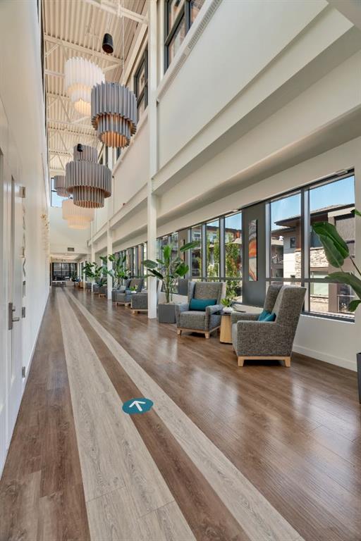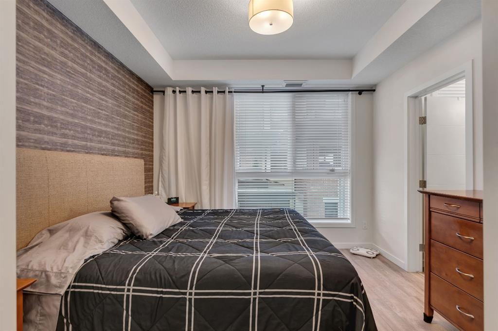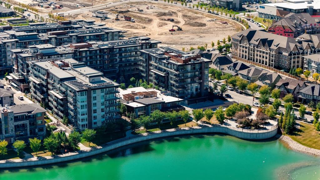 Welcome to Calligraphy with resort style living at Westman Village on Mahogany Lake. This fabulous corner unit has two bedrooms, 2 full bathrooms and two parking stalls, one with private storage. The former show suite updates add character in this well-appointed unit. The living/dining room combination has west facing windows to allow the sun to shine in. The kitchen features sliding drawers and a breakfast bar with built-in storage. The primary bedroom accommodates a king-sized bed with room for a dresser, and it has two closets and a 3-piece ensuite with a walk-in shower. The second bedroom is located at the other end of the unit and is great space for an additional sleeping, office, den or craft room and has a walk-in closet for additional storage. There is a 4-piece main bathroom adjacent to the second bedroom. Sliding doors off the dining room lead to a wrap-around, west-facing balcony overlooking the courtyard with a water feature. The unit has additional storage with a pantry and a laundry area. This unit also has two underground titled parking stalls; one has a private storage room. Now let’s talk about the 40,000SF Village Centre and its many amenities, it is a must see, ask the concierge for your tour. In the amenity center, you will be able to enjoy the lane pool, activity pool, hot tub, steam room, exercise room, full gymnasium, theatre, industrial kitchen, virtual golf, party room, billiards and darts, craft room, woodworking shop, library, green thumb room, walking track, wine room, fire pit, playground, car wash, dog wash and there are electric vehicle charging stations. Also located in the complex are your favourite retailers, award winning Chairman’s Steakhouse and Alvin’s Jazz Club, more restaurants, amenities. A 5-minute walk to Sobeys and more shops. The complex is located on Mahogany Lake with its unique pathways. You will be able to enjoy the Mahogany Beach Club and all it has to offer. Call today and come view this fabulous unit…. don’t just move to a condo, move to a lifestyle! Welcome Home!
