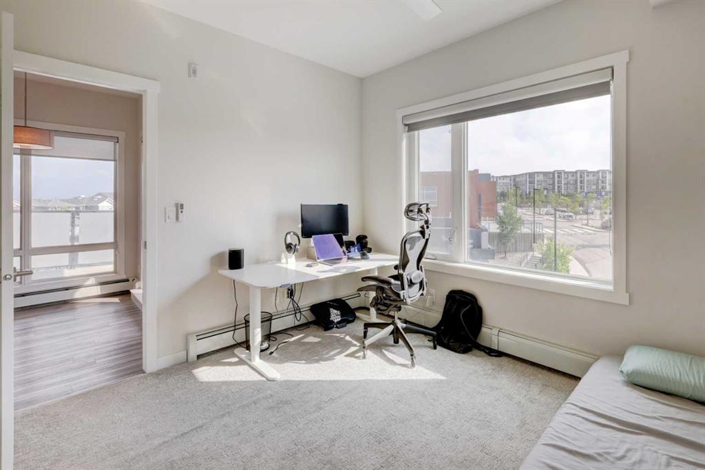 Welcome to 315, 138 Sage Valley Common NW—an exceptional 2-bedroom, 2-bathroom condominium offering luxurious living in the heart of Sage Hill. This is a rare, first-time market offering from the original owner, showcasing meticulous care and pride of ownership. With its unbeatable location, this home effortlessly blends elegance with convenience. As you step inside, you'll be greeted by an open-concept layout, drenched in natural light and featuring a sophisticated neutral color scheme. The luxury vinyl plank flooring creates a seamless flow throughout, while high-end stainless steel appliances, including a full-size front-load washer and dryer, enhance the overall living experience. The kitchen is a chef’s dream, featuring sleek quartz countertops and an oversized island ideal for meal prep and entertaining. Comfort is at the forefront with large windows that fill the space with warmth and light. The spacious living and dining areas provide flexible options for relaxation and hosting. The primary bedroom includes a generous walk thru closet for all your storage needs and a 3-piece bathroom. While the second bedroom and well-appointed 4-piece bathroom create an inviting atmosphere, perfect for guests or as a private office. Step out onto the private balcony, where a gas line for BBQs sets the stage for outdoor dining and gatherings. Additional perks include titled underground parking and a convenient storage locker. This building is ideally located next to a plaza, offering all the amenities you could need, including Co-op Grocery, daycare services, Shoppers Drug Mart, Tim Hortons, restaurants, Anytime Fitness, a gas station, and more—all just steps away. Plus, you’re only 20 minutes from Calgary International Airport and 25 minutes from downtown Calgary, with parks and playgrounds nearby. Don't miss the chance to call this beautiful home yours!