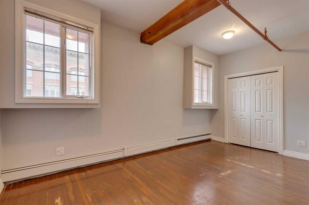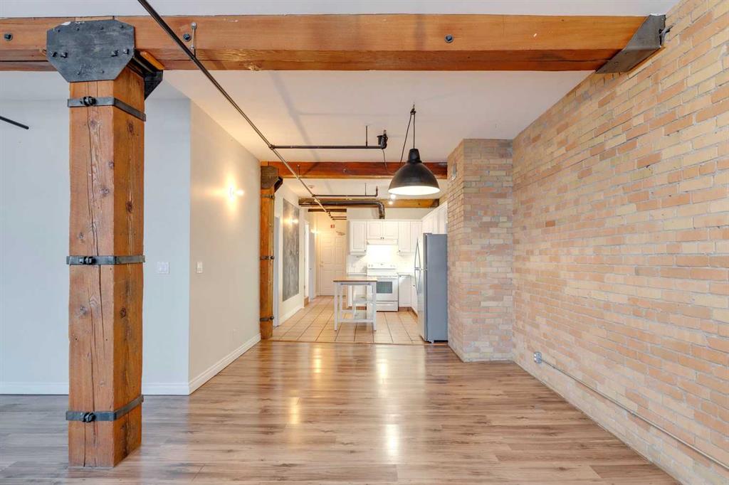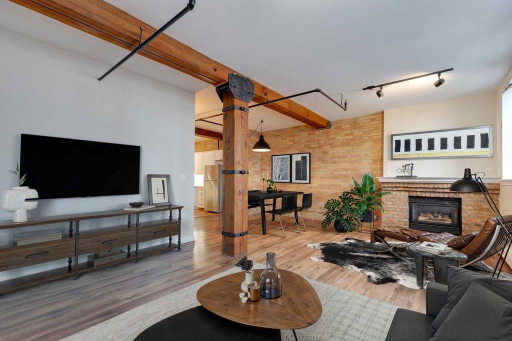 Nestled in the heart of Calgary's Beltline, this extraordinary red brick loft offers a rare opportunity to own a piece of the city’s rich history. Constructed in 1912 for the Imperial Tobacco Company by the renowned A. Dale and Associates, the architectural firm behind the iconic Calgary Tower, this building underwent a stunning conversion to lofts in 1995. For the first time ever, these timeless residences are available for sale, blending historical charm with modern sophistication. Offering over 1,100 SqFt, this expansive loft exudes character with its original brick walls, exposed wood beams, and soaring ceilings. A wall of windows floods the space with natural light, creating a warm and inviting ambiance reminiscent of a classic New York City loft. The open-concept layout is thoughtfully designed, offering endless possibilities for both living and working. A private den provides the perfect space for a home or business office, while two generously sized bedrooms are complemented by a five-piece Jack and Jill bathroom plus there is an additional three-piece bathroom. The galley-style kitchen features freshly sprayed maple cabinetry with under mount lighting, moveable island, and a seamless flow into the dining and living areas. Whether you envision this space as your personal sanctuary or a dynamic live/work environment, the possibilities are as limitless as your imagination. Beyond the loft itself, the building offers an array of amenities, including a gym, a games room, and a rooftop patio with breathtaking views of the Downtown Skyline. A titled underground parking spot is also included, ensuring convenience in this vibrant urban setting. This is more than a home; it’s a lifestyle. A rare blend of history, elegance, and modernity, this loft is a once-in-a-lifetime opportunity to own a truly unique piece of Calgary’s architectural heritage.
