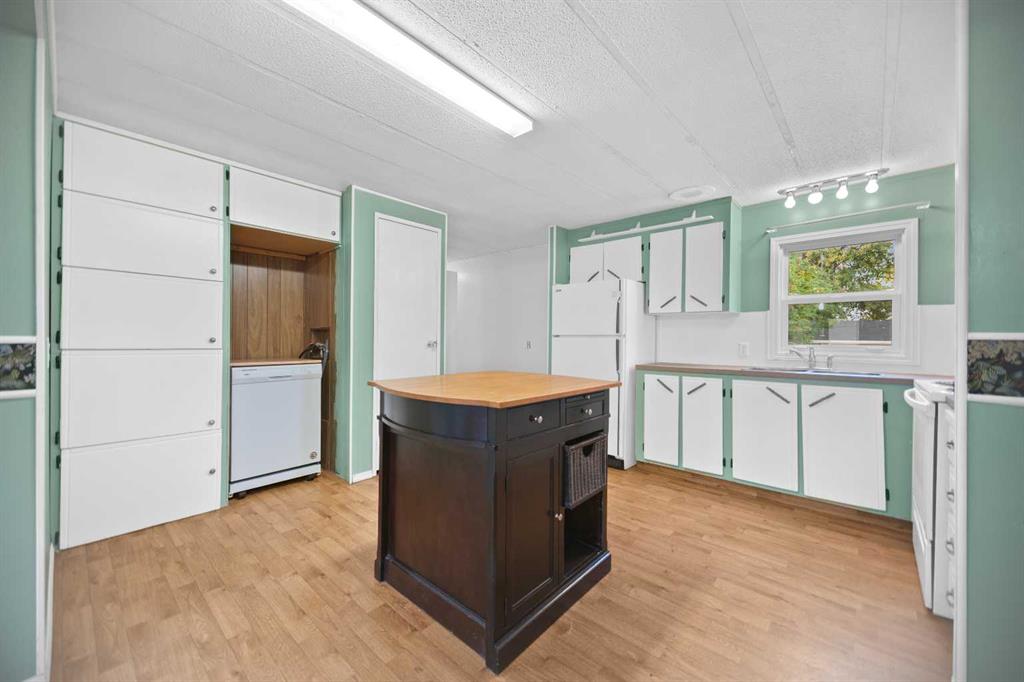 Looking for an affordable 2 bedroom home on its own lot so no pad fees, then look no further! This home is situated on a mature lot and features newer windows, shingles (2020) and newer back door. As you enter the home you will appreciate the large entrance with built in bench, shoe rack and closet. There is a large dining area with lots of natural light - a great place for family mealtimes. The kitchen features white cabinets, a central island, pantry and lots of counterspace. Relax in the spacious living with its lovely wood burning stove - snug and cozy on a cold winters day! There is a great den/office - this room does not have a heat source so is not included in the total square footage of the home. Bedroom # 1 has 2 large windows and is currently where the washer and dryer are hooked up. The primary bedroom has dual aspect windows, a ceiling fan, large closet and a door into the bathroom. The 4 piece bathroom features a large vanity. There is additional storage area too! The yard is fully fenced and features mature trees and shrubs and has 2 storage sheds. There is a gravel driveway to the front of the home so plenty of parking! View 3D /virtual tour/multimedia.