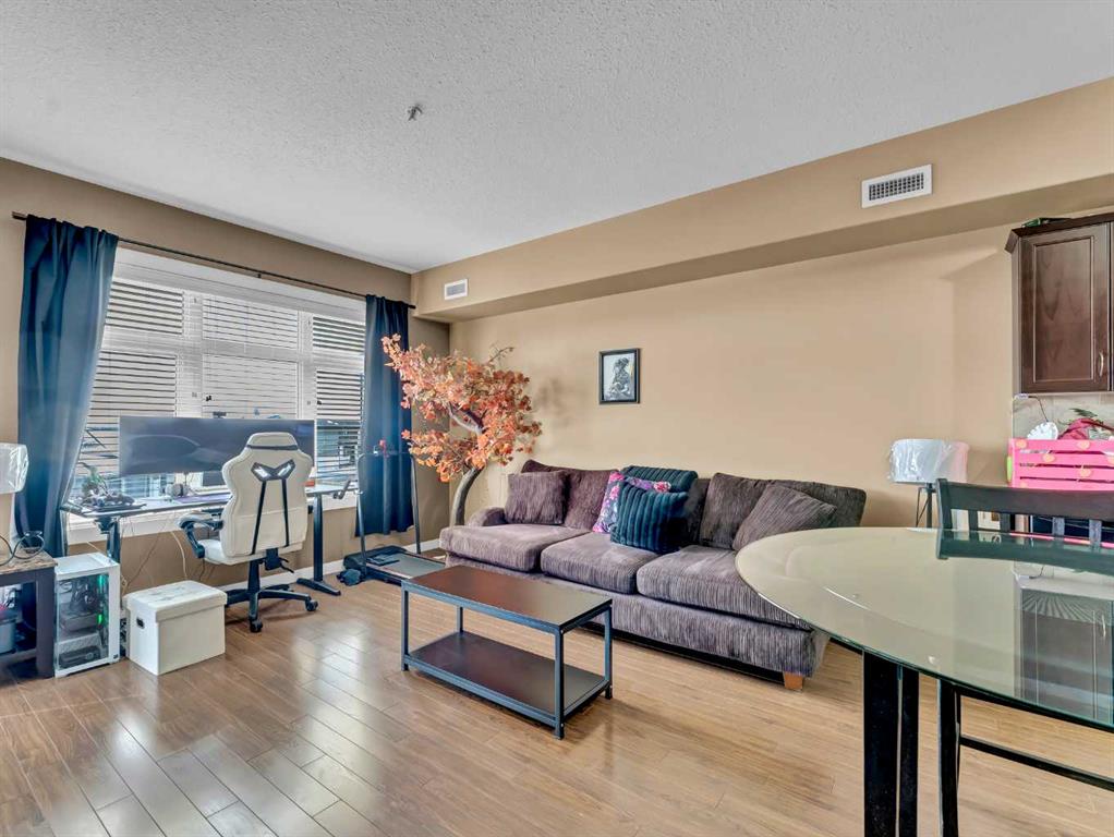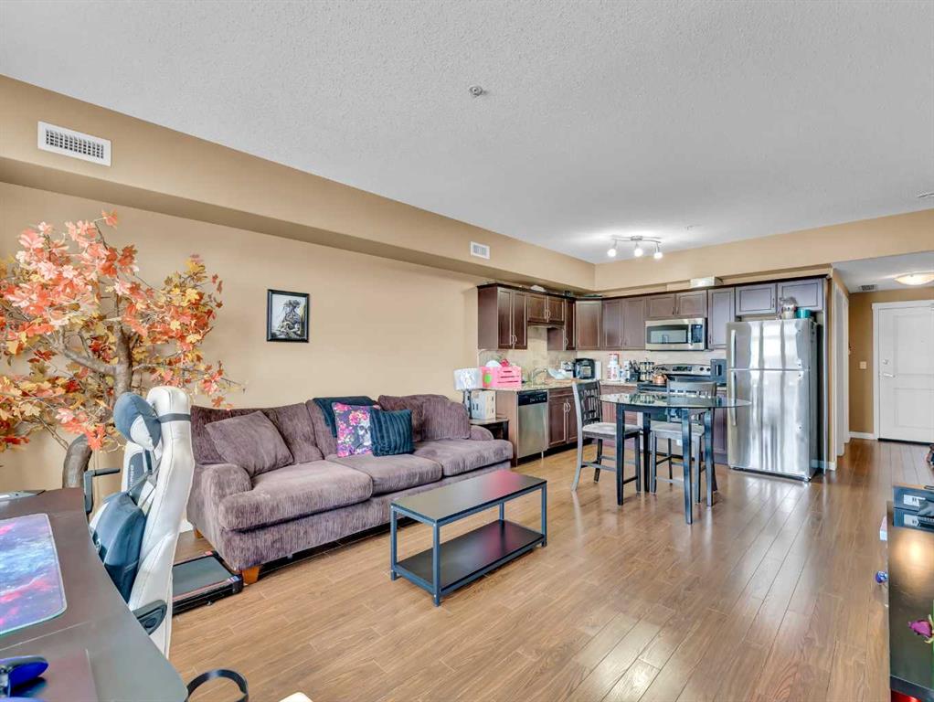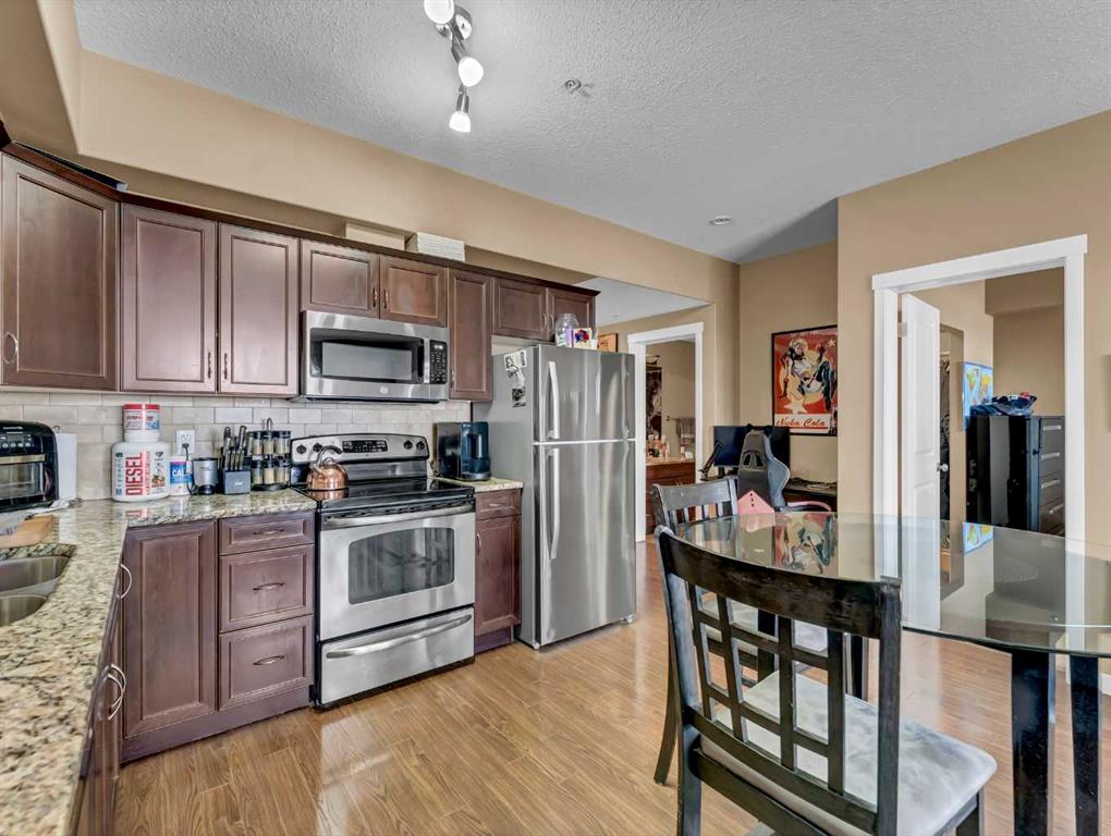Welcome to easy, maintenance-free living in this well-appointed 3rd floor condo at #317–19 Terrace View NE. Offering 1 bedroom and a den, this functional layout includes a spacious primary suite with a walk-through closet and convenient access to the 4-piece Jack & Jill bathroom. The open concept main living area is bright and inviting, featuring a large living room, a generous dining space, and a well-equipped kitchen complete with maple cabinetry and stainless steel appliances—perfect for both everyday living and entertaining. Additional highlights include in-suite laundry, a private covered deck to enjoy your morning coffee or evening unwind, plus one underground parking stall with a dedicated storage space. This pet-friendly building (with restrictions) has no age restrictions, making it an excellent fit for first-time buyers, downsizers, or investors alike. Condo fees of $315.88/month cover all utilities and maintenance—including electricity, heat, water, sewer, trash, snow removal, groundskeeping, parking, and reserve fund contributions—offering truly worry-free living. A fantastic opportunity to own a comfortable and convenient home in a great location!