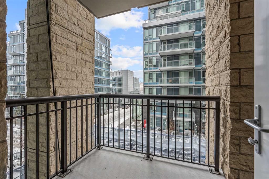 Welcome to Waterfront, one of Calgary’s most desirable downtown communities, ideally located along the Bow River and pathway system in the heart of Eau Claire. This well-maintained 1 bedroom + open den condo offers 670 sq. ft. of thoughtfully designed living space and is conveniently located on the 3rd floor. The bright and functional layout features 9-foot ceilings, a spacious open-concept living area, and a versatile den perfect for a home office. The gourmet kitchen is equipped with quartz countertops, full-height hardwood cabinetry, an undermount sink, and a gas cooktop with built-in oven, along with a dishwasher, microwave, and refrigerator. Recent updates include fresh paint and new light fixtures, giving the home a clean, modern feel. Enjoy central heating and air conditioning, in-suite laundry, and a private east-facing balcony—perfect for morning sun. The unit also includes one assigned underground parking stall and a private storage locker conveniently located just across the hall. Residents of Waterfront enjoy an exceptional range of amenities including a 7th-floor outdoor courtyard, fitness centre and yoga studio, hot tub, theatre room, guest suite, party room with pool table, bicycle storage, car wash, concierge service, secure guest parking, and 24-hour security. The building is pet friendly with board approval. Step outside and enjoy immediate access to the Bow River pathways, Prince’s Island Park, Eau Claire amenities, restaurants, shopping, and downtown, all within an easy walk. This quiet, secure building with outstanding walkability is the best of urban living.